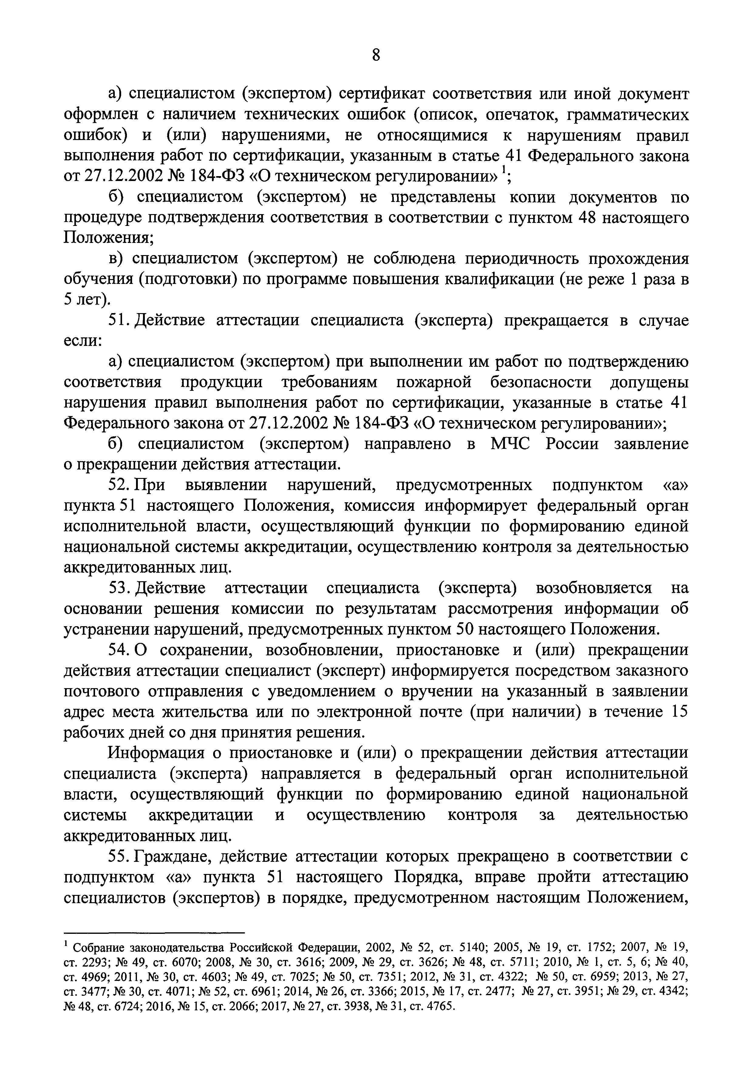 | Название рус.: | Положение о порядке проведения аттестации специалистов (экспертов) по подтверждению соответствия продукции требованиям пожарной безопасности |