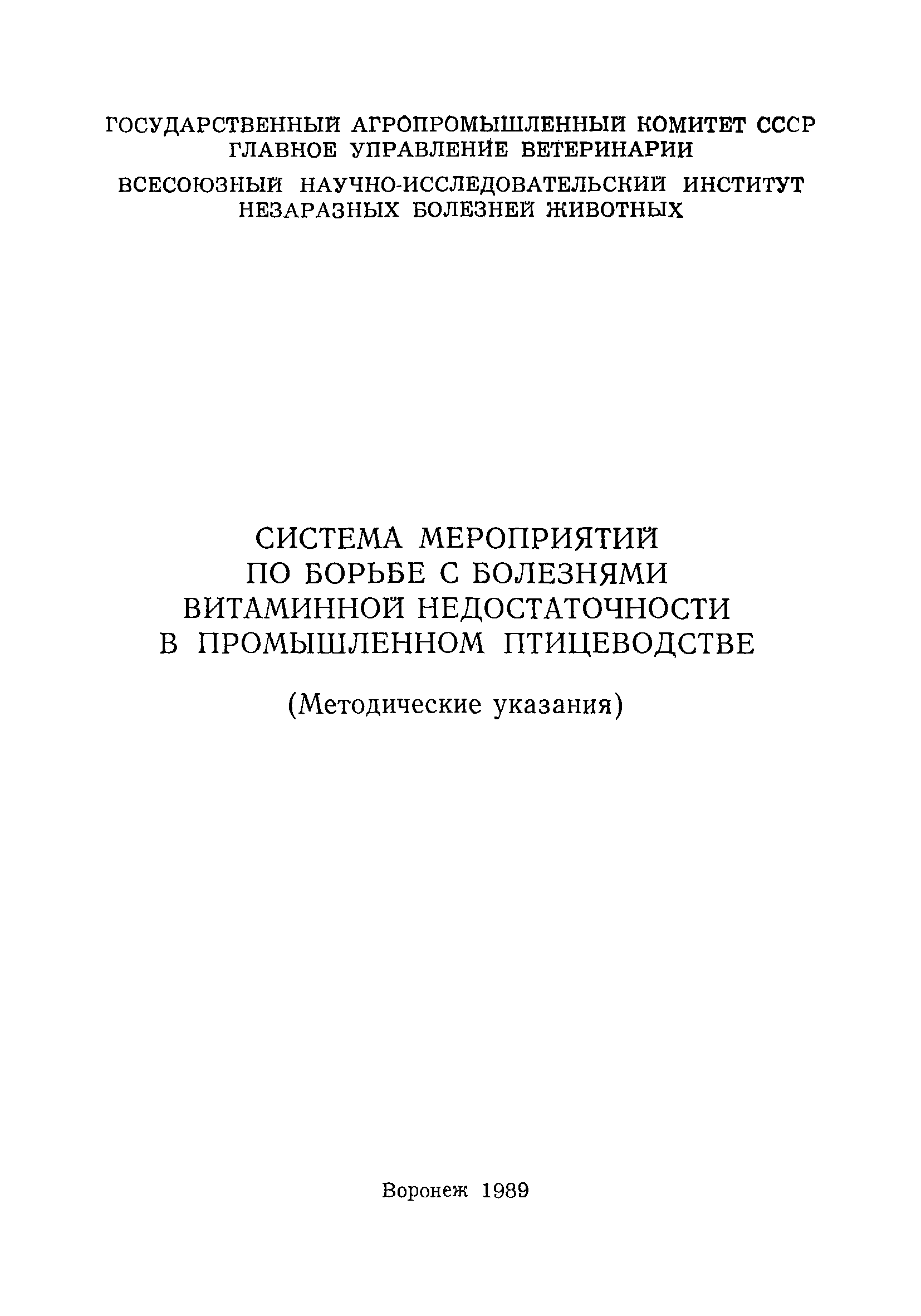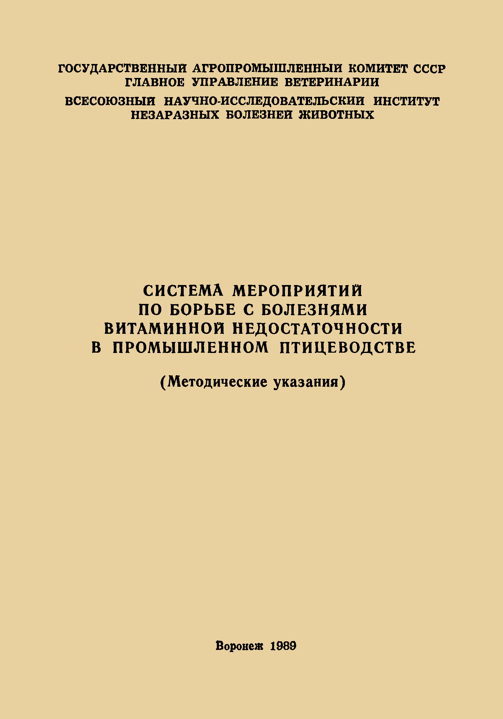 | Название рус.: | Система мероприятий по борьбе с болезнями витаминной недостаточности в промышленном птицеводстве |