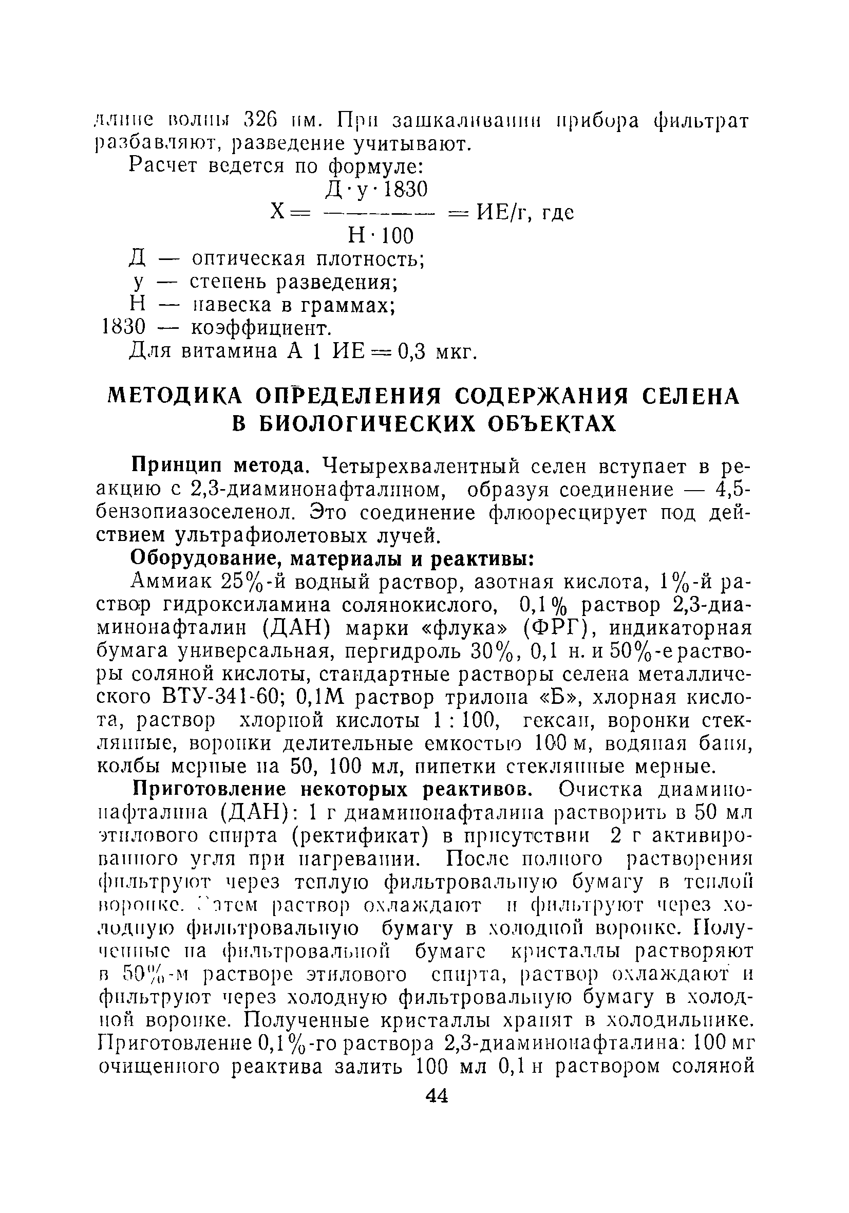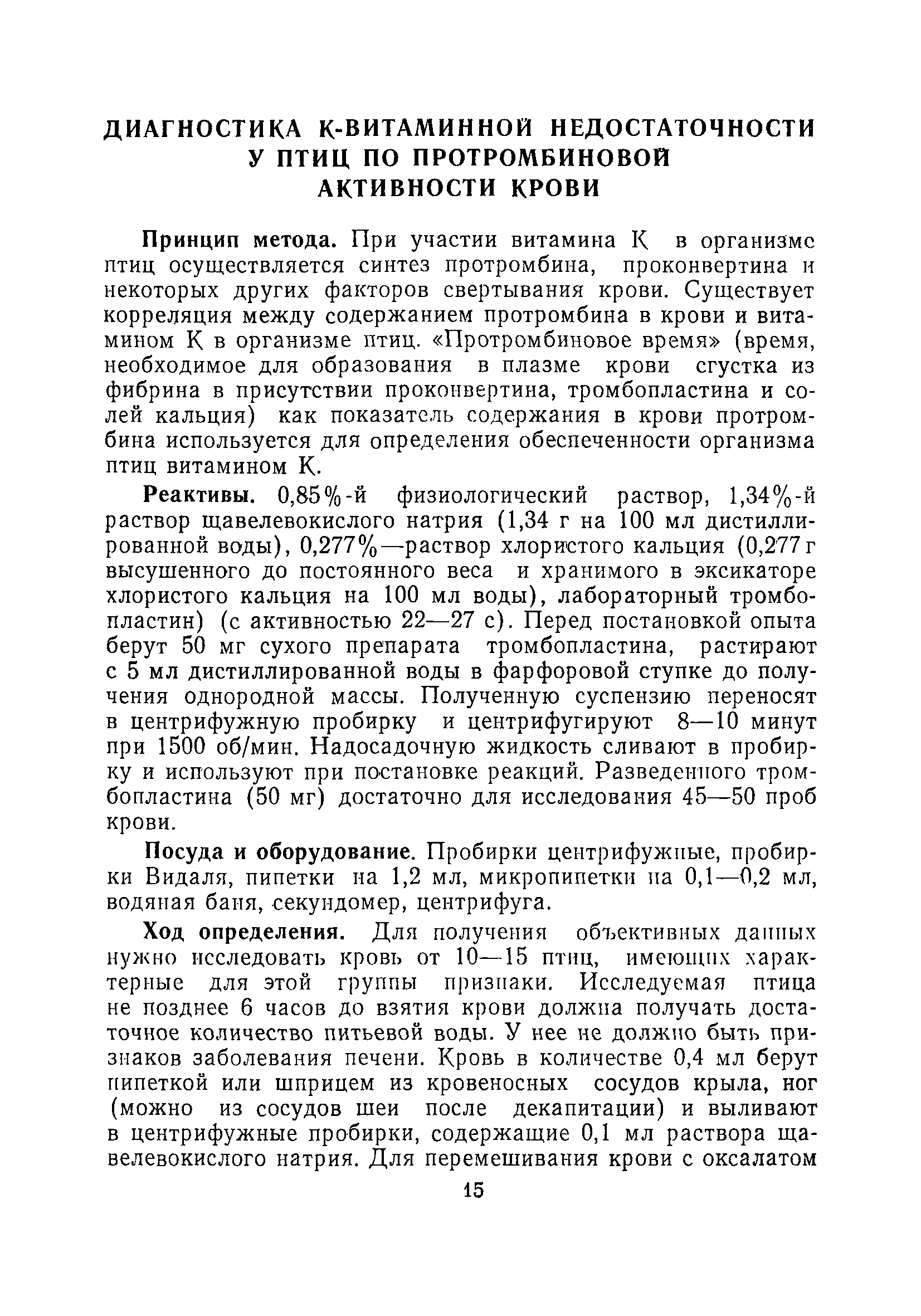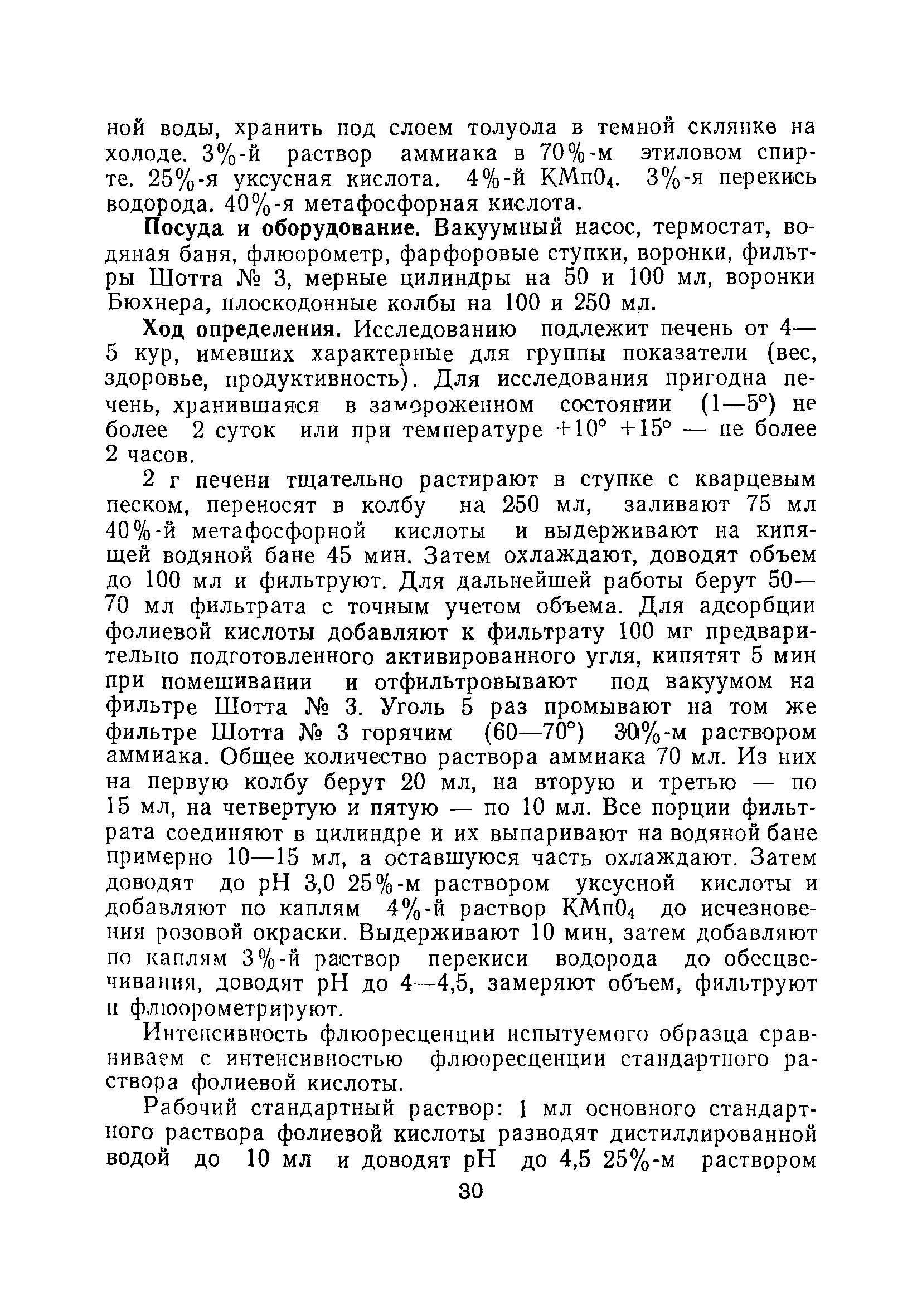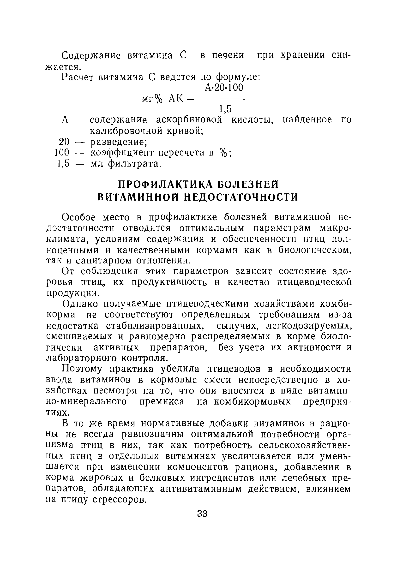 | Оглавление: | Общие вопросы Причины, обуславливающие гиповитаминозы Диагностика Спектрофотометрический метод определения витамина А и каротиноидов в печени и яйце Лабораторная диагностика Е-витаминной обеспеченности организма птиц Определение витамина Е в печени и яйце Определение витамина Е в сыворотке крови Построение калибровочной кривой Определение Е-витаминной недостаточности с помощью тест-гемолиза эритроцитов Патологоанатомические изменения Л абораторная диагностика Определение содержания витамина К в печени по методу Мееровича и Мартинсона Построение калибровочной кривой Диагностика К-витаминной недостаточности у птиц по протромбиновой активности крови Патоморфологические изменения Лабораторная диагностика Метод определения витамина Д в печени Диагностика Д-витаминной недостаточности по уровню лимонной кислоты в крови Построение калибровочной кривой Диагностика гиповитаминоза В1 Патологоморфологические изменения Определение В1-витаминной недостаточности по содержанию общего тиамина в печени Диагностика тиаминовой недостаточности по уровню пировиноградной кислоты в крови Патологоанатомические изменения Диагностика В2-витаминной недостаточности по содержанию общего рибофлавина в печени Лабораторная диагностика Диагностика Вс-витаминной недостаточности по определению фолиевой кислоты в печени Патологоанатомические изменения Лабораторная диагностика Методика определения витамина С в печени Профилактика болезней витаминной недостаточности Профилактика гиповитаминоза А Профилактика гиповитаминоза Е Профилактика гиповитаминоза К Профилактика гиповитаминоза Д Профилактика гиповитаминоза В1 Профилактика гиповитаминоза В2 Профилактика гиповитаминоза Вс Профилактика гиповитаминоза С Физиологические параметры содержания витаминов и селена у птиц Методика определений витамина А в масляном препарате Методика определения содержания селена в биологических объектах Приготовление стандартных растворов селена Флюорометрическое определение селена Обработка результатов Очистка органических растворителей от примесей |