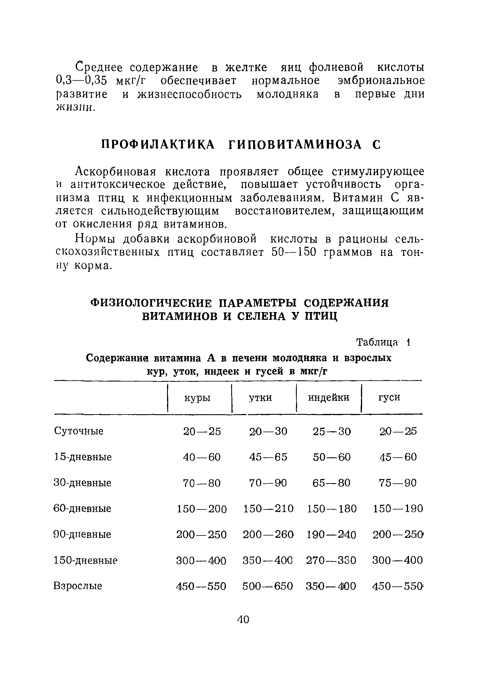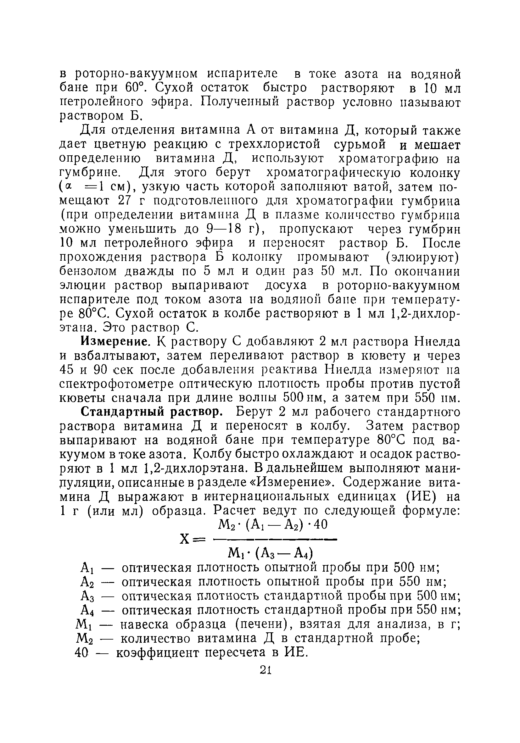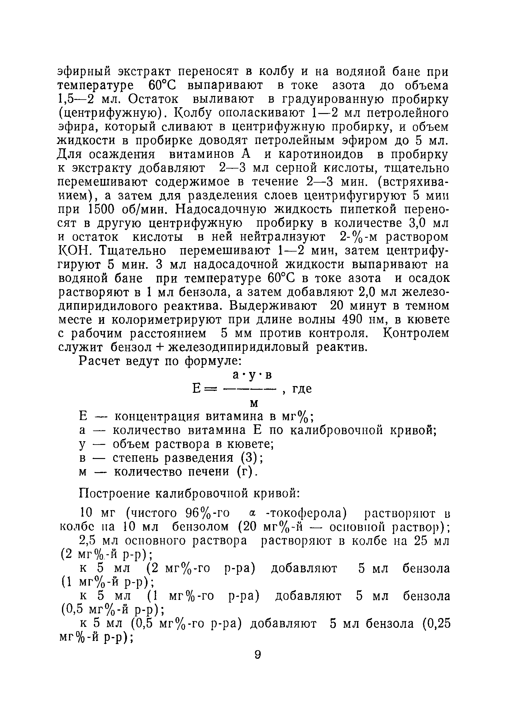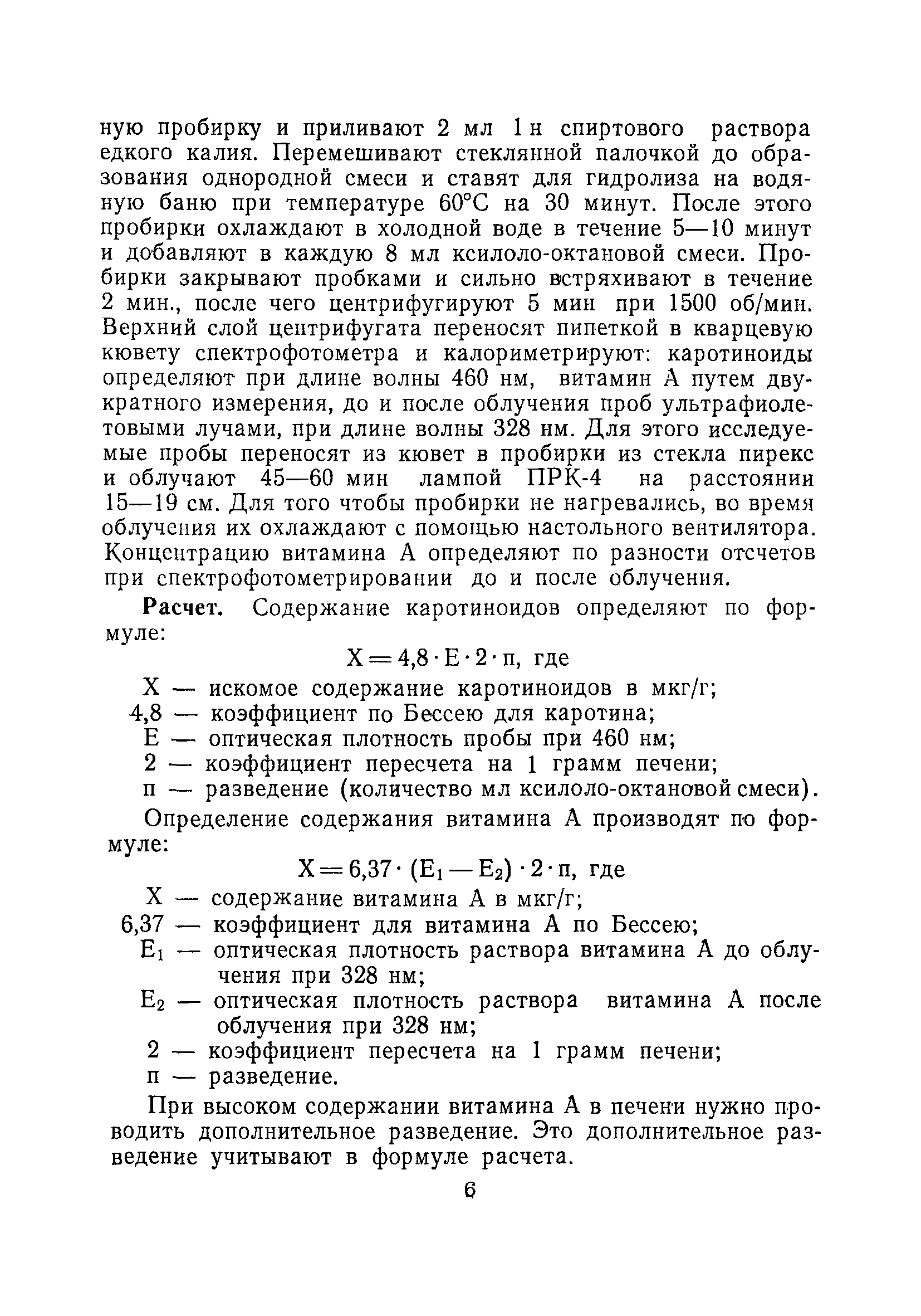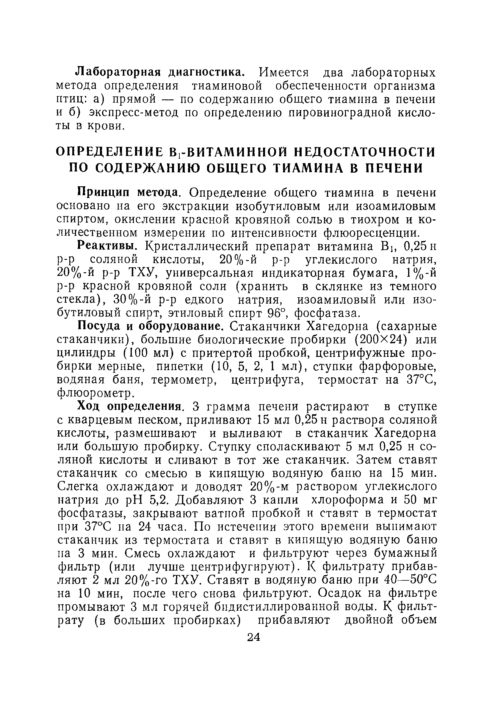 | Оглавление: | Общие вопросы Причины, обуславливающие гиповитаминозы Диагностика Спектрофотометрический метод определения витамина А и каротиноидов в печени и яйце Лабораторная диагностика Е-витаминной обеспеченности организма птиц Определение витамина Е в печени и яйце Определение витамина Е в сыворотке крови Построение калибровочной кривой Определение Е-витаминной недостаточности с помощью тест-гемолиза эритроцитов Патологоанатомические изменения Л абораторная диагностика Определение содержания витамина К в печени по методу Мееровича и Мартинсона Построение калибровочной кривой Диагностика К-витаминной недостаточности у птиц по протромбиновой активности крови Патоморфологические изменения Лабораторная диагностика Метод определения витамина Д в печени Диагностика Д-витаминной недостаточности по уровню лимонной кислоты в крови Построение калибровочной кривой Диагностика гиповитаминоза В1 Патологоморфологические изменения Определение В1-витаминной недостаточности по содержанию общего тиамина в печени Диагностика тиаминовой недостаточности по уровню пировиноградной кислоты в крови Патологоанатомические изменения Диагностика В2-витаминной недостаточности по содержанию общего рибофлавина в печени Лабораторная диагностика Диагностика Вс-витаминной недостаточности по определению фолиевой кислоты в печени Патологоанатомические изменения Лабораторная диагностика Методика определения витамина С в печени Профилактика болезней витаминной недостаточности Профилактика гиповитаминоза А Профилактика гиповитаминоза Е Профилактика гиповитаминоза К Профилактика гиповитаминоза Д Профилактика гиповитаминоза В1 Профилактика гиповитаминоза В2 Профилактика гиповитаминоза Вс Профилактика гиповитаминоза С Физиологические параметры содержания витаминов и селена у птиц Методика определений витамина А в масляном препарате Методика определения содержания селена в биологических объектах Приготовление стандартных растворов селена Флюорометрическое определение селена Обработка результатов Очистка органических растворителей от примесей |