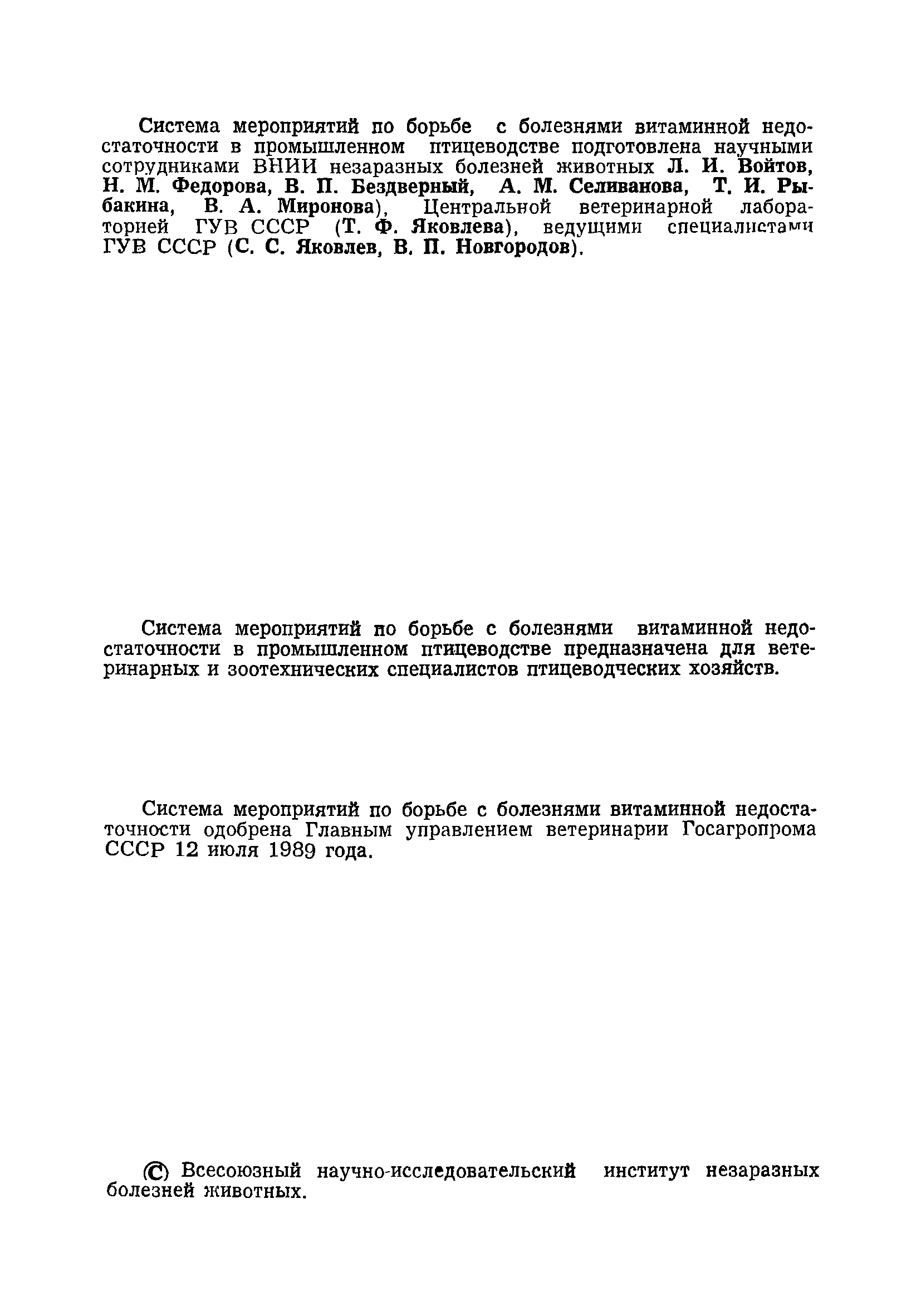 | Издан: | Всесоюзный научно-исследовательский институт незаразных болезней животных (1989 г. )