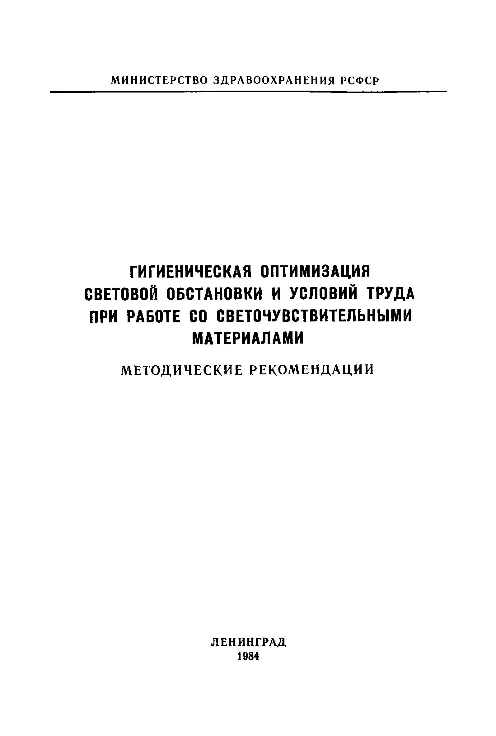 | Название рус.: | Гигиеническая оптимизация световой обстановки и условий труда при работе со светочувствительными материалами |