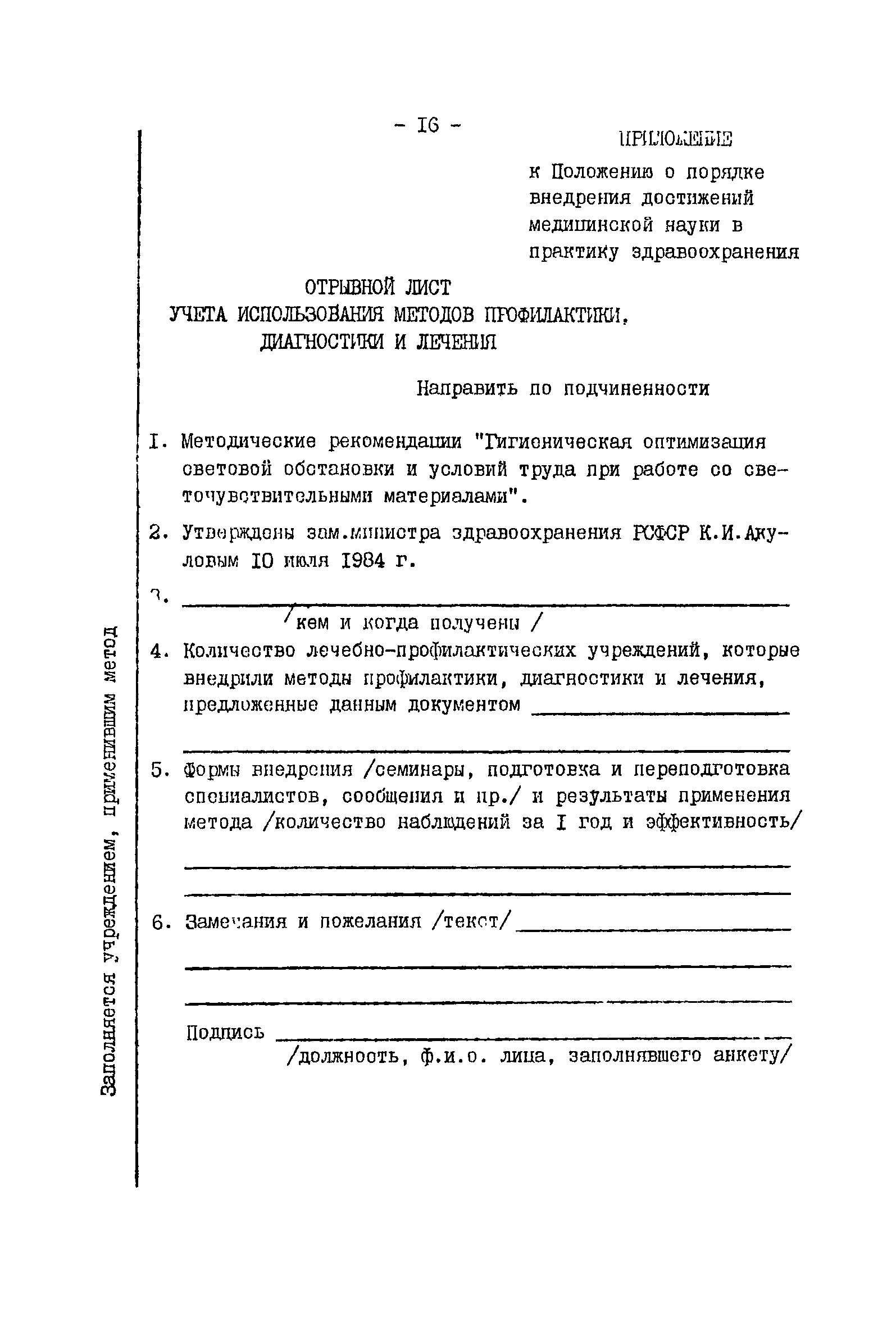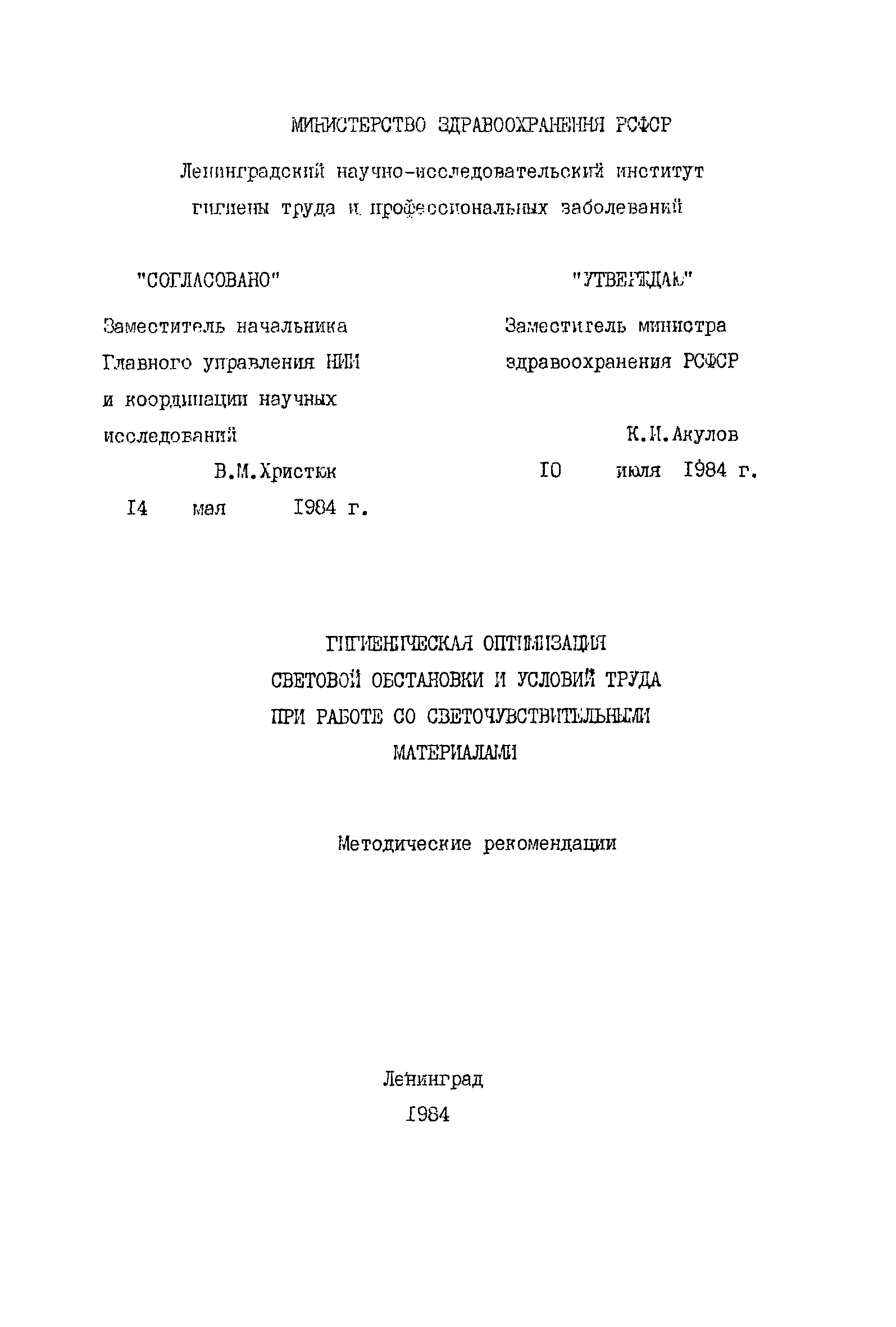 | Утверждён: | 10.07.1984 Минздрав РСФСР (Russian Federation Minzdrav )
