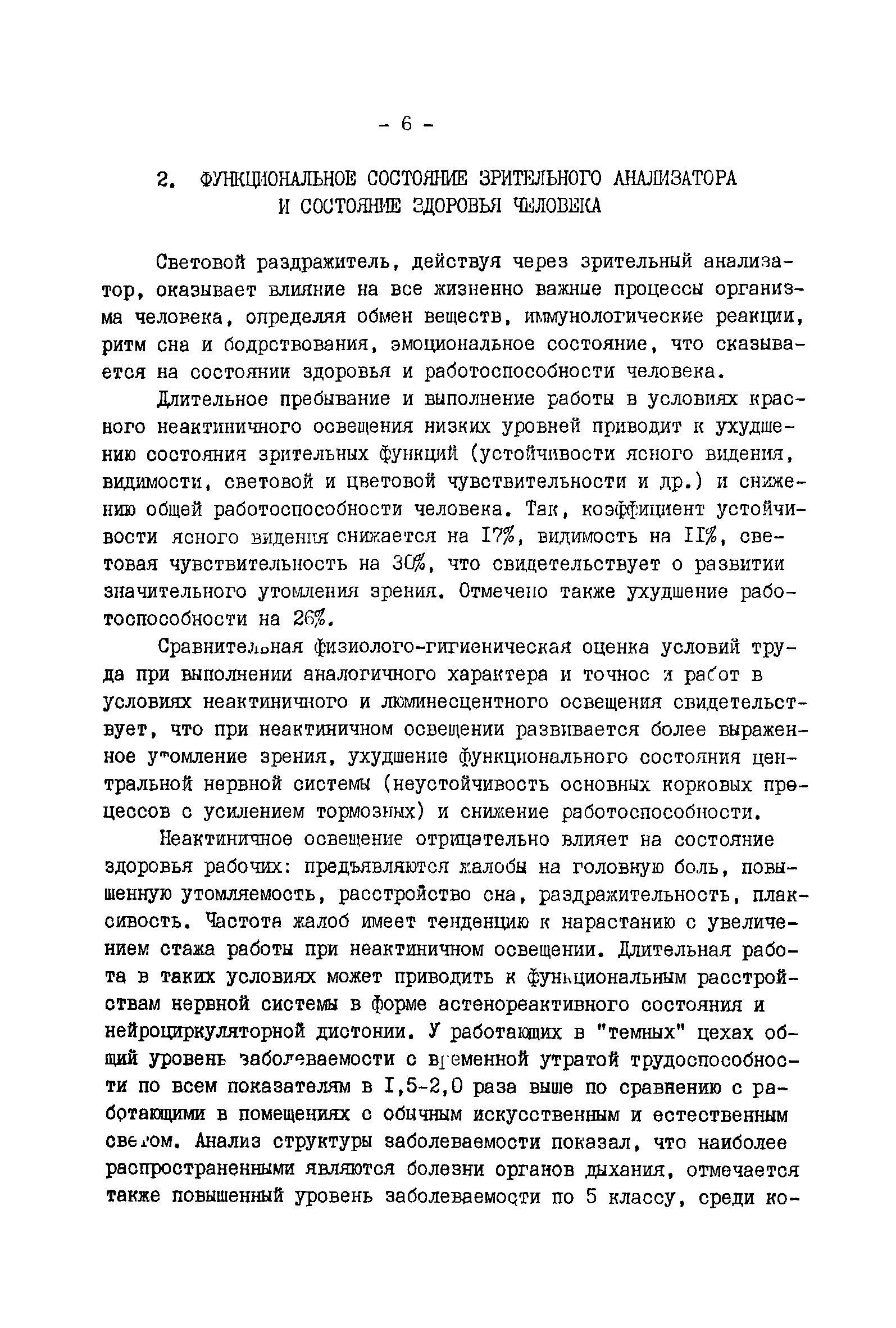 | Оглавление: | Введение 1. Характеристика условий освещения 2. Функциональное состояние зрительного анализатора и состояние здоровья человека 3. Рекомендации по оптимизации условий освещения 4. Медико-профилактические мероприятия 4.1. Ультрафиолетовое облучение 4.2. Витаминизация 4.3. Комплекс упражнений для глаз 4.4. Режим труда Приложение. Отрывной лист учета использования методов профилактики, диагностики и лечения |