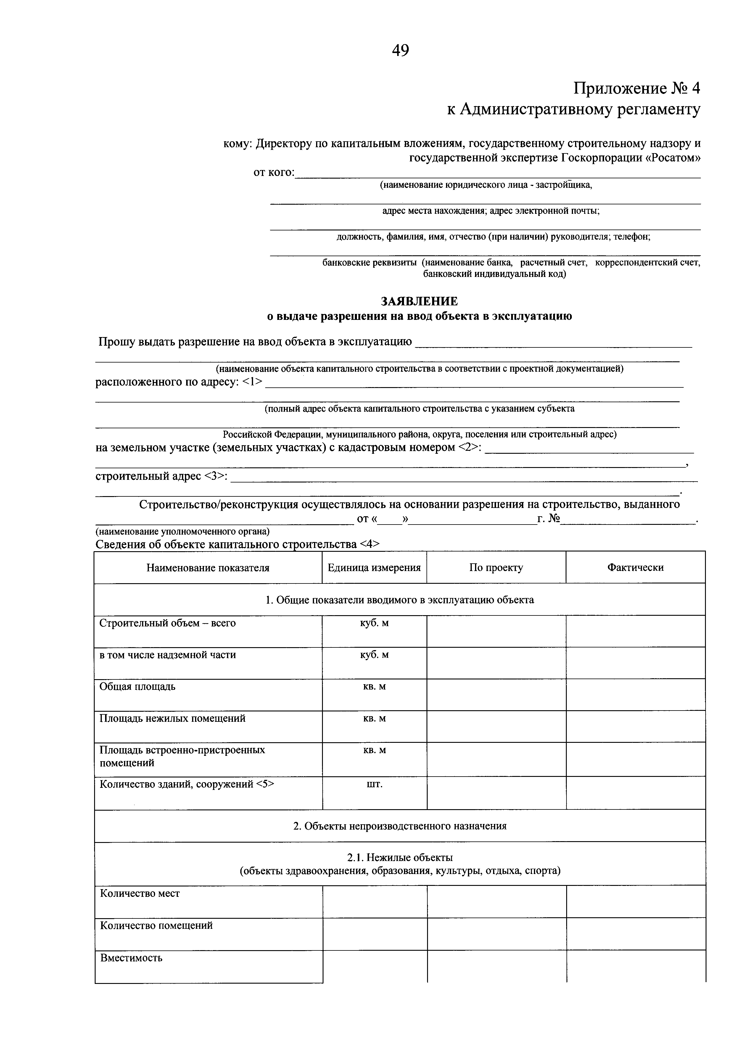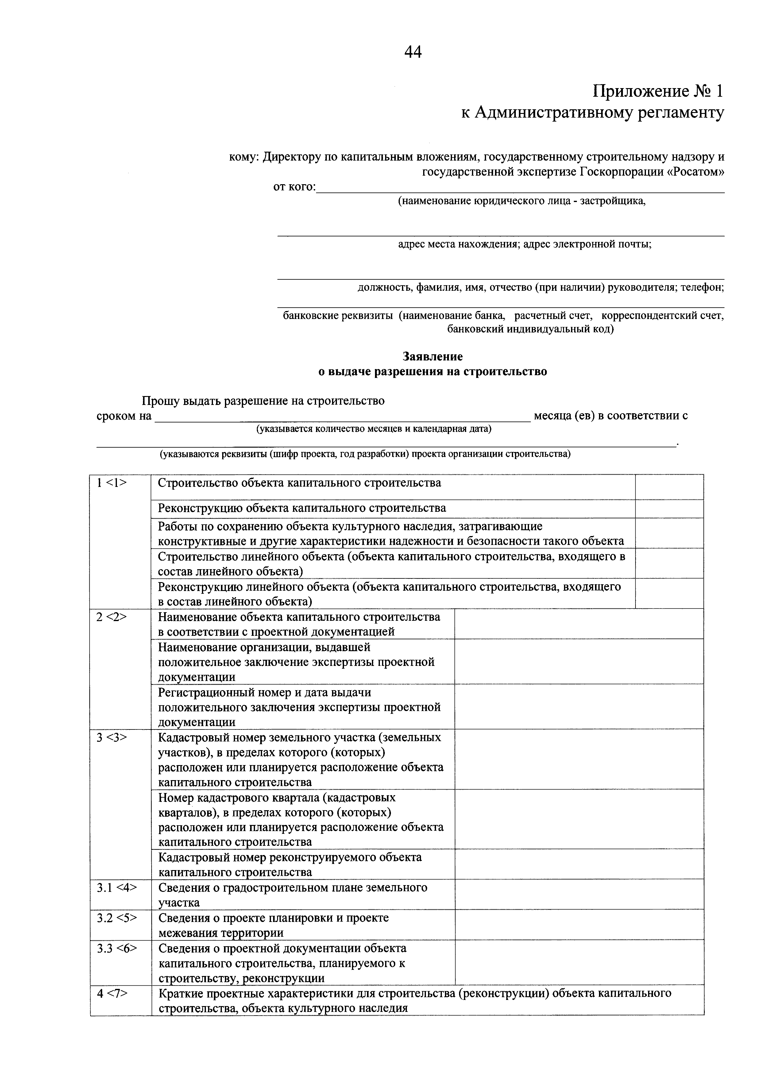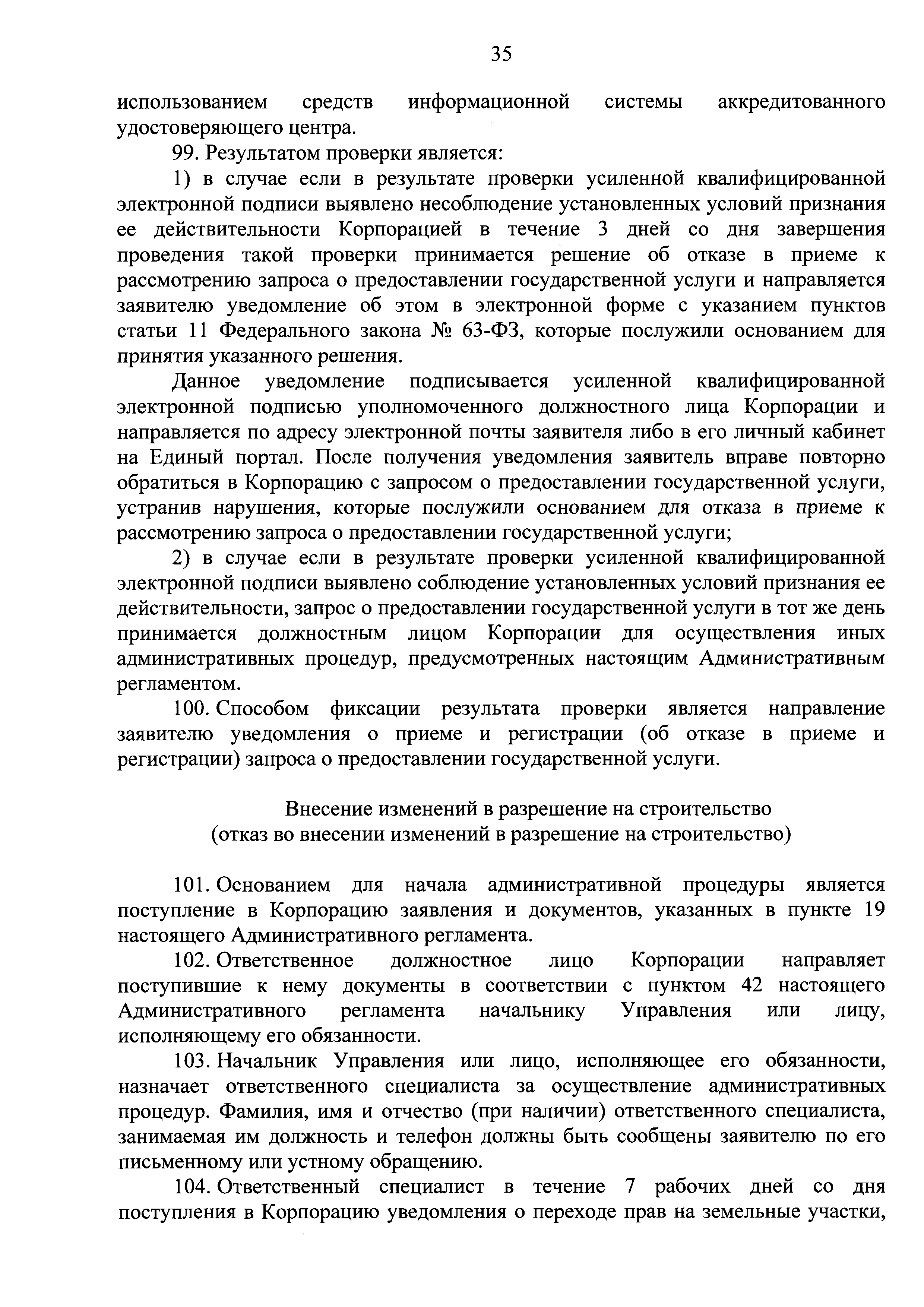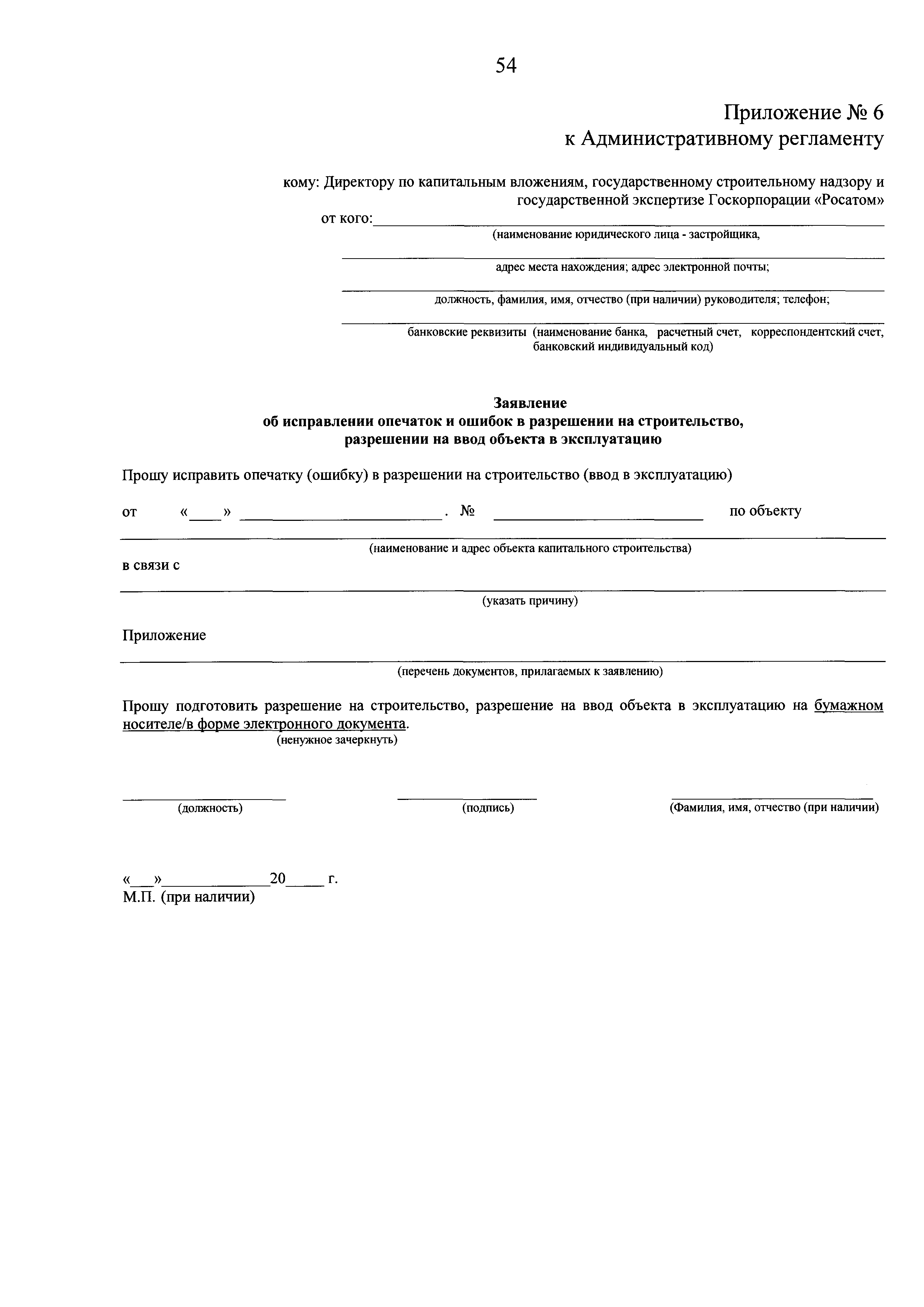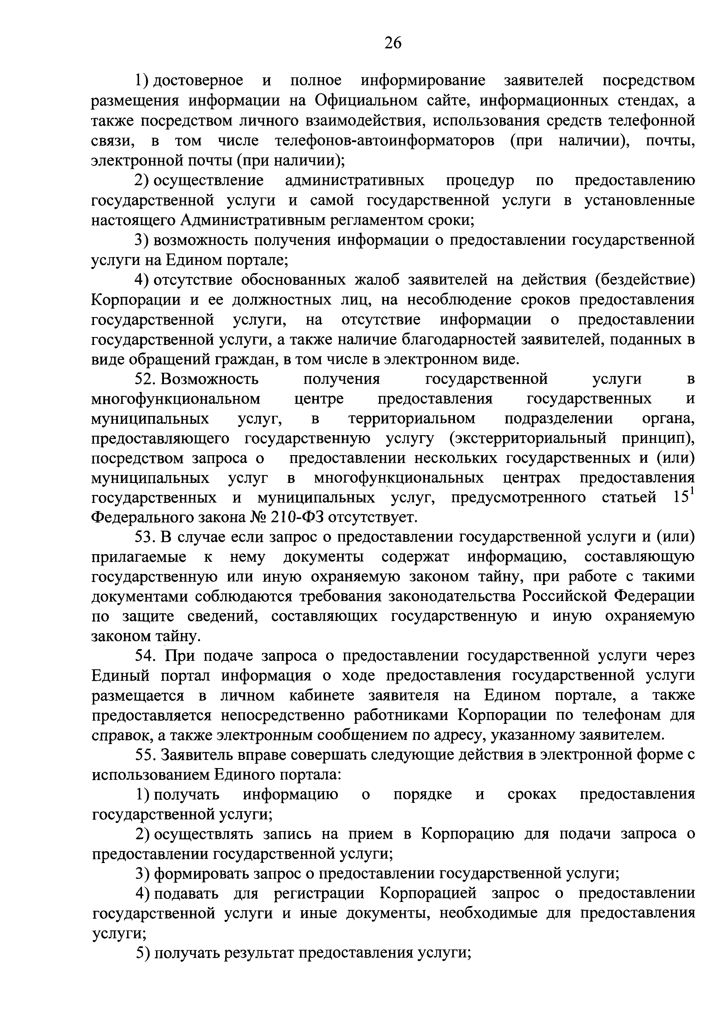 | Оглавление: | I. Общие положения II. Стандарт предоставления государственной услуги III. Состав, последовательность и сроки выполнения административных процедур (действий), требования к порядку их выполнения, в том числе особенности выполнения административных процедур (действий) в электронной форме IV. Формы контроля за предоставлением государственной услуги V. Досудебный (внесудебный) порядок обжалования решений и действий (бездействия) корпорации и должностных лиц корпорации, предоставляющих государственную услугу Приложение № 1. Заявление о выдаче разрешения на строительство Приложение № 2. Заявление о внесении изменений в разрешение на строительство Приложение № 3. Заявление о внесении изменения в разрешение на строительство в связи с необходимостью продления срока действия разрешения на строительство Приложение № 4. Заявление о выдаче разрешения на ввод объекта в эксплуатацию Приложение № 5. Заявление о выдаче дубликата разрешения на строительство, разрешения на ввод объекта в эксплуатацию Приложение № 6. Заявление об исправлении опечаток и ошибок в разрешении на строительство, разрешении на ввод объекта в эксплуатацию |
