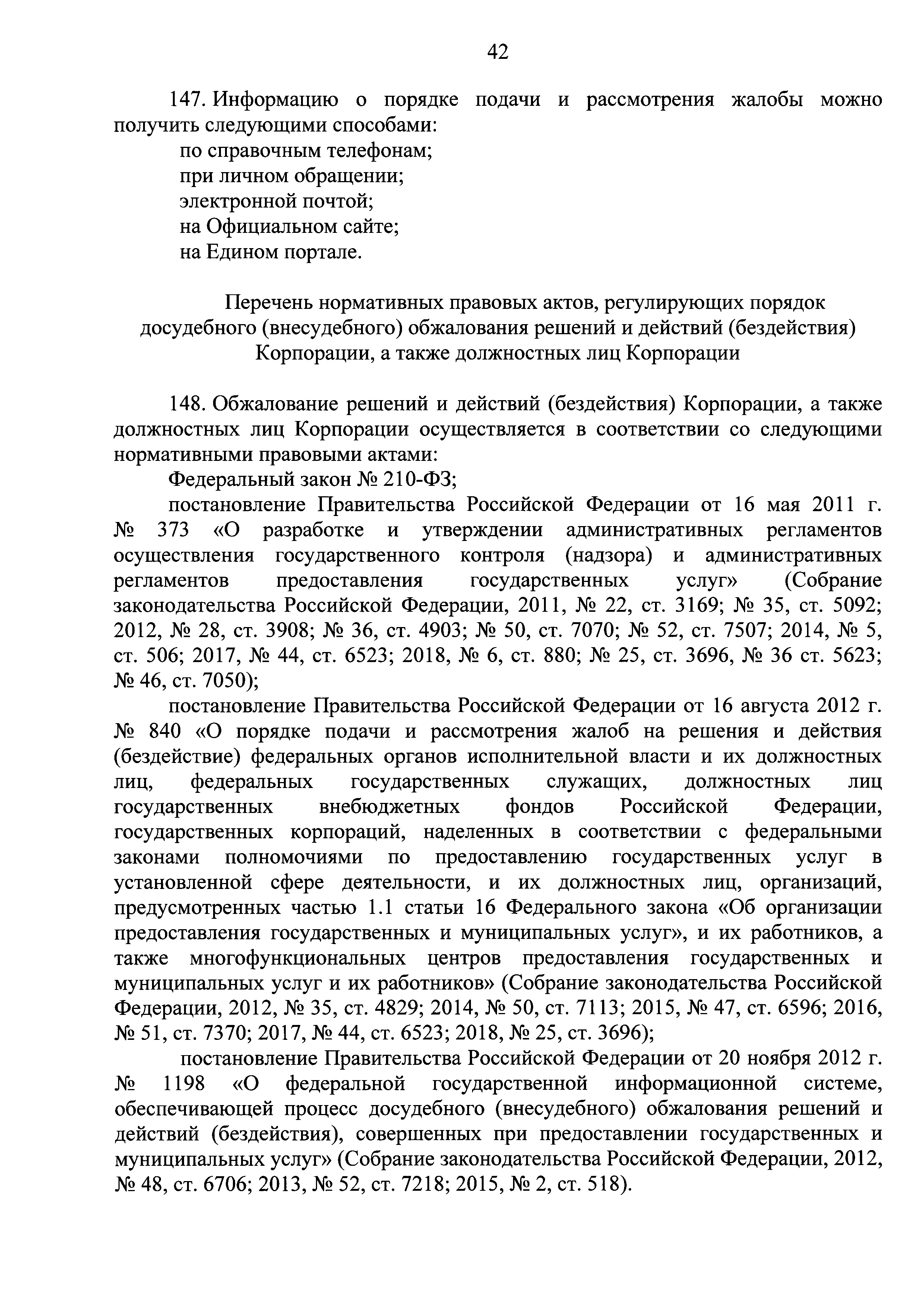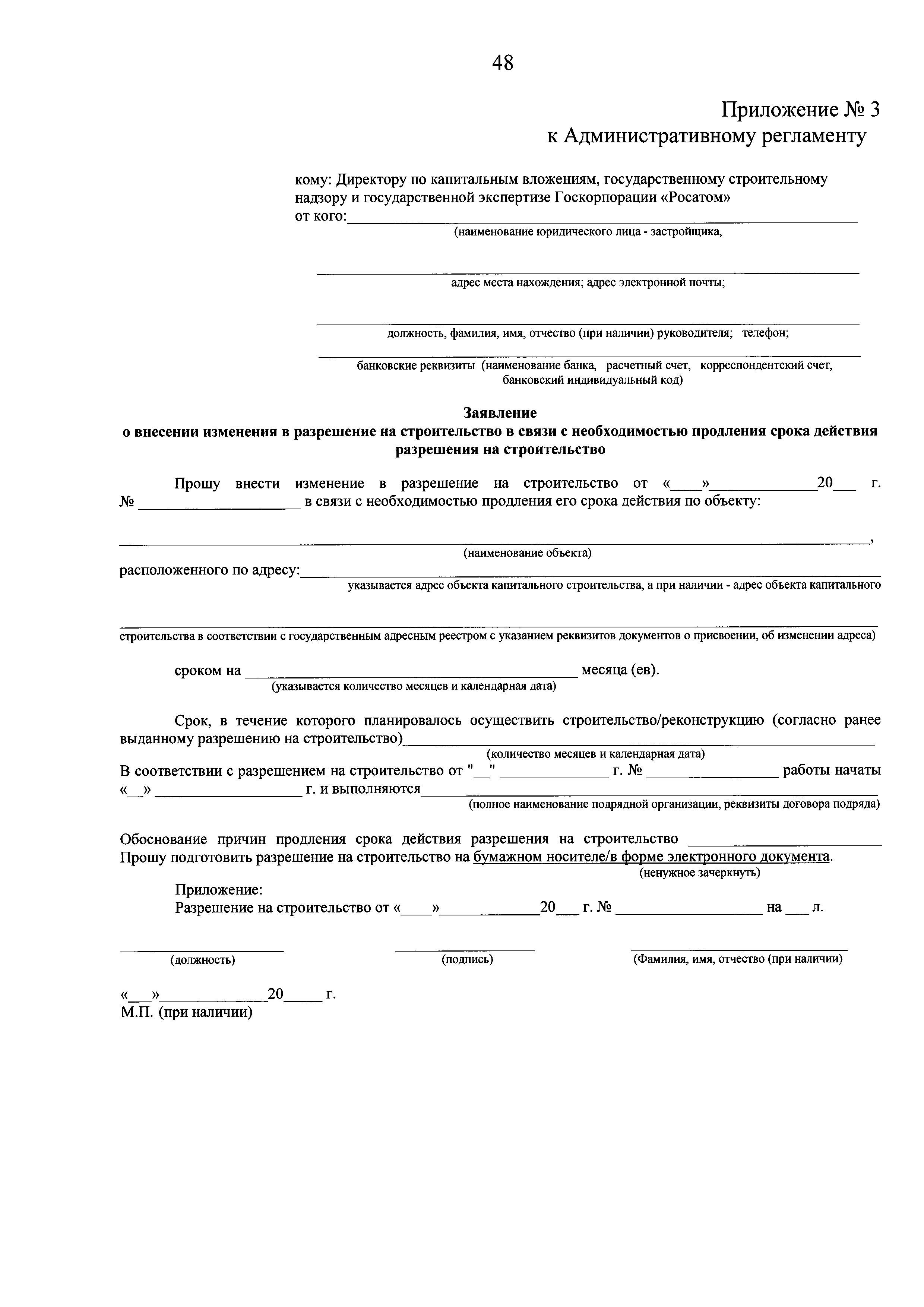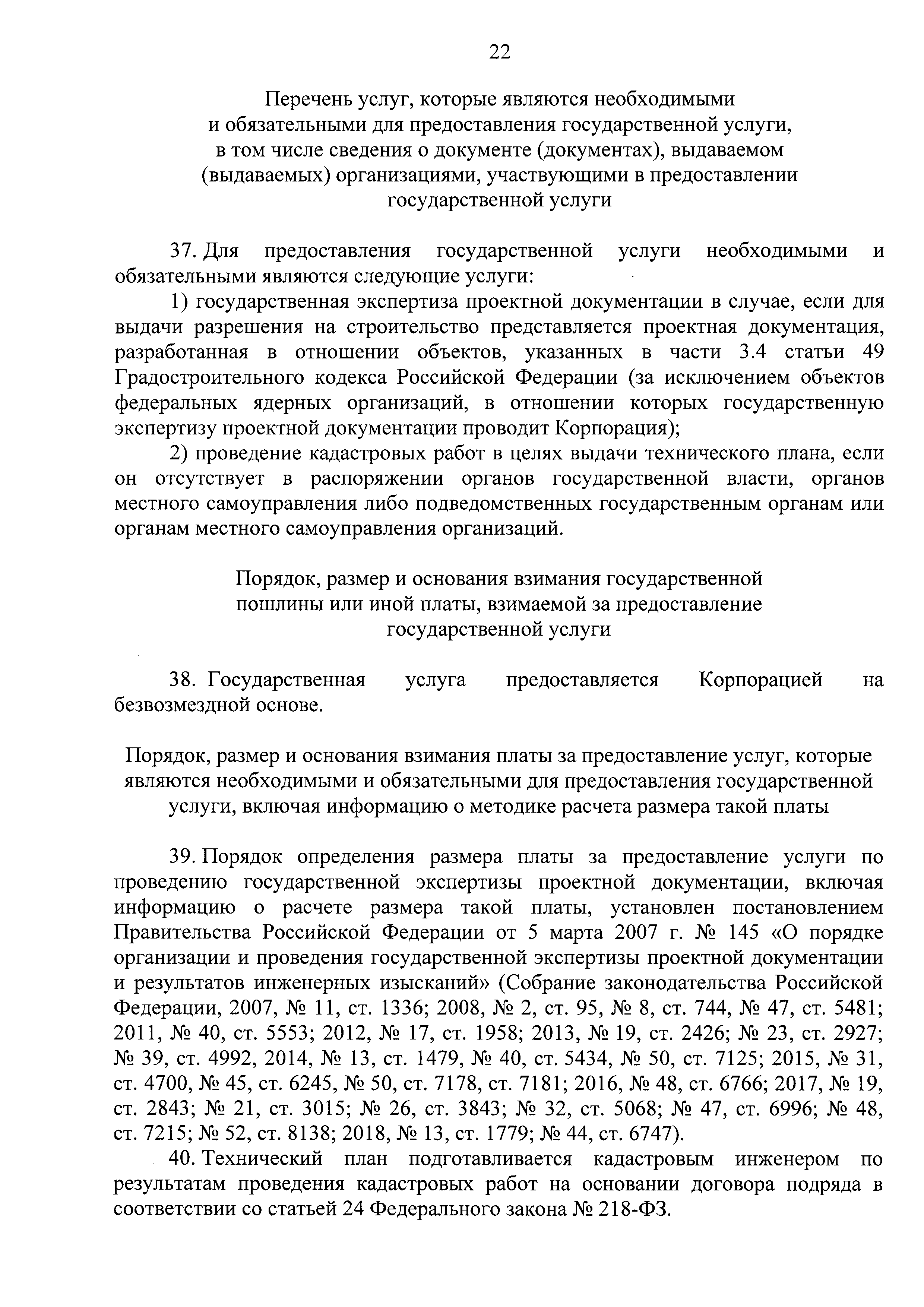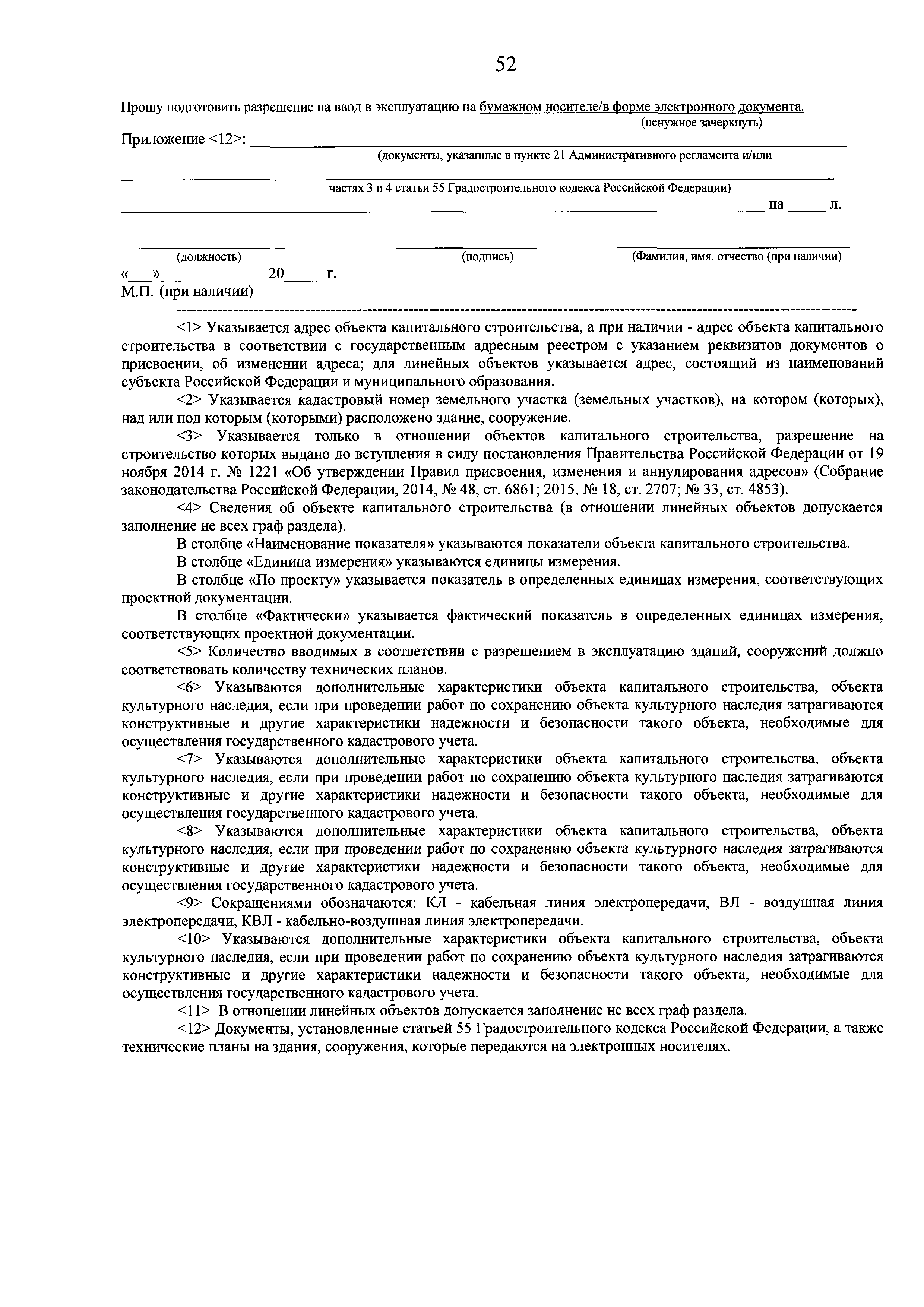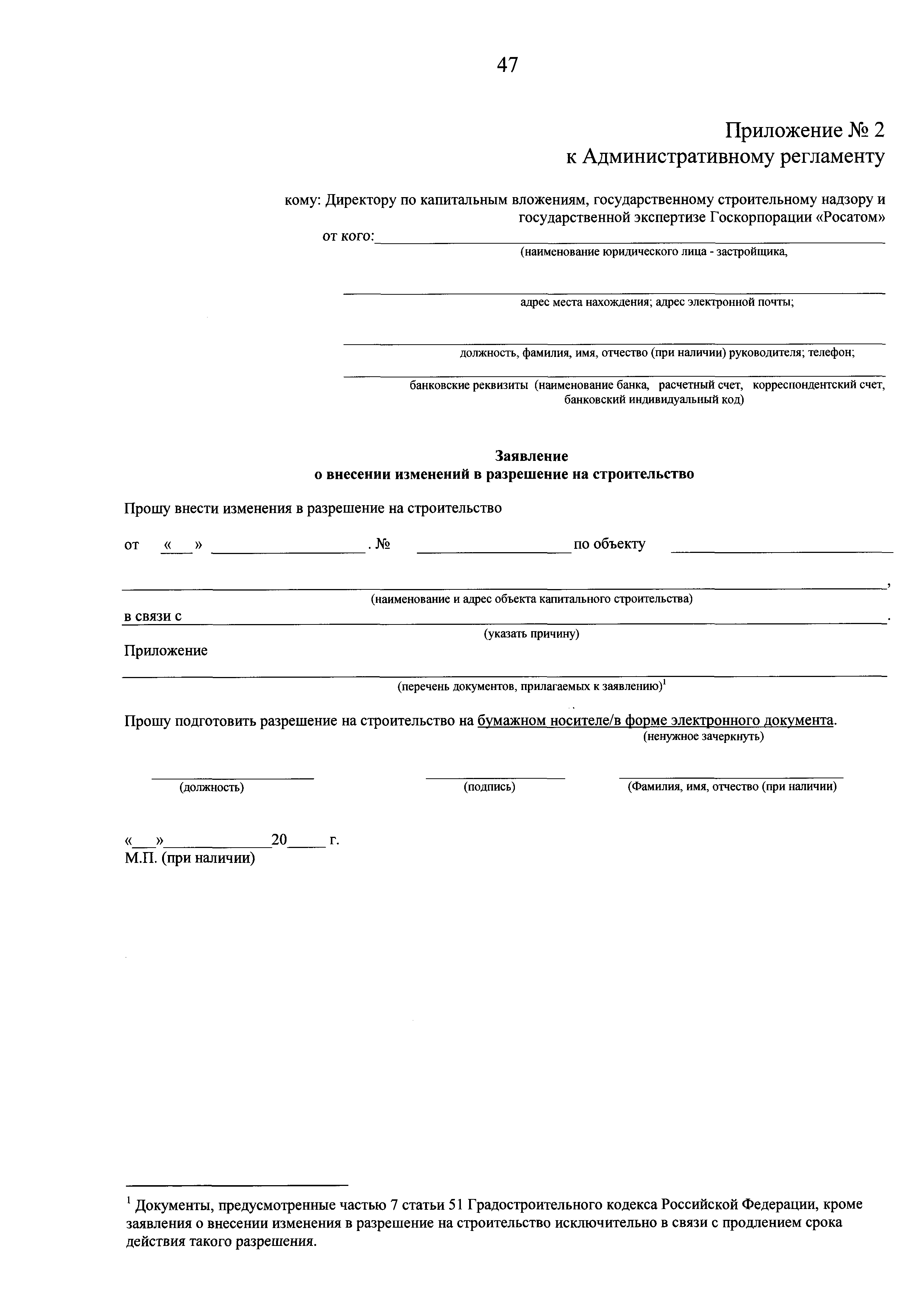 | Оглавление: | I. Общие положения II. Стандарт предоставления государственной услуги III. Состав, последовательность и сроки выполнения административных процедур (действий), требования к порядку их выполнения, в том числе особенности выполнения административных процедур (действий) в электронной форме IV. Формы контроля за предоставлением государственной услуги V. Досудебный (внесудебный) порядок обжалования решений и действий (бездействия) корпорации и должностных лиц корпорации, предоставляющих государственную услугу Приложение № 1. Заявление о выдаче разрешения на строительство Приложение № 2. Заявление о внесении изменений в разрешение на строительство Приложение № 3. Заявление о внесении изменения в разрешение на строительство в связи с необходимостью продления срока действия разрешения на строительство Приложение № 4. Заявление о выдаче разрешения на ввод объекта в эксплуатацию Приложение № 5. Заявление о выдаче дубликата разрешения на строительство, разрешения на ввод объекта в эксплуатацию Приложение № 6. Заявление об исправлении опечаток и ошибок в разрешении на строительство, разрешении на ввод объекта в эксплуатацию |