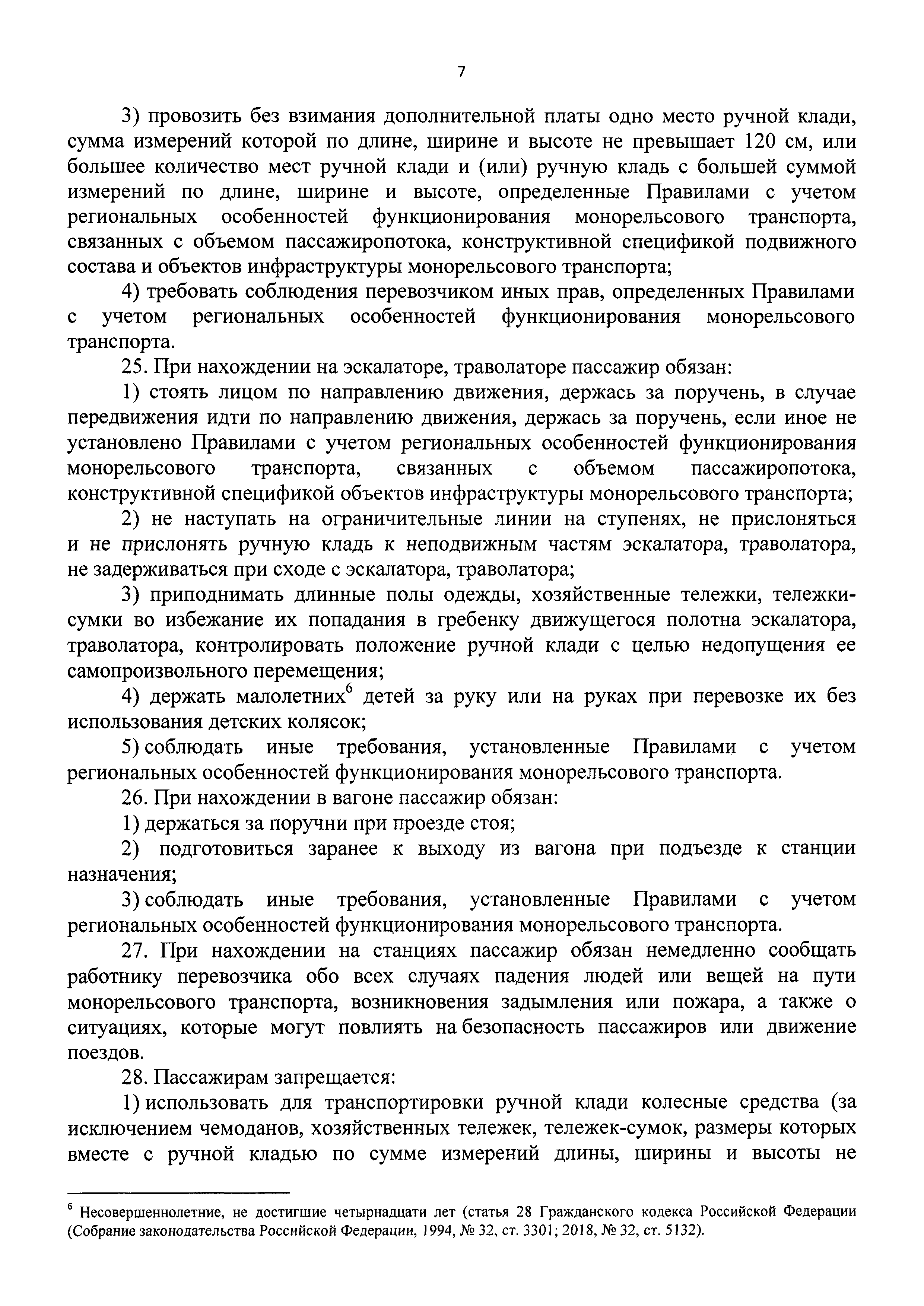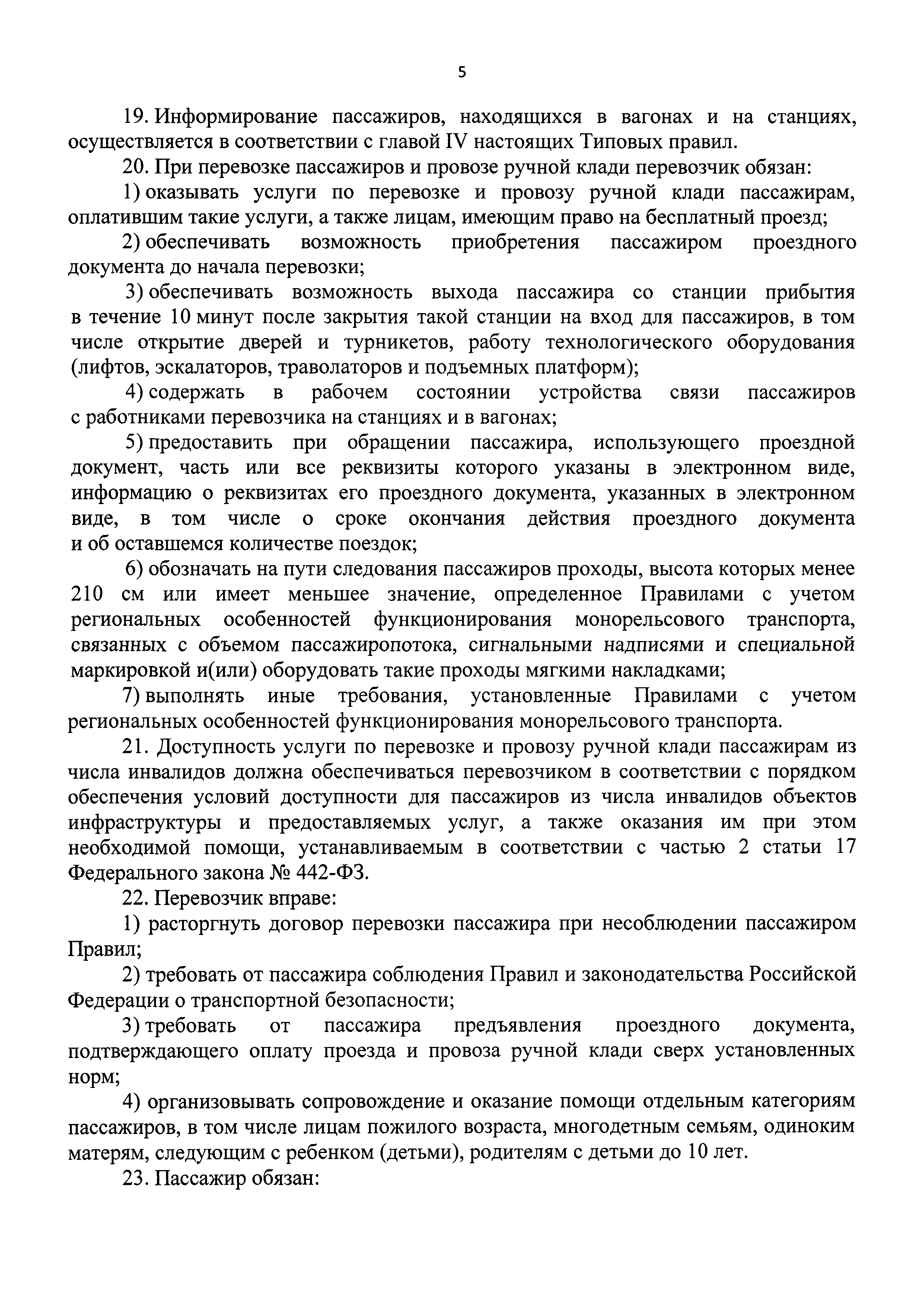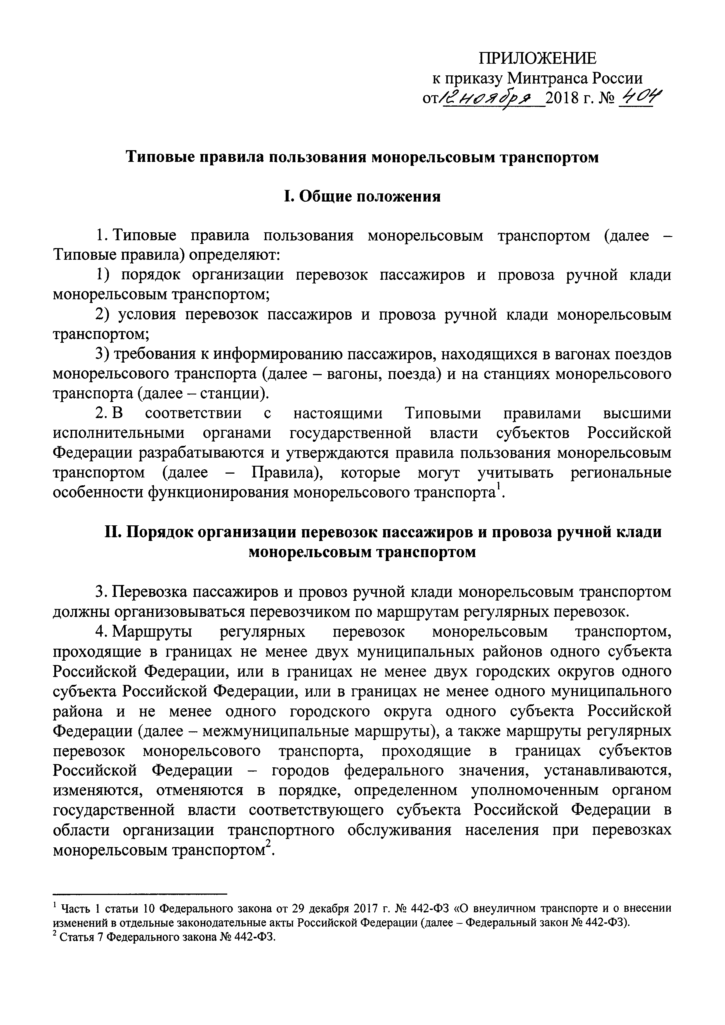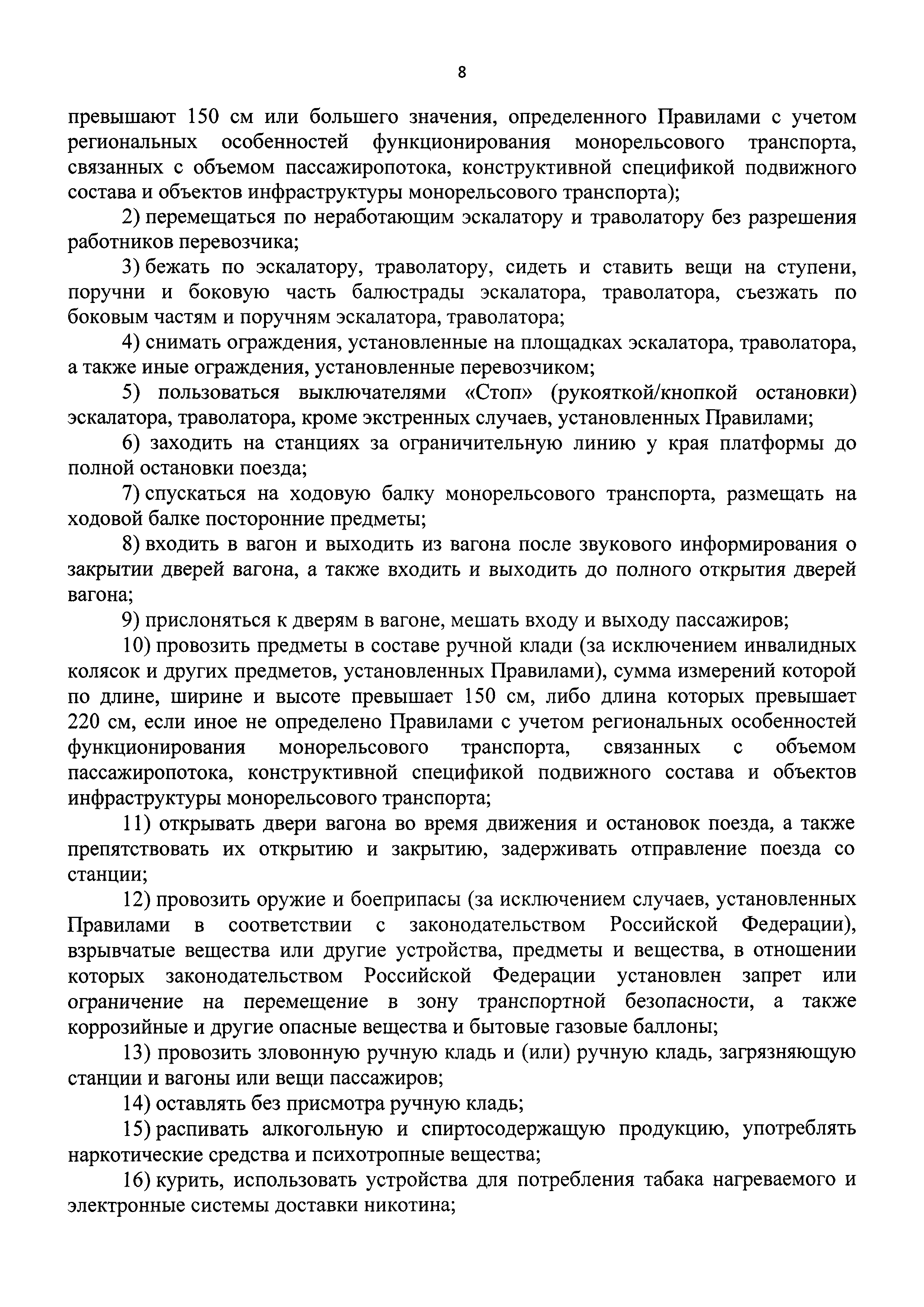 | Оглавление: | I. Общие положения II. Порядок организации перевозок пассажиров и провоза ручной клади монорельсовым транспортом III. Условия перевозок пассажиров и провоза ручной клади монорельсовым транспортом IV. Требования к информированию пассажиров, находящихся в вагонах и на станциях монорельсового транспорта |