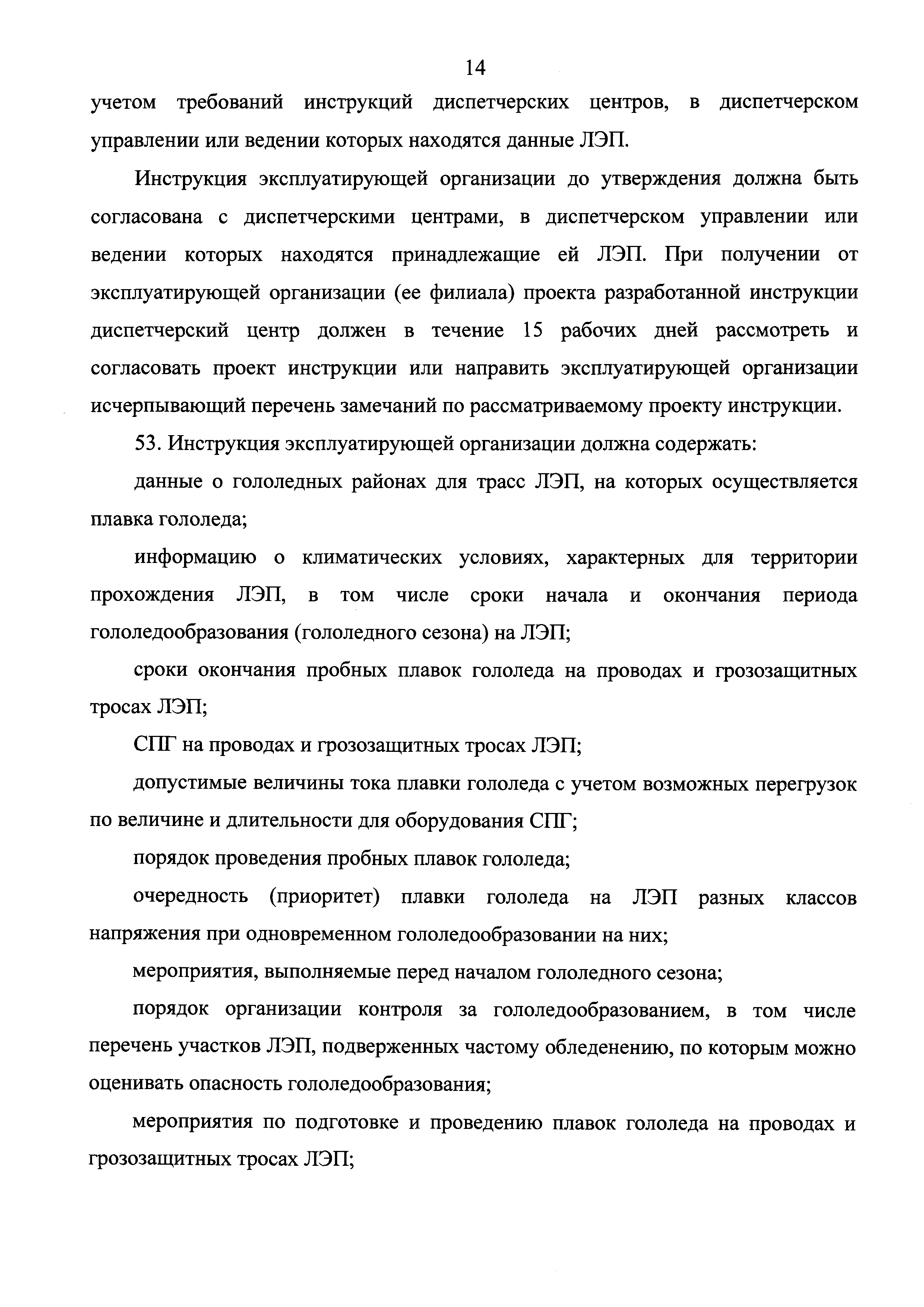 | Область применения: | Требования по плавке гололеда на проводах и грозозащитных тросах линий электропередачи устанавливают требования к организации и проведению плавки всех типов гололедно-изморозевых отложений на проводах и грозозащитных тросах воздушных линий электропередачи и воздушных участков кабельно-воздушных линий электропередачи классом напряжения 6 кВ и выше, в том числе требования к разработке и согласованию инструкций по плавке гололеда, определению схем и методов плавки гололеда, проведению мероприятий по подготовке схем плавки гололеда и проведению пробных плавок, разработке и согласованию программ плавки гололеда, организации контроля за гололедообразованием на проводах и грозозащитных тросах ЛЭП |