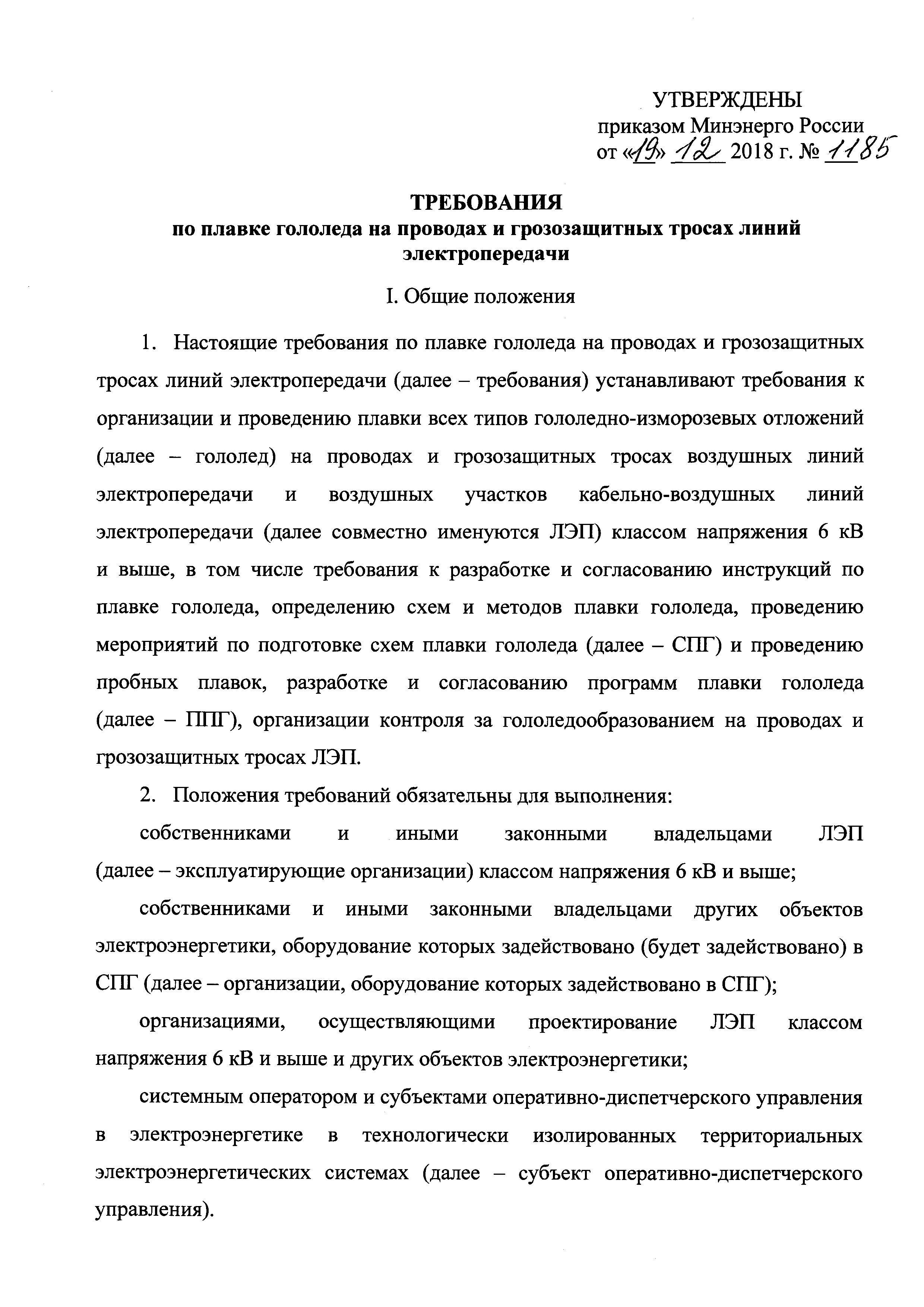 | Утверждён: | 19.12.2018 Министерство энергетики РФ (Russian Federation Ministry of Energy 1185) |