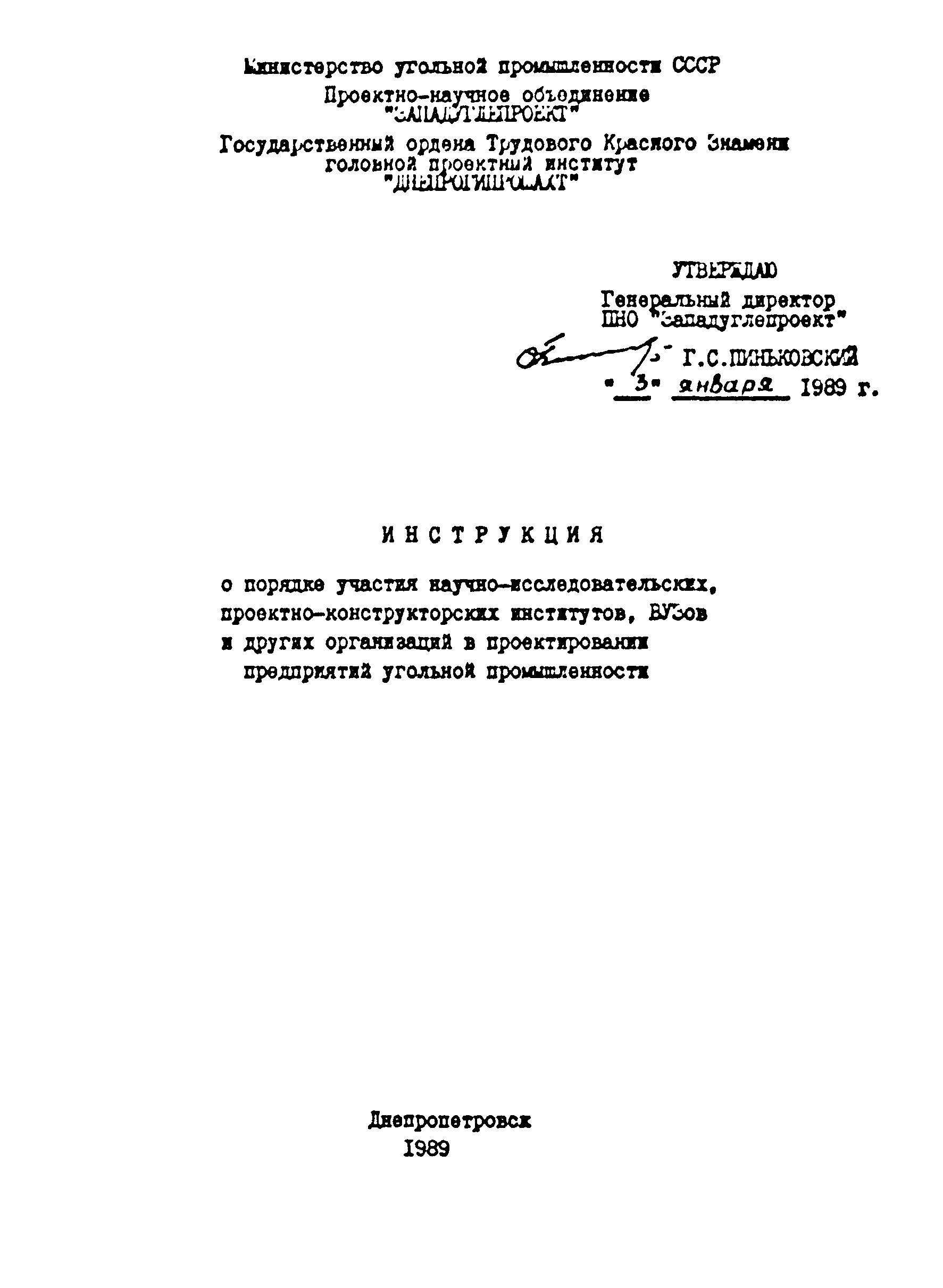 | | Утверждён: | 03.01.1989 ПНО Западуглепроект