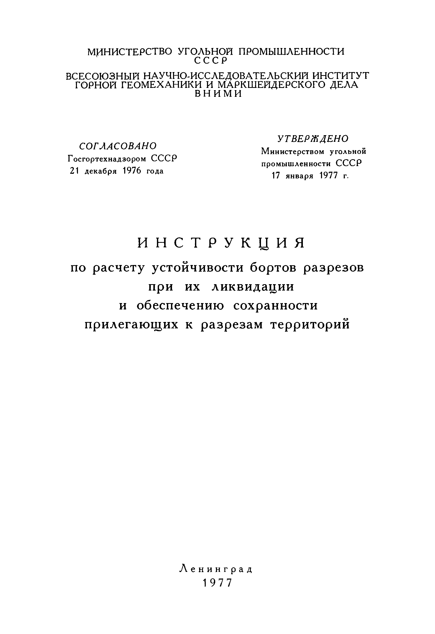 | Утверждён: | 17.01.1977 Министерство угольной промышленности СССР (USSR Ministry of the Coal Industry )