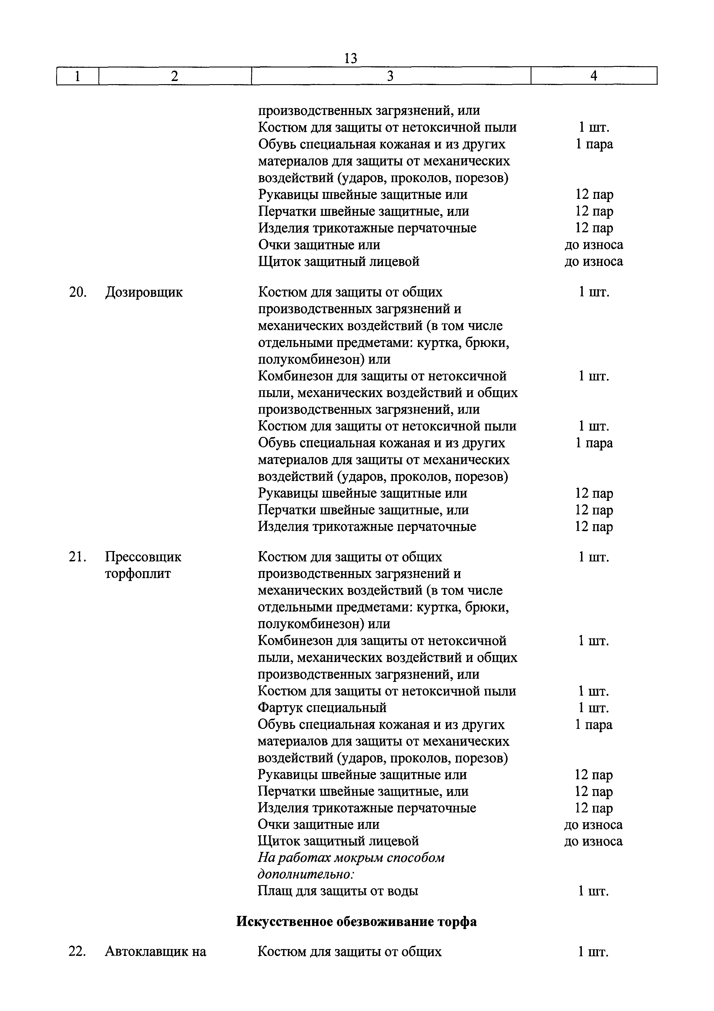 Скачать Типовые нормы бесплатной выдачи специальной одежды, специальной обуви и других средств индивидуальной защиты работникам торфозаготовительных и торфоперерабатывающих организаций, занятым на работах с вредными и (или) опасными условиями труда, а также на работах, выполняемых в особых температурных условиях или связанных с загрязнениемДата актуализации: 01.01.2021