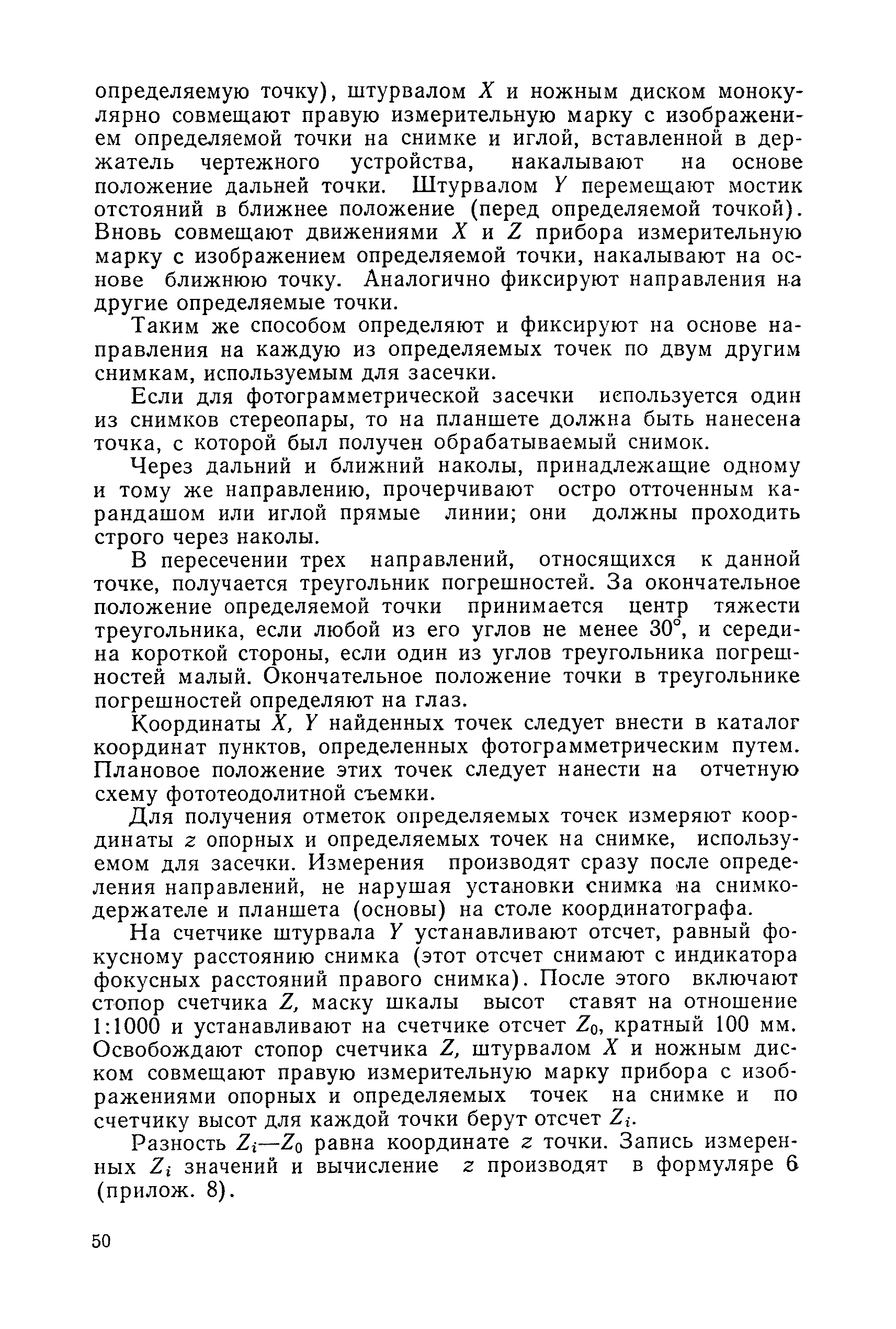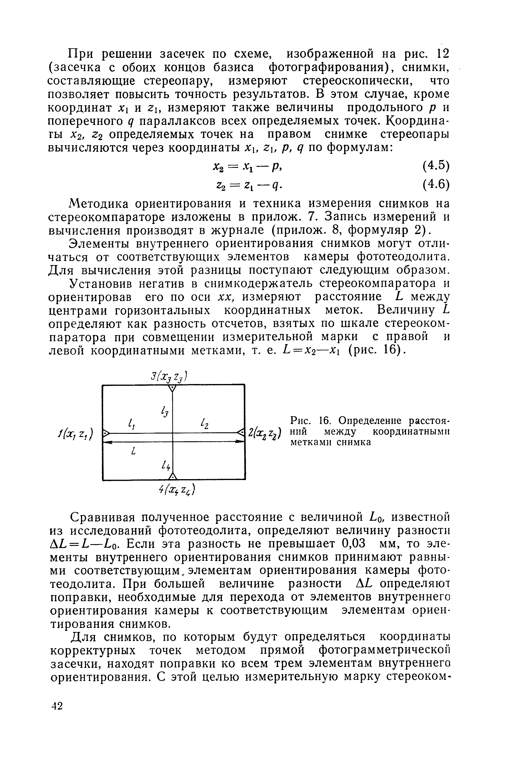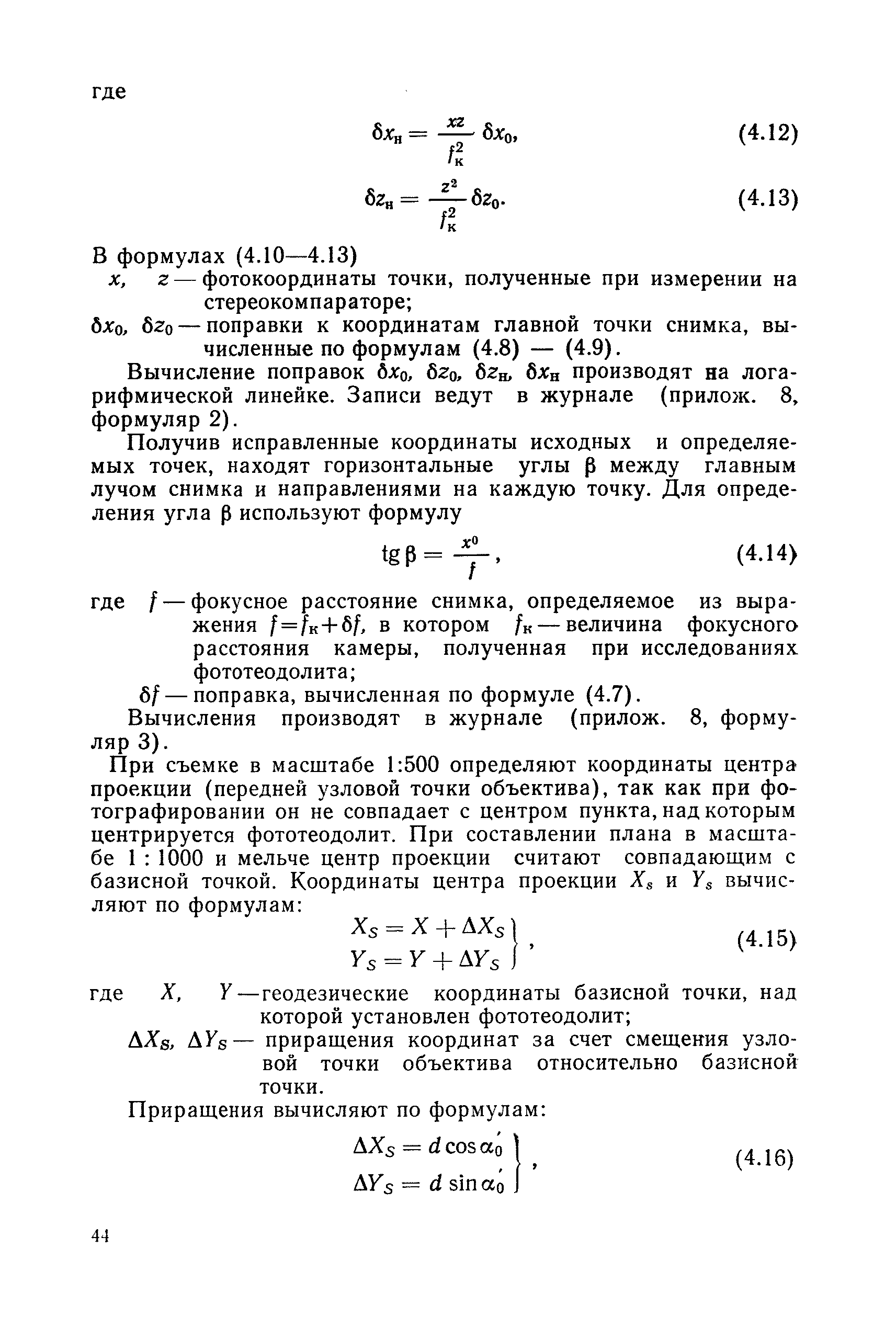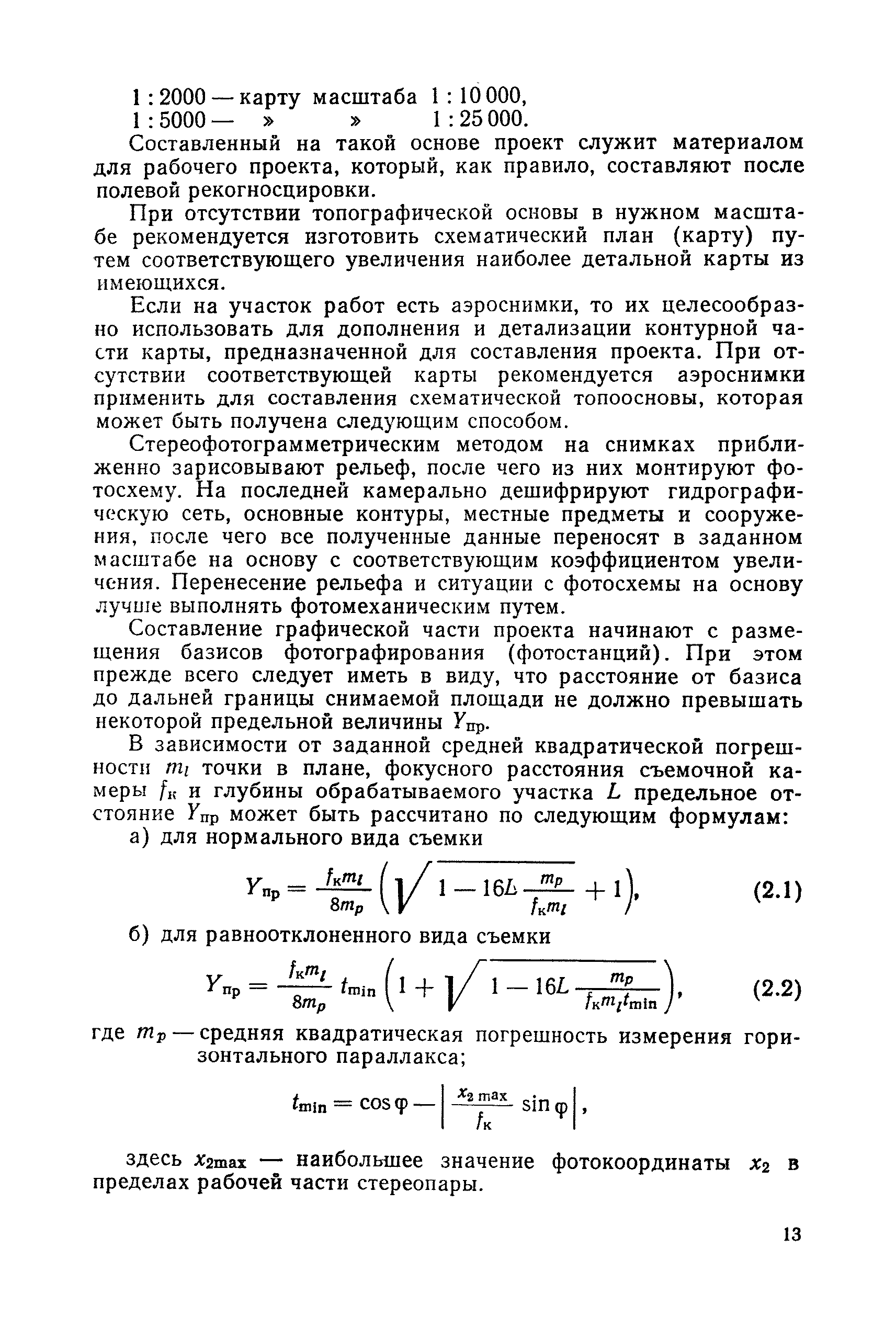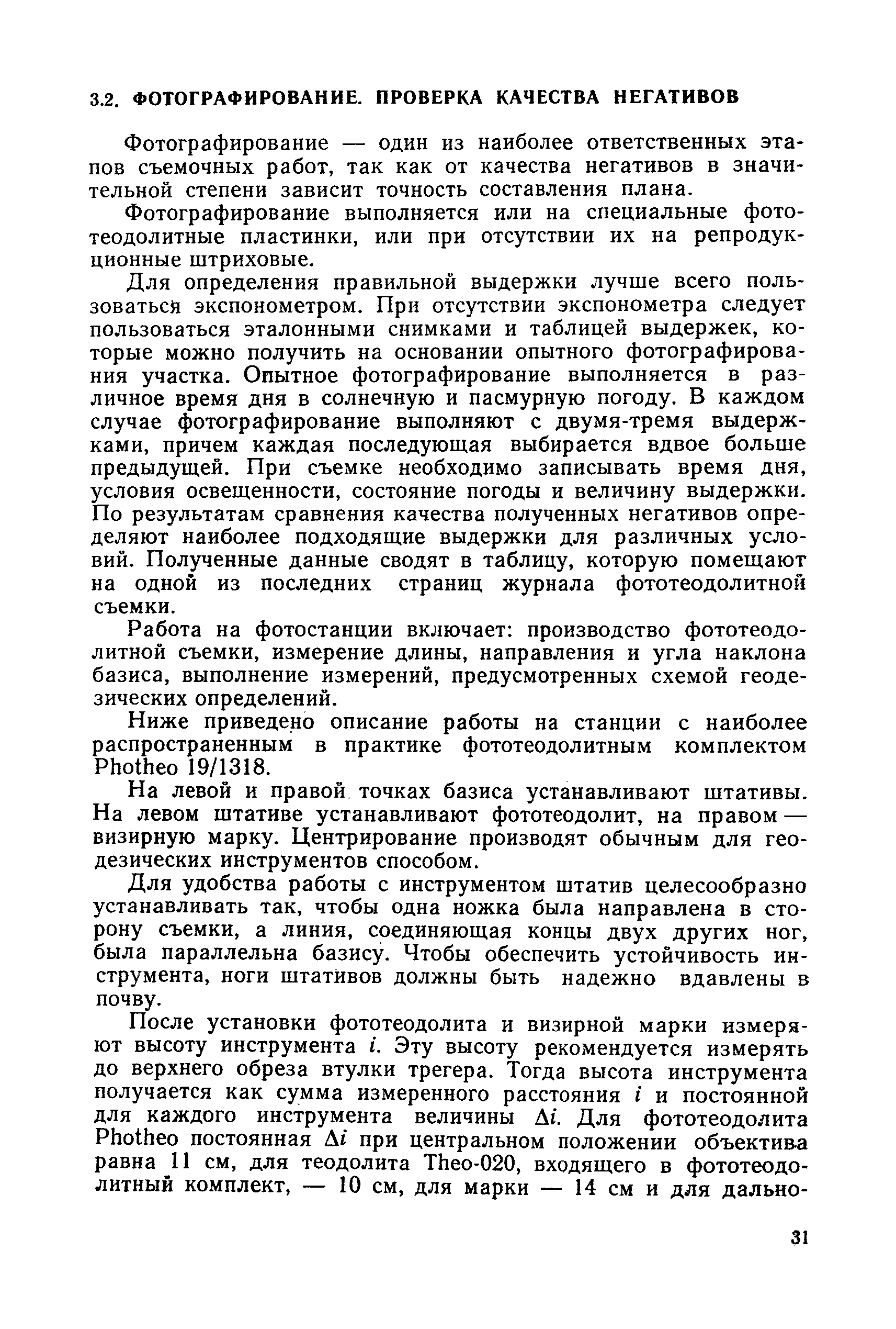 Руководство по топографическим съемкам в масштабах 1:5000, 1:2000, 1:1000, 1:500. Фототеодолитная съемка| Статус: | справочные материалы, мп, тпр | | Название рус.: | Руководство по топографическим съемкам в масштабах 1:5000, 1:2000, 1:1000, 1:500. Фототеодолитная съемка | | Дата добавления в базу: | 01.02.2020 | | Дата актуализации: | 01.01.2021 | | Область применения: | Руководство предназначено для предприятий и организаций всех ведомств, занимающихся топографической съемкой. | | Оглавление: | Глава 1. Основы фототеодолитной съемки 1.1. Основные понятия и определения 1.2. Системы координат. Элементы ориентирования. Связь между координатами точек снимка и местности 1.3. Виды съемки. Рабочие формулы Глава 2. Составление проекта съемки и подготовка инструментов. Полевые работы 2.1. Общие сведения 2.2. Составление проекта съемки 2.3. Подготовка инструментов, оборудования и материалов Глава 3. Полевые работы 3.1. Рекогносцировка участка, закрепление и маркирование точек 3.2. Фотографирование. Проверка качества негативов 3.3. Геодезические работы 3.4. Топографическое дешифрирование 3.5. Оформление материалов полевых работ Глава 4. Предварительные камеральные работы 4.1. Вычислительные геодезические работы 4.2. Составление проекта фотограмметрических работ 4.3. Фотограмметрические способы определения координат корректурных точек 4.4. Решение фотограмметрической засечки на приборах универсального типа 4.5. Пикетный способ определения координат корректурных точек Глава 5. Составление плана универсальным способом 5.1. Подготовительные работы 5.2. Построение модели и установка планшета 5.3. Корректура модели на стереоавтографе 5.4. Рисовка рельефа и контуров 5.5. Обработка стереопар на стереометрографе Приложение 1. Образцы составления графической документации Приложение 2. Фототеодолитный комплект Photheo 19/1318 Приложение 3. Стереометрограф Приложение 4. Журнал корректуры модели на стереоавтографе Приложение 5. Стереоавтограф 1318 Приложение 6. Стереокомпаратор 1818 Приложение 7. План фотограмметрических работ Приложение 8. Определение координат точек методом фотограмметрической засечки Приложение 9. Каталог базисов и ориентирных направлений Приложение 10. Обработка фотоматериалов | | Разработан: | НИИПГ