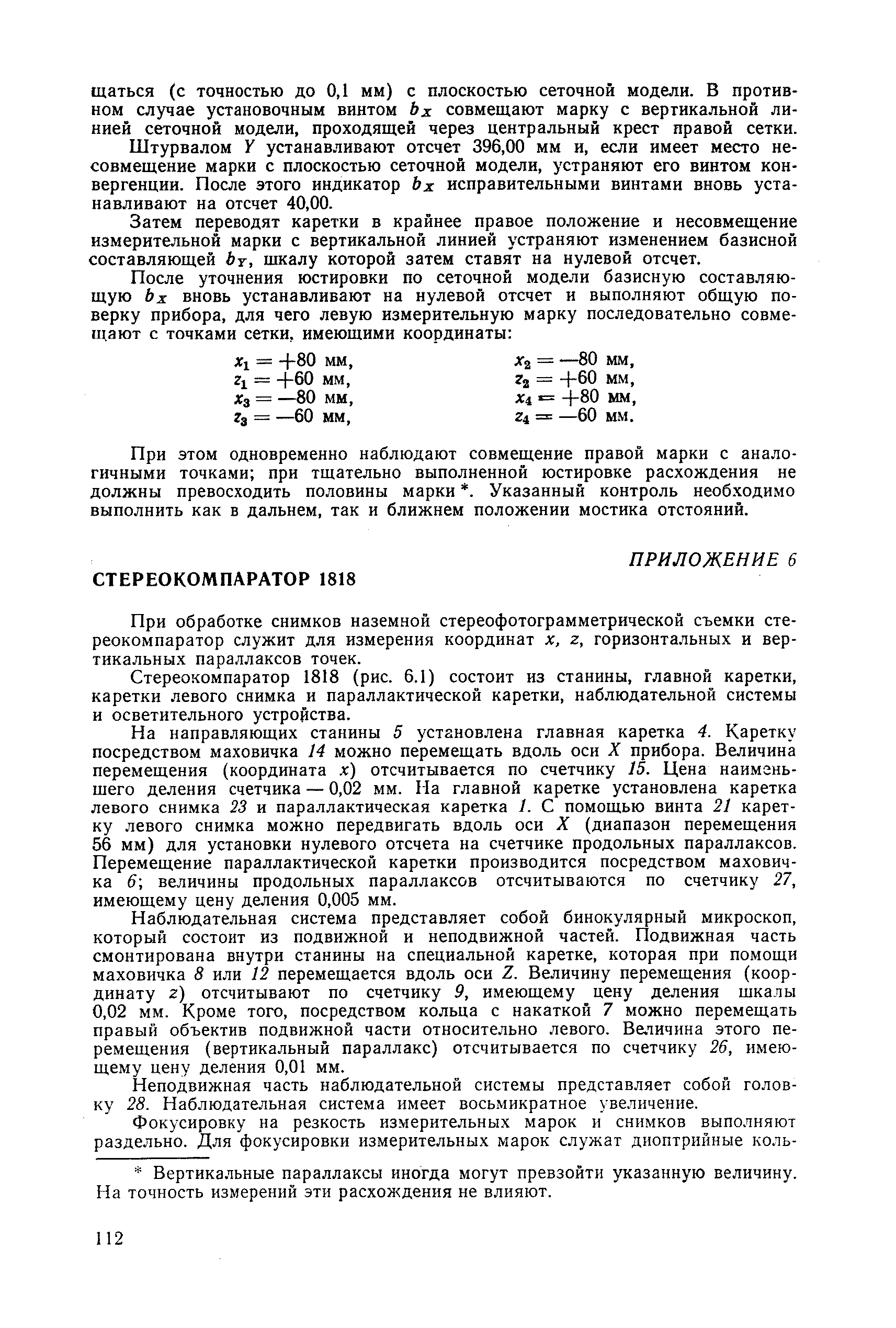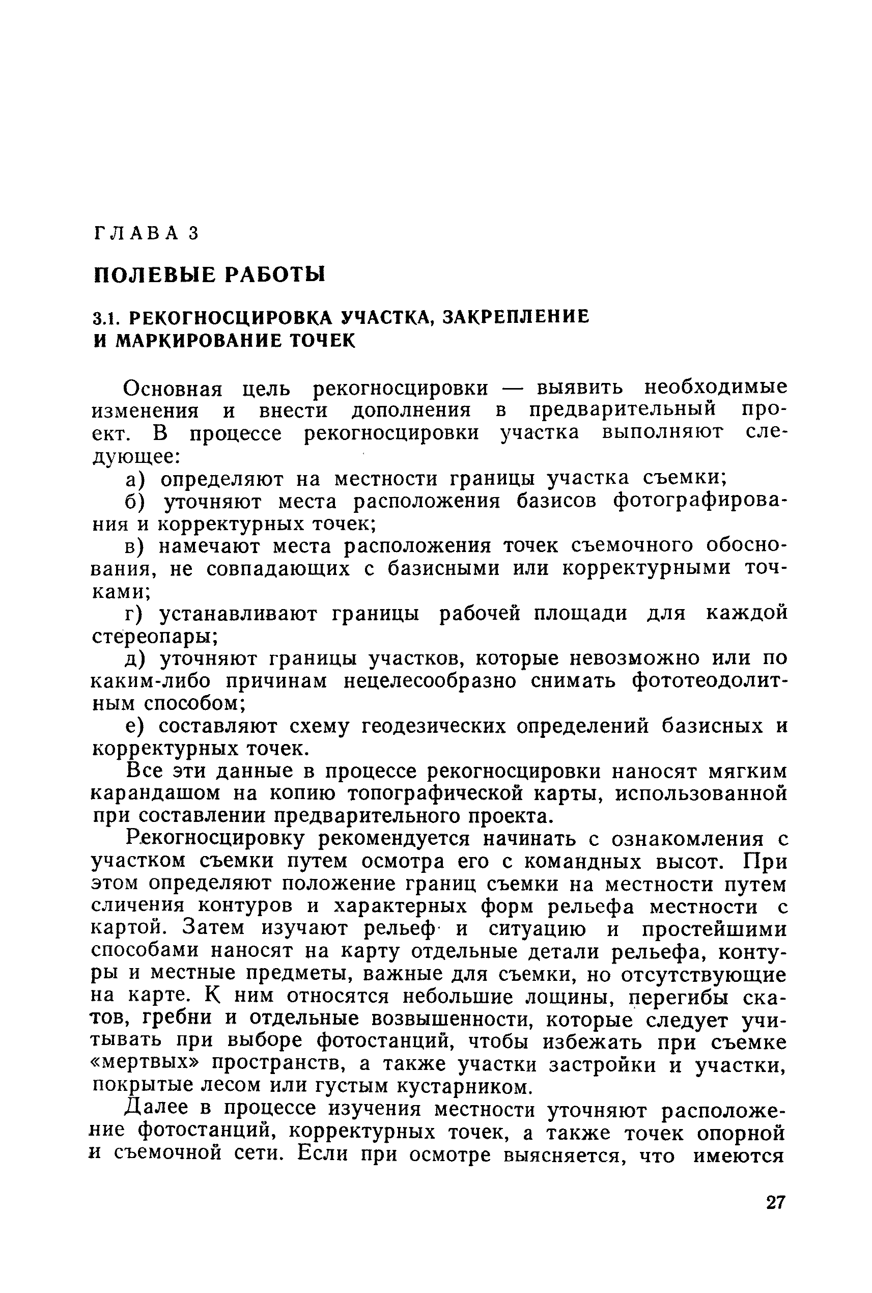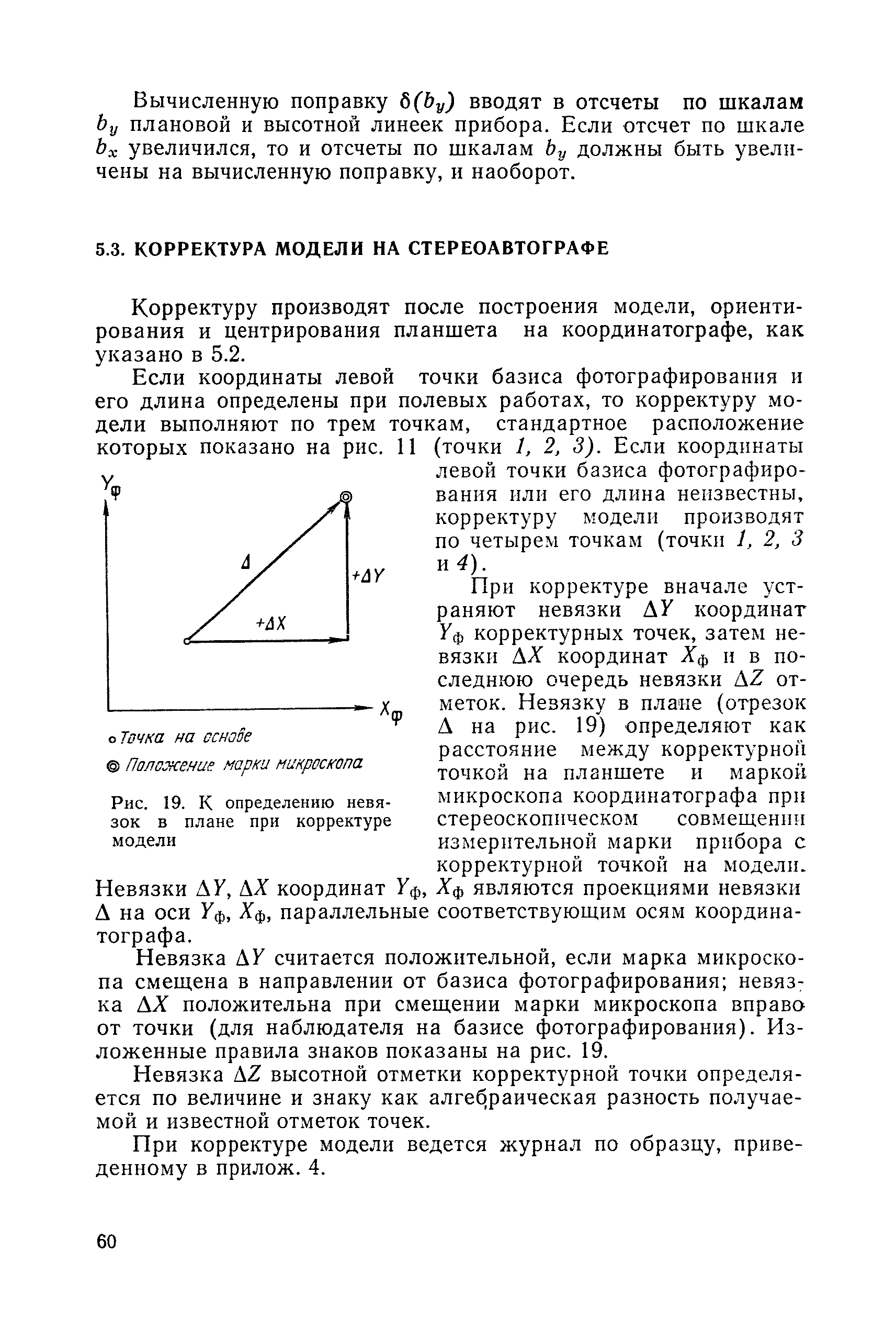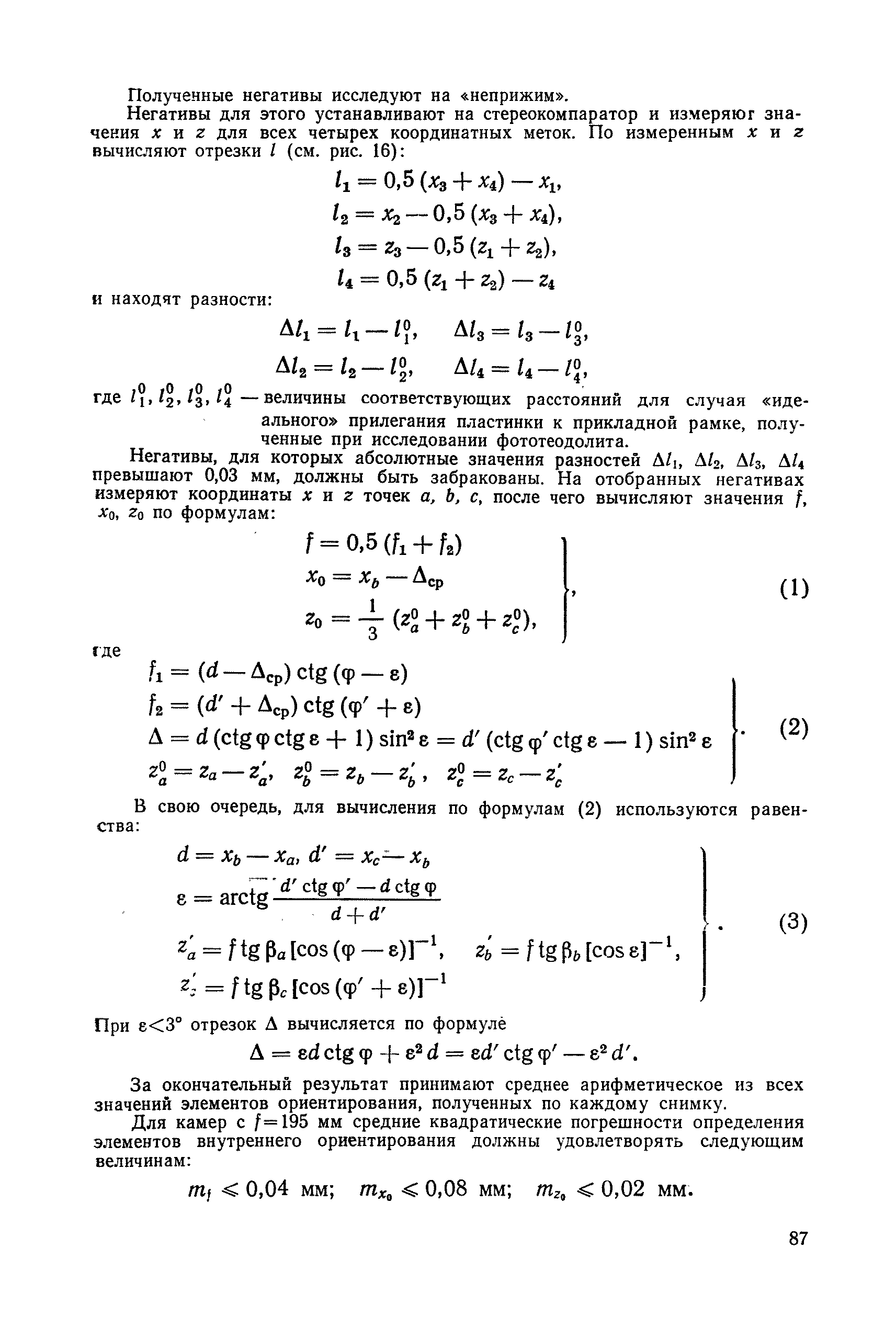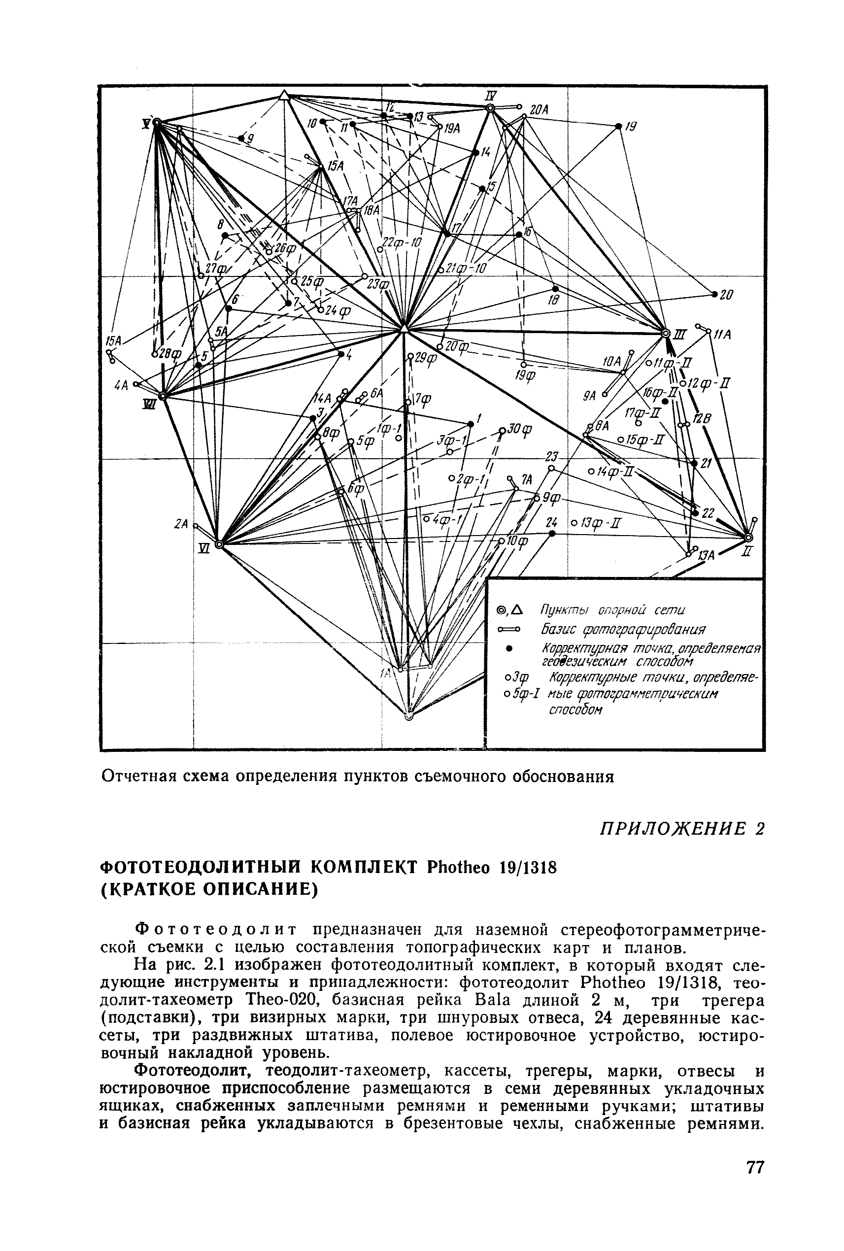 Руководство по топографическим съемкам в масштабах 1:5000, 1:2000, 1:1000, 1:500. Фототеодолитная съемка| Статус: | справочные материалы, мп, тпр | | Название рус.: | Руководство по топографическим съемкам в масштабах 1:5000, 1:2000, 1:1000, 1:500. Фототеодолитная съемка | | Дата добавления в базу: | 01.02.2020 | | Дата актуализации: | 01.01.2021 | | Область применения: | Руководство предназначено для предприятий и организаций всех ведомств, занимающихся топографической съемкой. | | Оглавление: | Глава 1. Основы фототеодолитной съемки 1.1. Основные понятия и определения 1.2. Системы координат. Элементы ориентирования. Связь между координатами точек снимка и местности 1.3. Виды съемки. Рабочие формулы Глава 2. Составление проекта съемки и подготовка инструментов. Полевые работы 2.1. Общие сведения 2.2. Составление проекта съемки 2.3. Подготовка инструментов, оборудования и материалов Глава 3. Полевые работы 3.1. Рекогносцировка участка, закрепление и маркирование точек 3.2. Фотографирование. Проверка качества негативов 3.3. Геодезические работы 3.4. Топографическое дешифрирование 3.5. Оформление материалов полевых работ Глава 4. Предварительные камеральные работы 4.1. Вычислительные геодезические работы 4.2. Составление проекта фотограмметрических работ 4.3. Фотограмметрические способы определения координат корректурных точек 4.4. Решение фотограмметрической засечки на приборах универсального типа 4.5. Пикетный способ определения координат корректурных точек Глава 5. Составление плана универсальным способом 5.1. Подготовительные работы 5.2. Построение модели и установка планшета 5.3. Корректура модели на стереоавтографе 5.4. Рисовка рельефа и контуров 5.5. Обработка стереопар на стереометрографе Приложение 1. Образцы составления графической документации Приложение 2. Фототеодолитный комплект Photheo 19/1318 Приложение 3. Стереометрограф Приложение 4. Журнал корректуры модели на стереоавтографе Приложение 5. Стереоавтограф 1318 Приложение 6. Стереокомпаратор 1818 Приложение 7. План фотограмметрических работ Приложение 8. Определение координат точек методом фотограмметрической засечки Приложение 9. Каталог базисов и ориентирных направлений Приложение 10. Обработка фотоматериалов | | Разработан: | НИИПГ