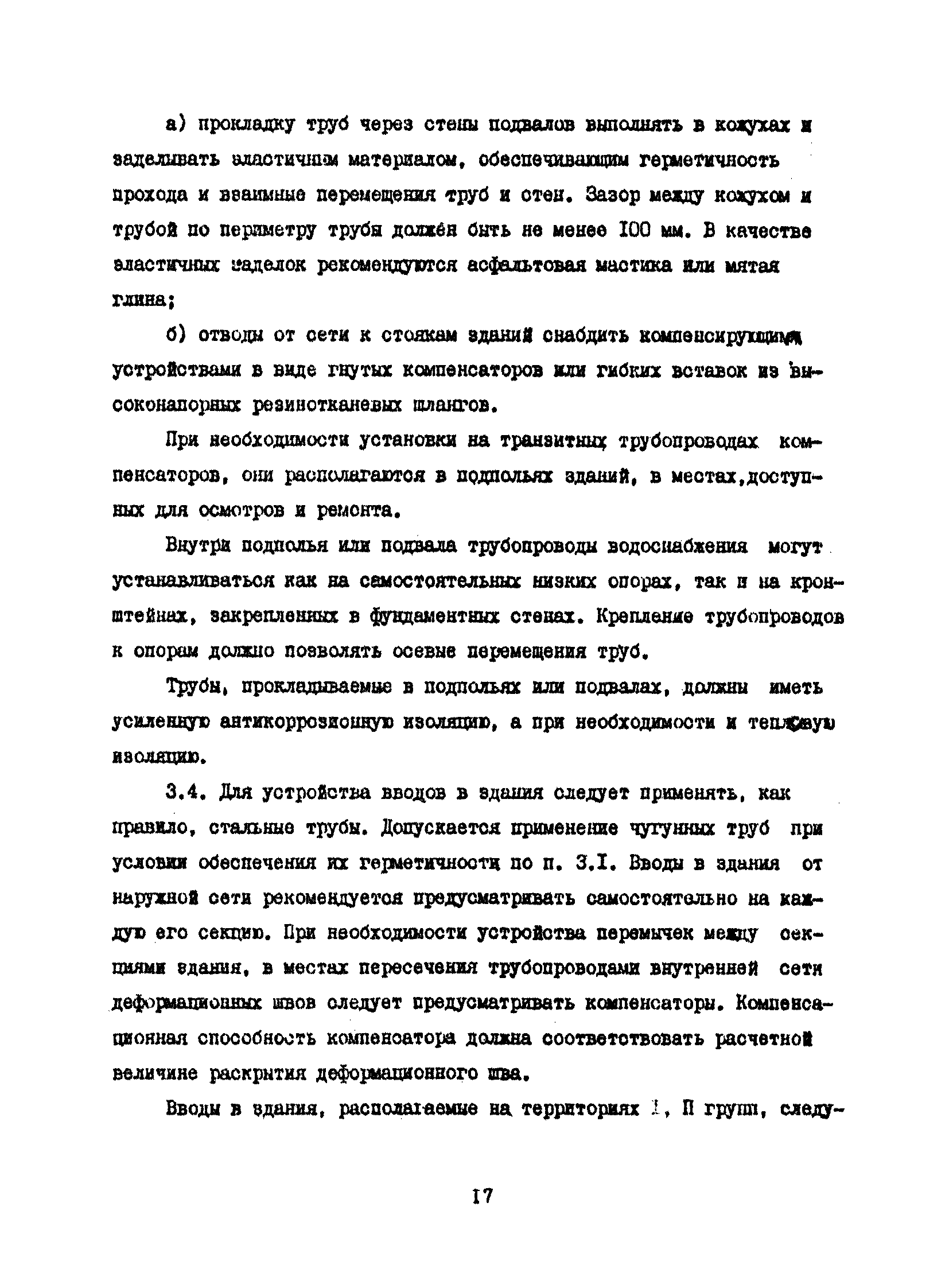 | Оглавление: | 1. Общие положения 2. Газопроводы 3. Водопроводы 4. Канализация 5. Теплопроводы 6. Расчет трубопроводов Приложение 1 Примеры расчета трубопроводов Приложение 2 Методика расчета деформаций земной поверхности как исходных данных для проектирования мер защиты трубопроводов Приложение 3 Трубы стальные бесшовные, сокращенный сортамент и справочные данные |