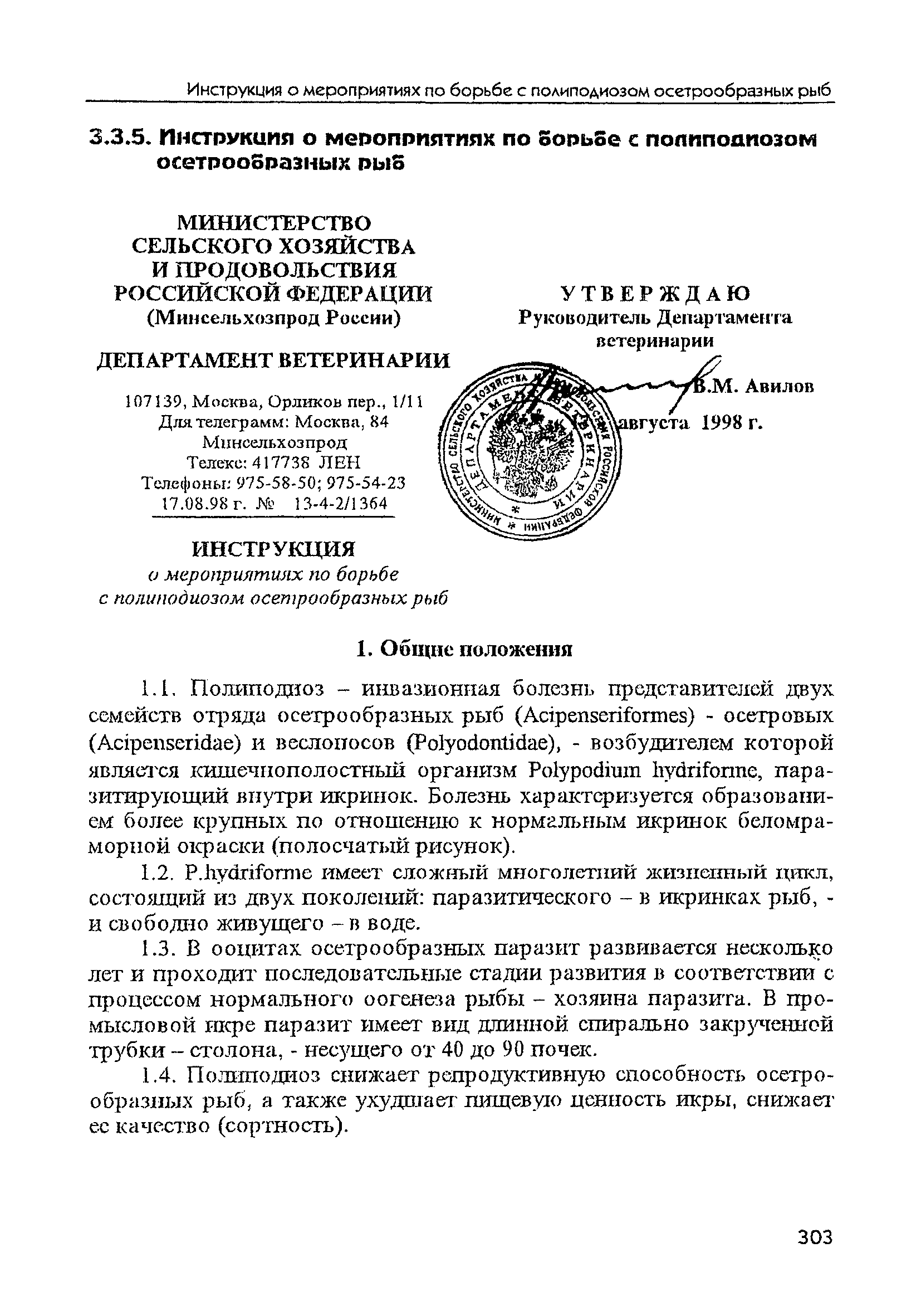 | Название рус.: | Инструкция о мероприятиях по борьбе с полиподиозом осетрообразных рыб |