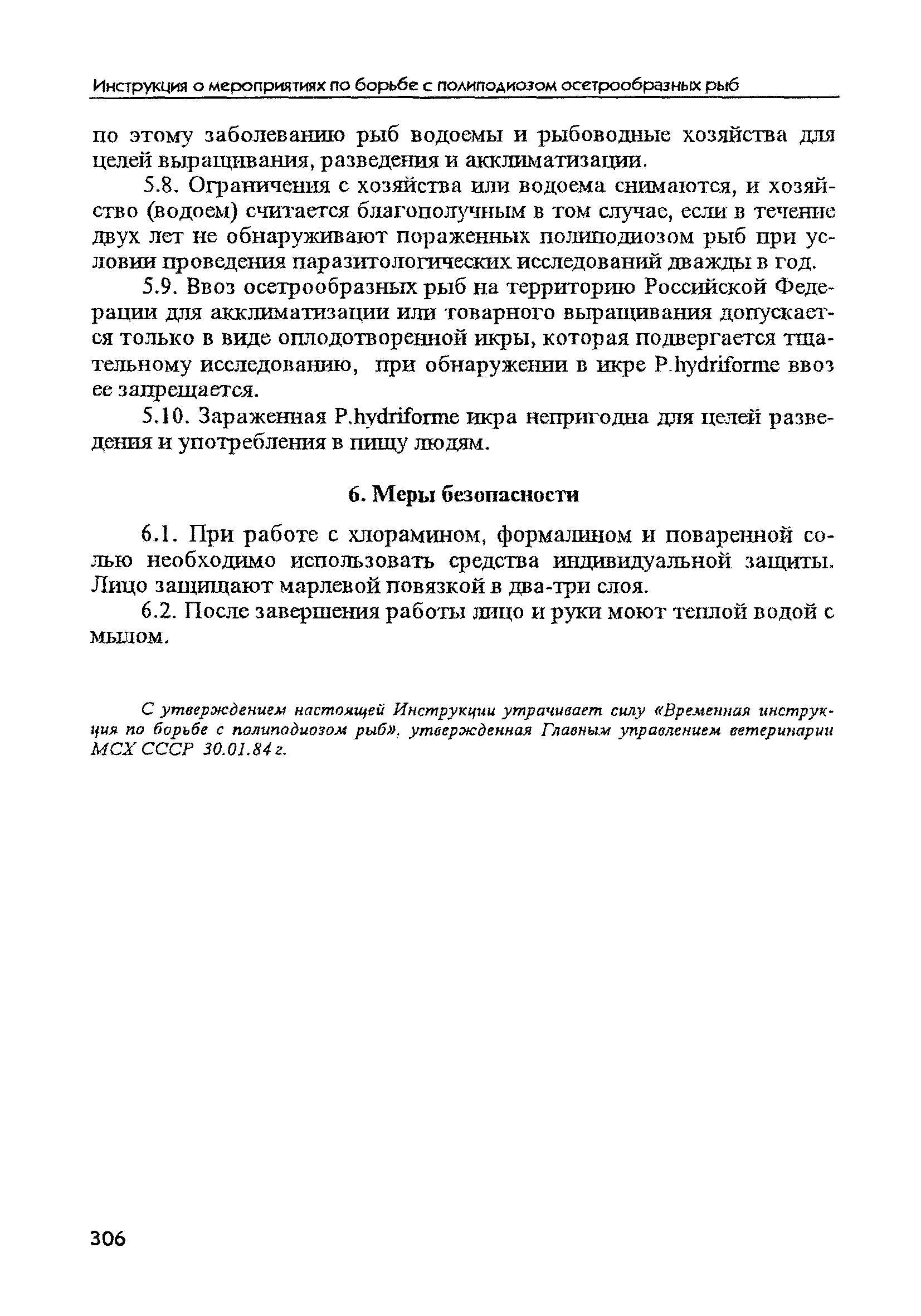 | Заменяет собой: | - «Временная инструкция по борьбе с полиподиозом рыб»