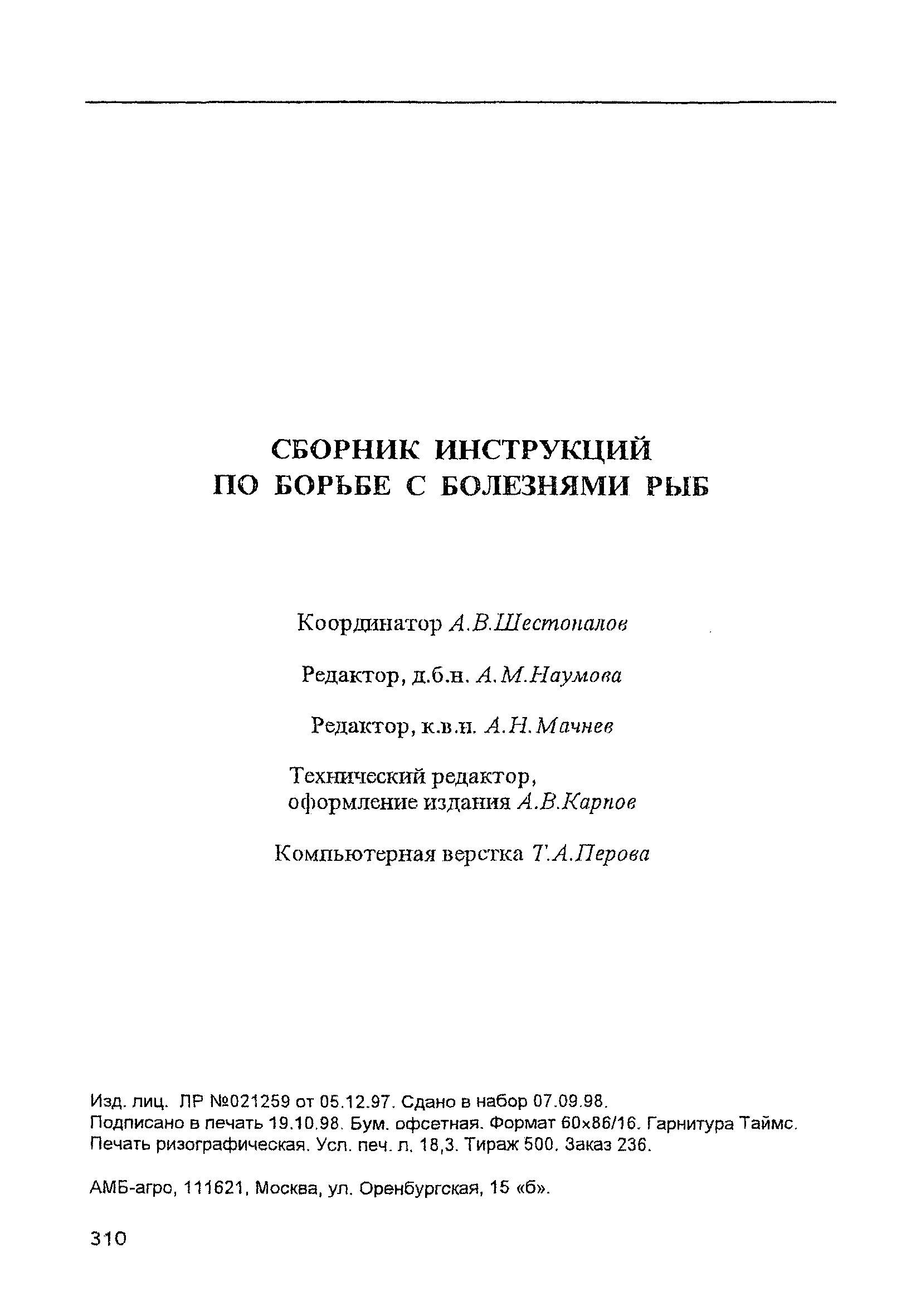 | Область применения: | Сборник предназначен для специалистов широкого профиля рыбоводных предприятий всех форм собственности, ихтиопатологической и ветеринарной службы, рыбохозяйственных и ветеринарных НИИ и ВУЗов |