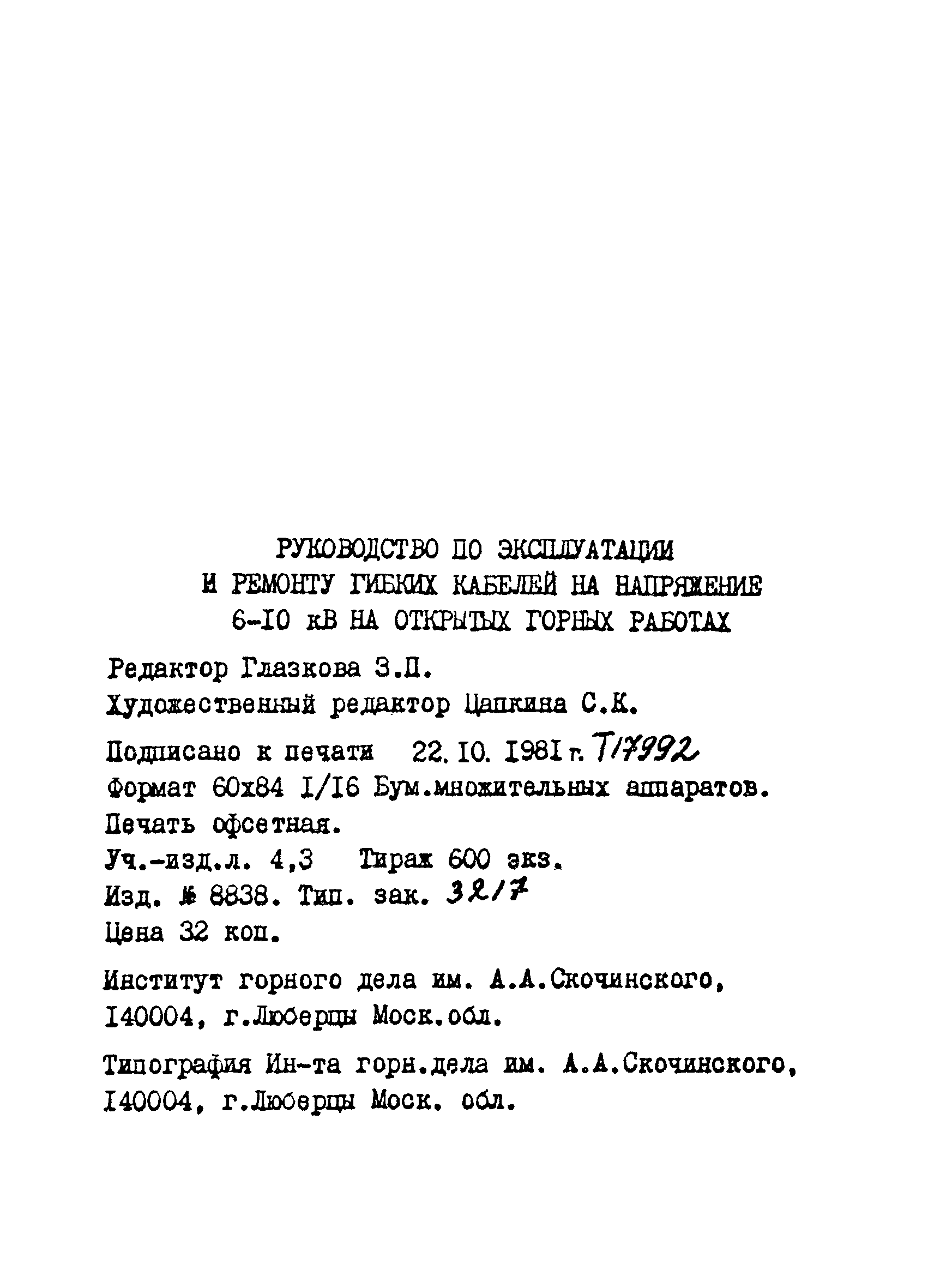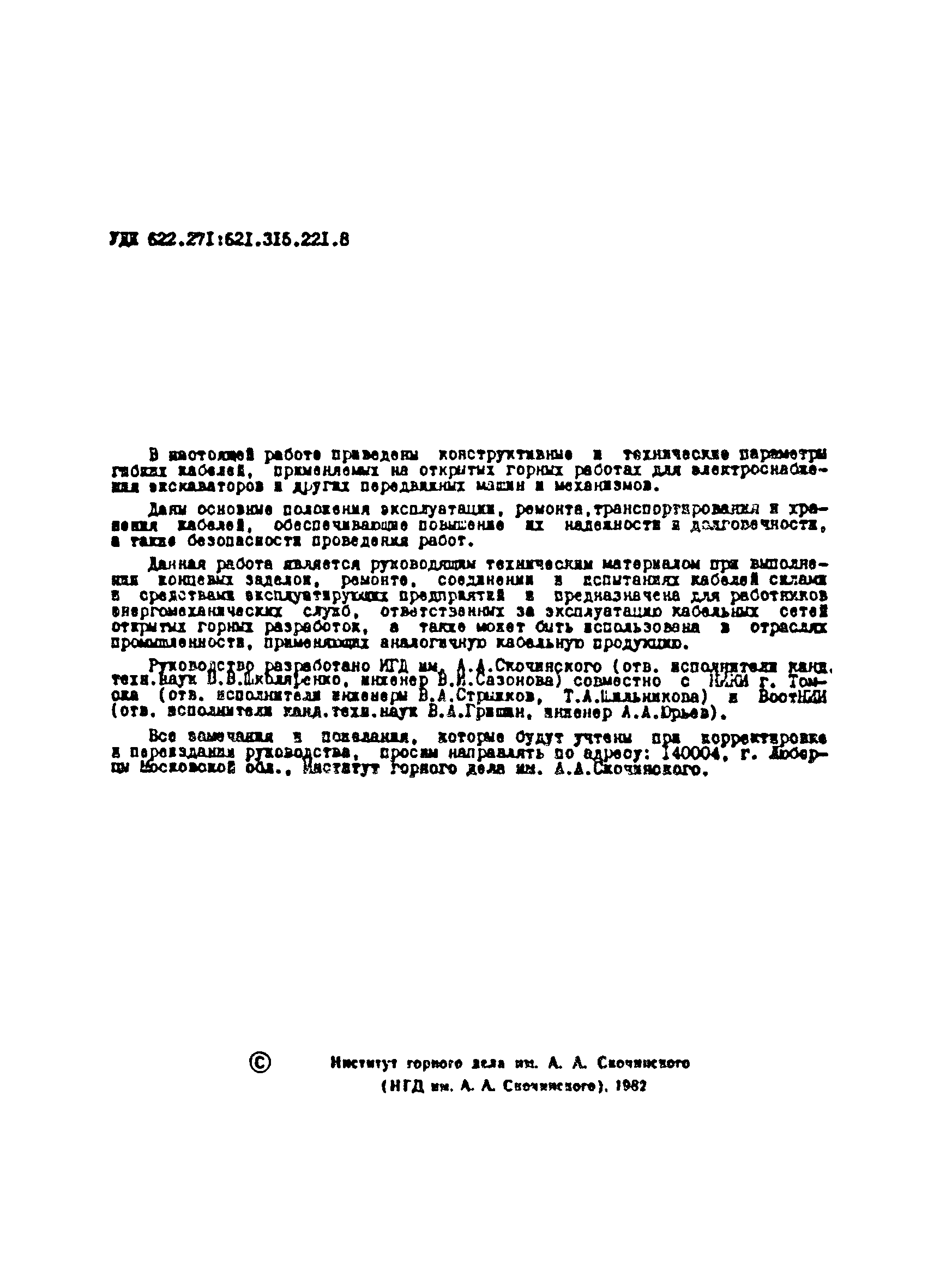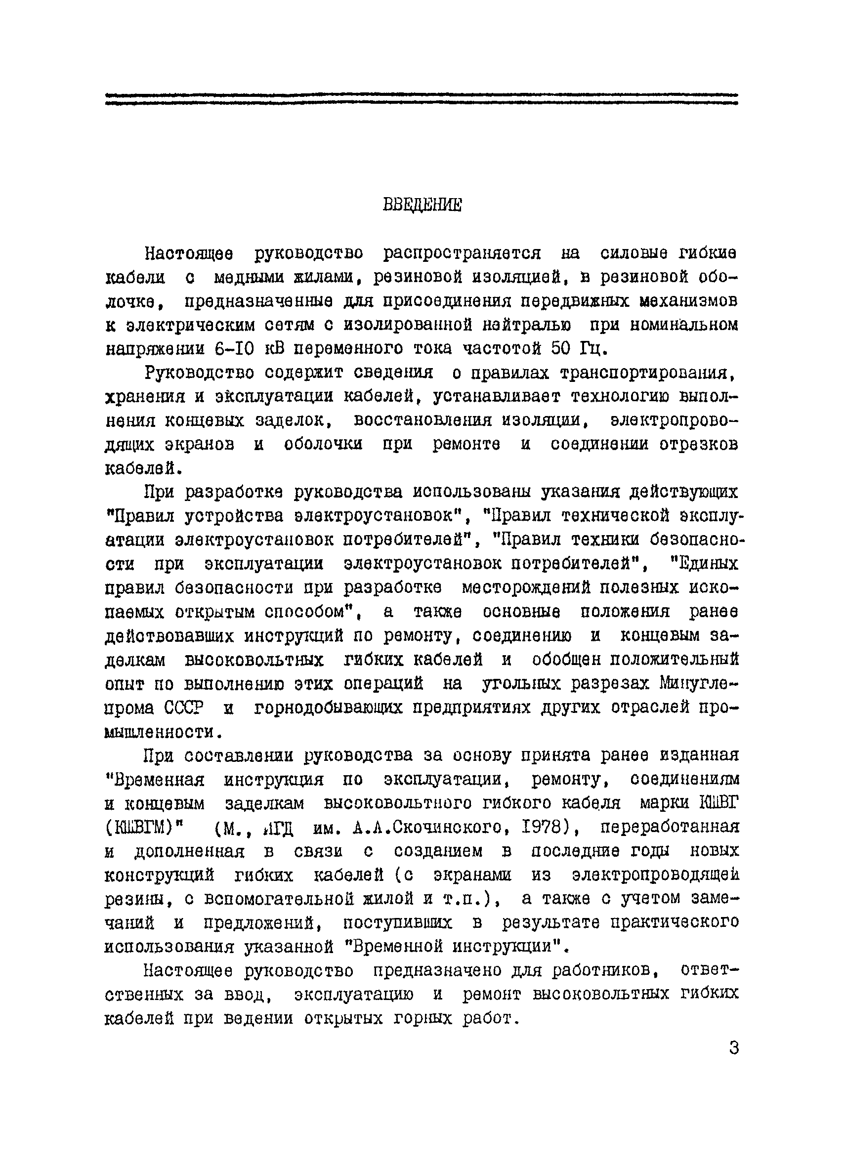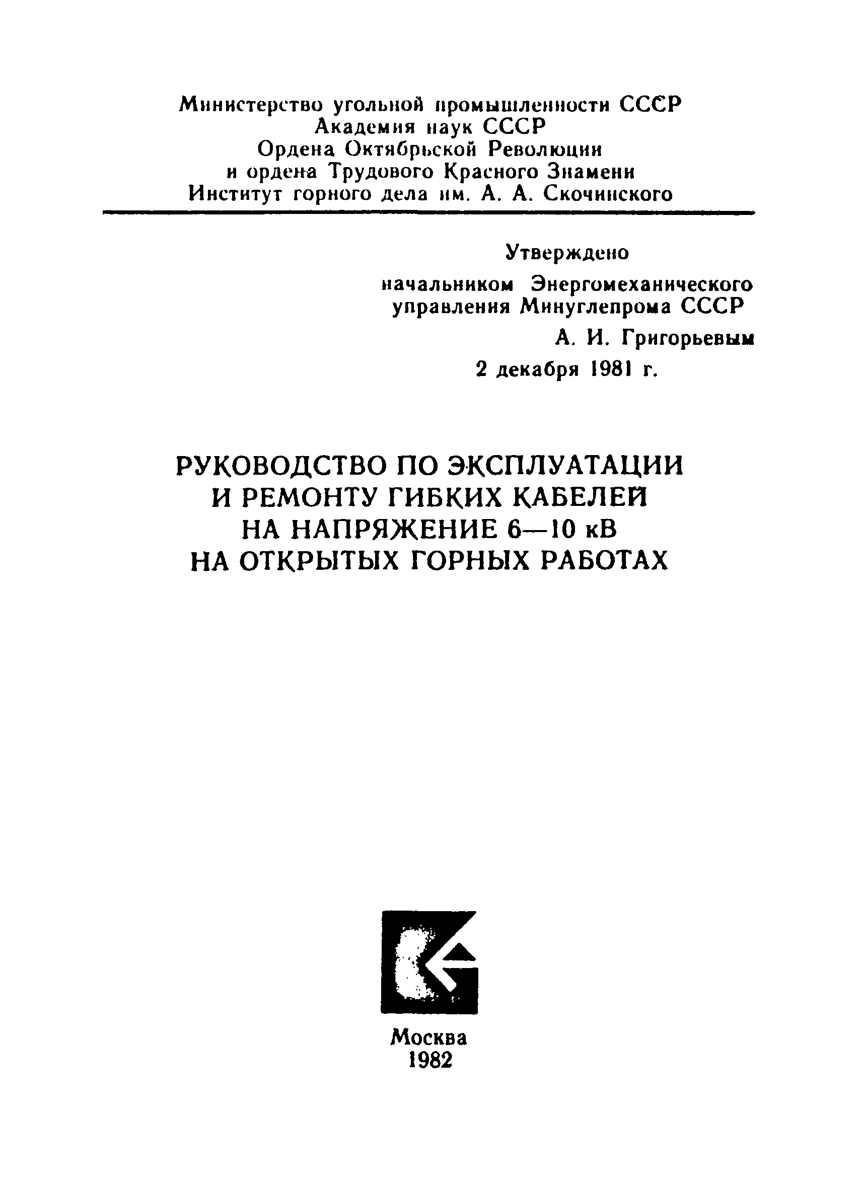 | Название рус.: | Руководство по эксплуатации и ремонту гибких кабелей на напряжение 6 - 10 кВ на открытых горных работах |