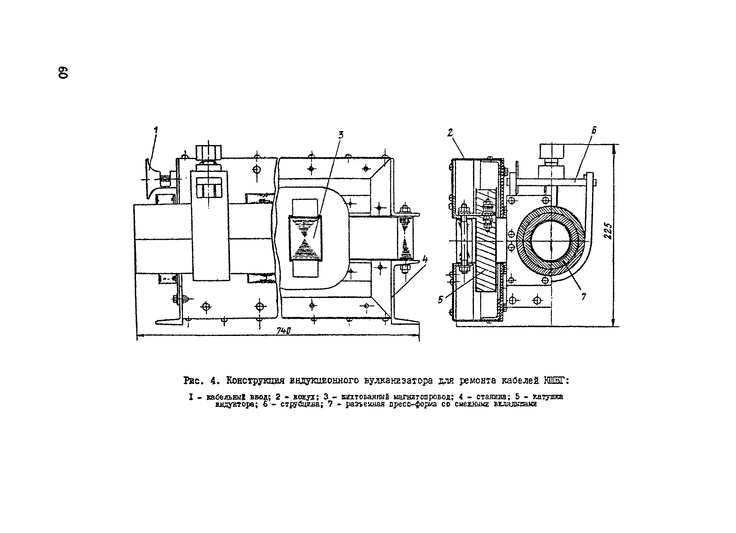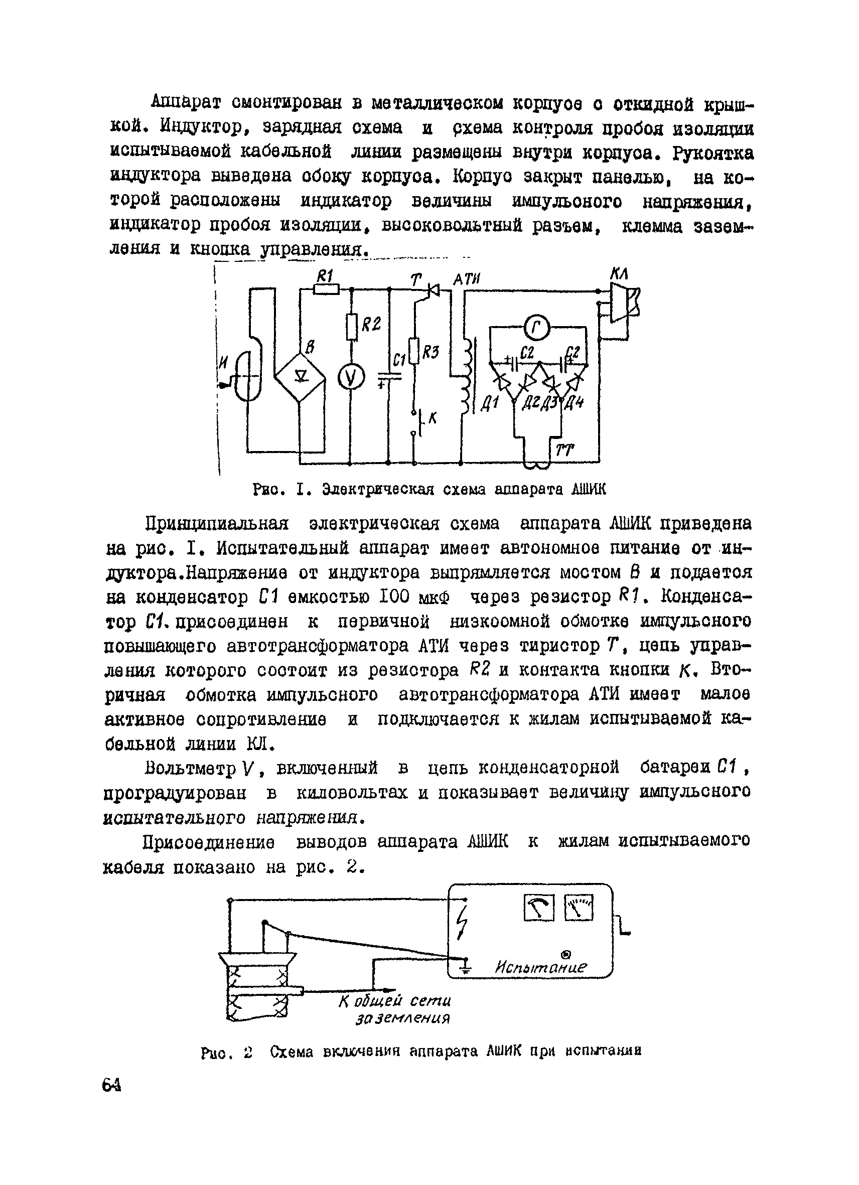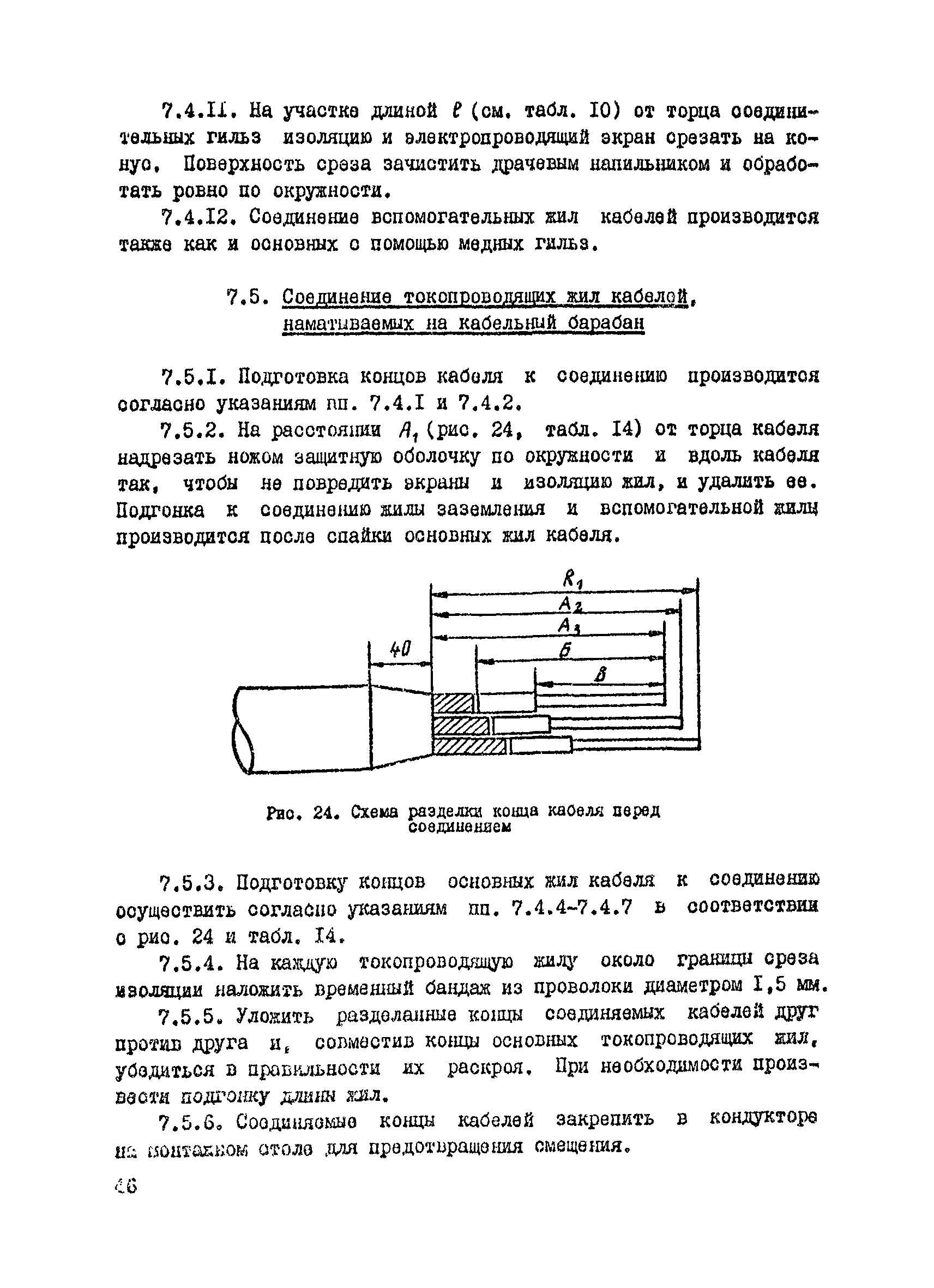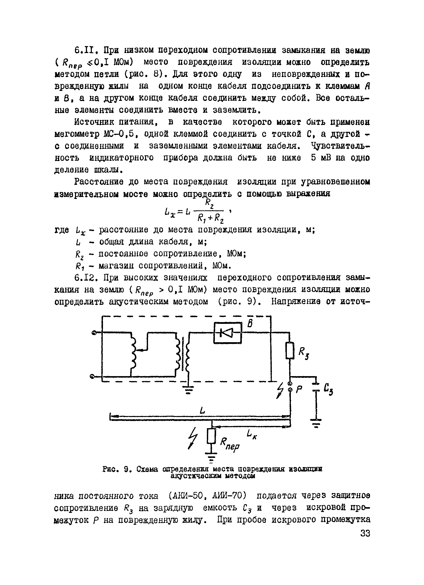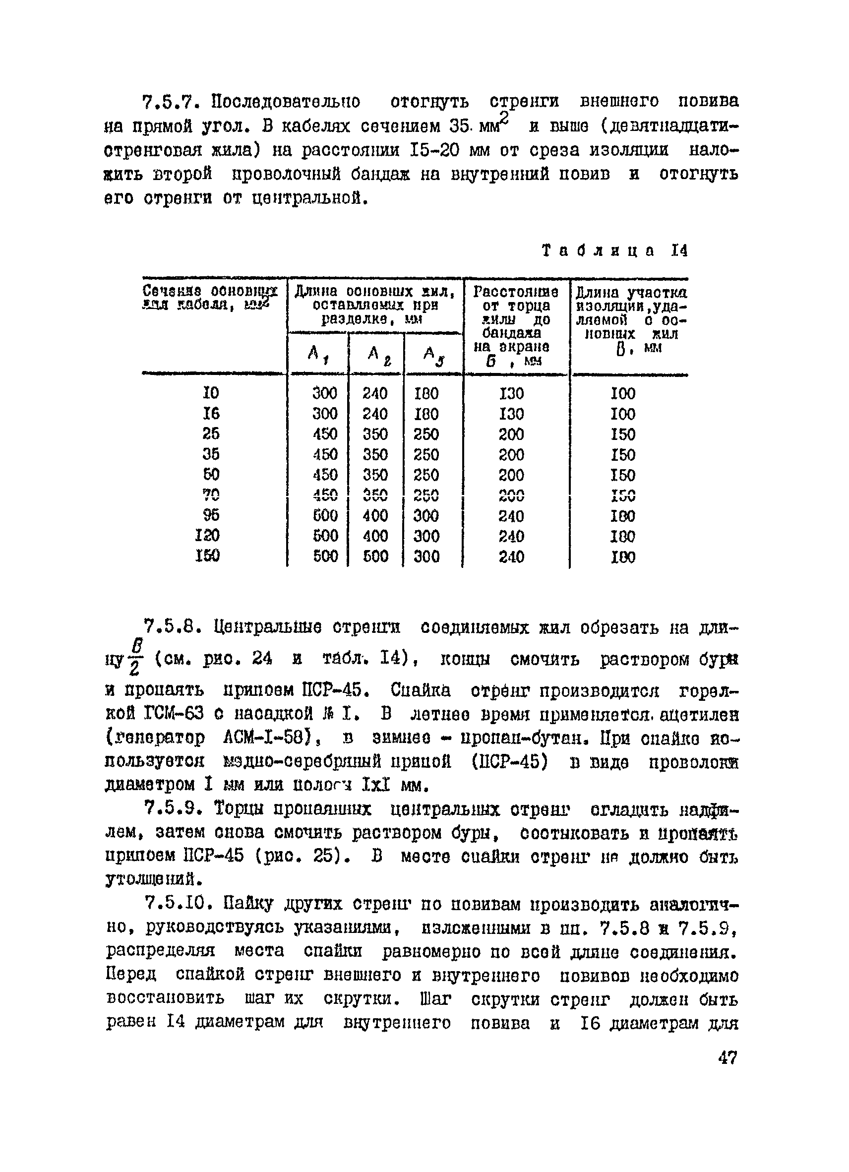 | Оглавление: | 1. Конструкция и основные технические данные кабелей марки КШНГ 2. Транспортирование и хранение кабелей 3. Меры безопасности 4. Концевые заделки кабелей 4.1. Общие требования и указания 4.2. Подготовка к работе 4.3. Порядок разделки кабеля 4.4. Порядок выполнения концевой заделки с помощью починочной резины 4.5. Порядок выполнения концевой заделки с помощью трубок из кремнийорганической резины 4.6. Порядок выполнения концевой заделки с помощью электроизоляционных гильз 4.7. Установка кабельных наконечников 5. Присоединение и эксплуатация кабелей 6. Проверка технического состояния и методы обнаружения неисправностей кабелей 7. Ремонт и соединение отрезков кабелей 7.1. Ремонт внешней оболочки и поясного экрана из электропроводящей резины 7.2. Ремонт металлического экрана основных жил кабелей типа КШНГ (на длине не более 260 мм) 7.3. Ремонт изоляции жилы 7.4. Соединение токопроводящих жил в помощью медных гильз 7.5. Соединение токопроводящих жил кабелей, наматываемых на кабельный барабан 7.6. Восстановление изоляции жил, экранов и оболочки при соединении отрезков кабеля Приложение 1 Перечень оборудования, инструмента и спецодежды, необходимых при ремонте, соединении и концевых заделках кабелей Приложение 2 Перечень материалов, необходимых для выполнения ремонта, соединений и концевых заделов кабелей Приложение 3 Нормы расхода основных материалов на выполнение 100 ремонтов для соединений кабелей КШНГ Приложение 4 Нормы расхода основных материалов на выполнение 100 концевых заделок кабелей КШНГ Приложение 5 Краткие сведения об особенностях принципа действия и эксплуатации вулканизаторов для выполнения концевых заделок ремонта и соединения гибких кабелей Приложение 6 Аппарат АШИК для испытания кабелей повышенным импульсным напряжением Подготовка кабеля к испытанию с помощью аппарата АШИК |