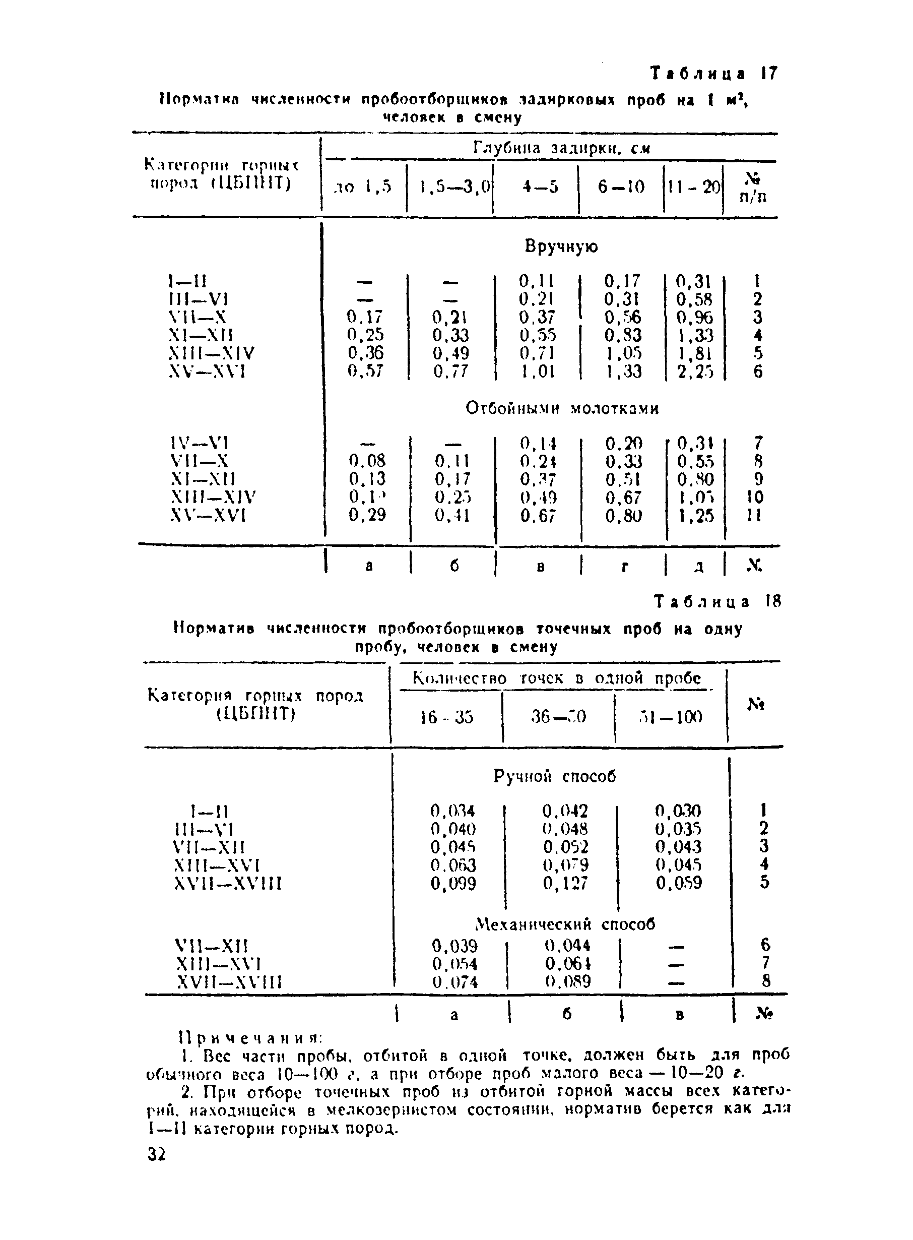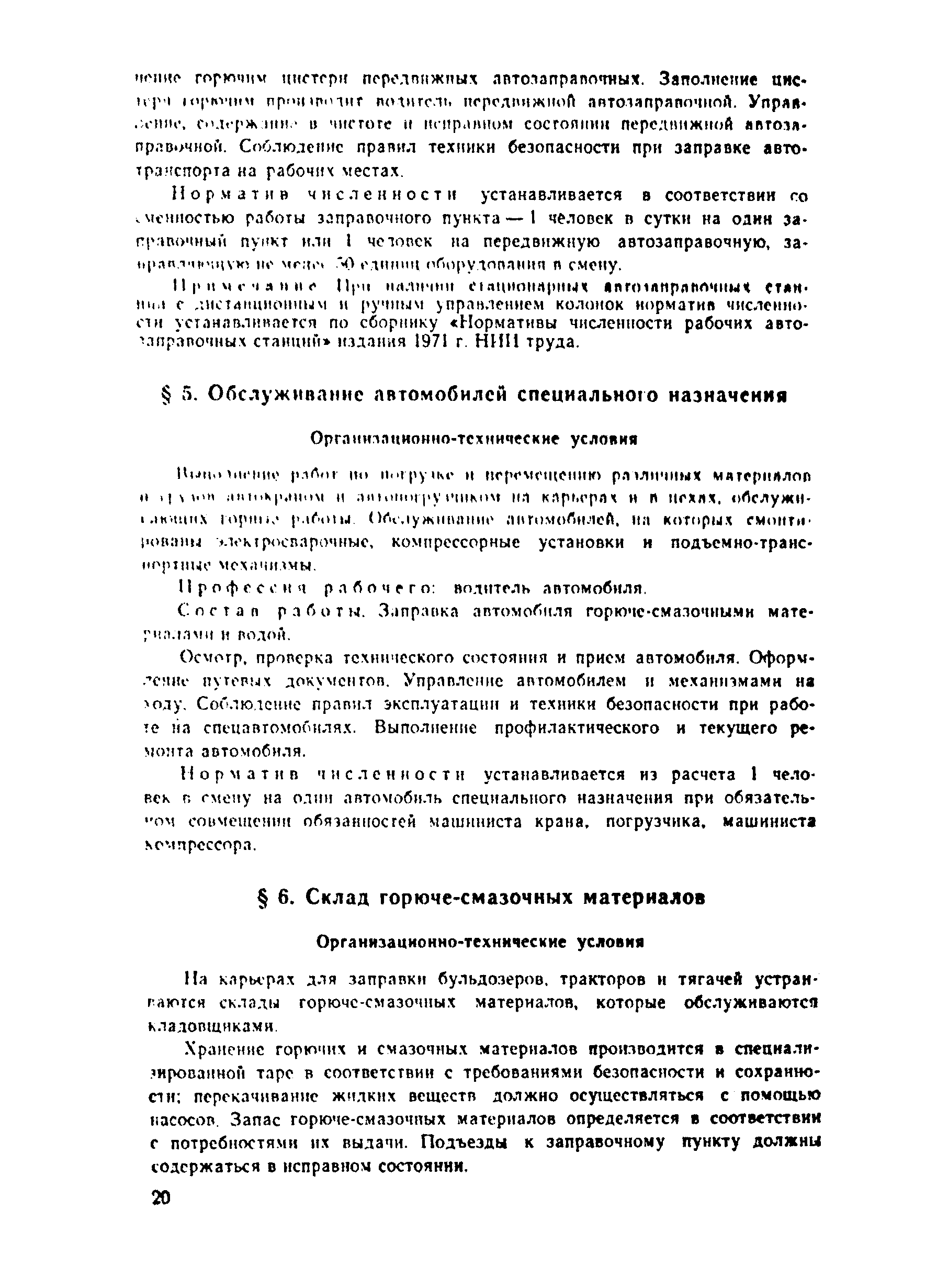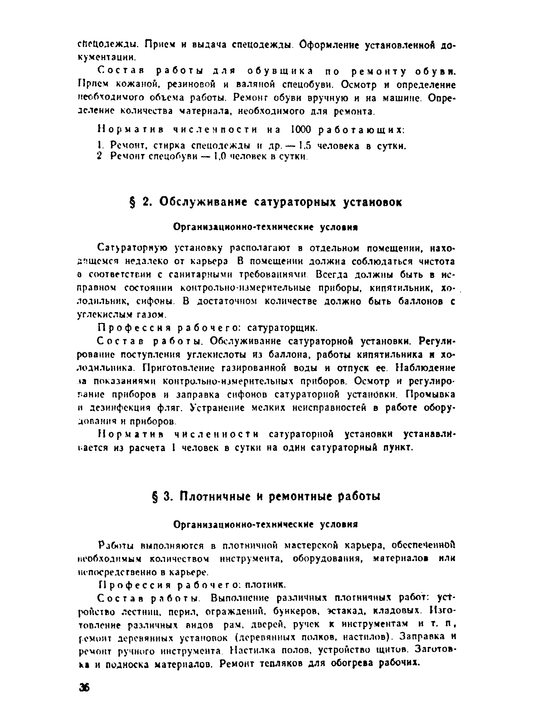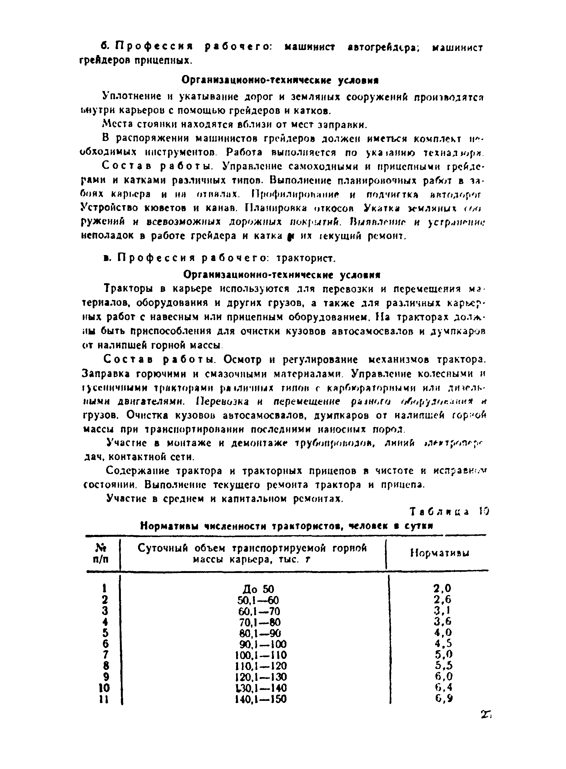 Нормативы численности вспомогательных рабочих на открытых горных работах предприятий горнодобывающей промышленности| Статус: | справочные материалы, мп, тпр | | Название рус.: | Нормативы численности вспомогательных рабочих на открытых горных работах предприятий горнодобывающей промышленности | | Дата добавления в базу: | 01.02.2020 | | Дата актуализации: | 01.01.2021 | | Область применения: | Нормативы численности рекомендованы для применения на открытых горных работах предприятий горнодобывающей промышленности. | | Оглавление: | Общая часть Организация труда Нормативная часть Глава I. Обслуживание электротехнического хозяйства горных участков Глава II. Управление машинами и механизмами Глава III. Работы, связанные с транспортными средствами Глава IV. Содержание подъездов, дорог для автосамосвалов и создание условий безопасной работы в карьере Глава V. Маркшейдерская служба Глава VI. Учет и контроль качества продукции Глава VII. Обслуживание и производство взрывных работ Глава VIII. Работы по хозяйственному обслуживанию карьеров и прочие работы | | Разработан: | ГИГХС ЦБПНП