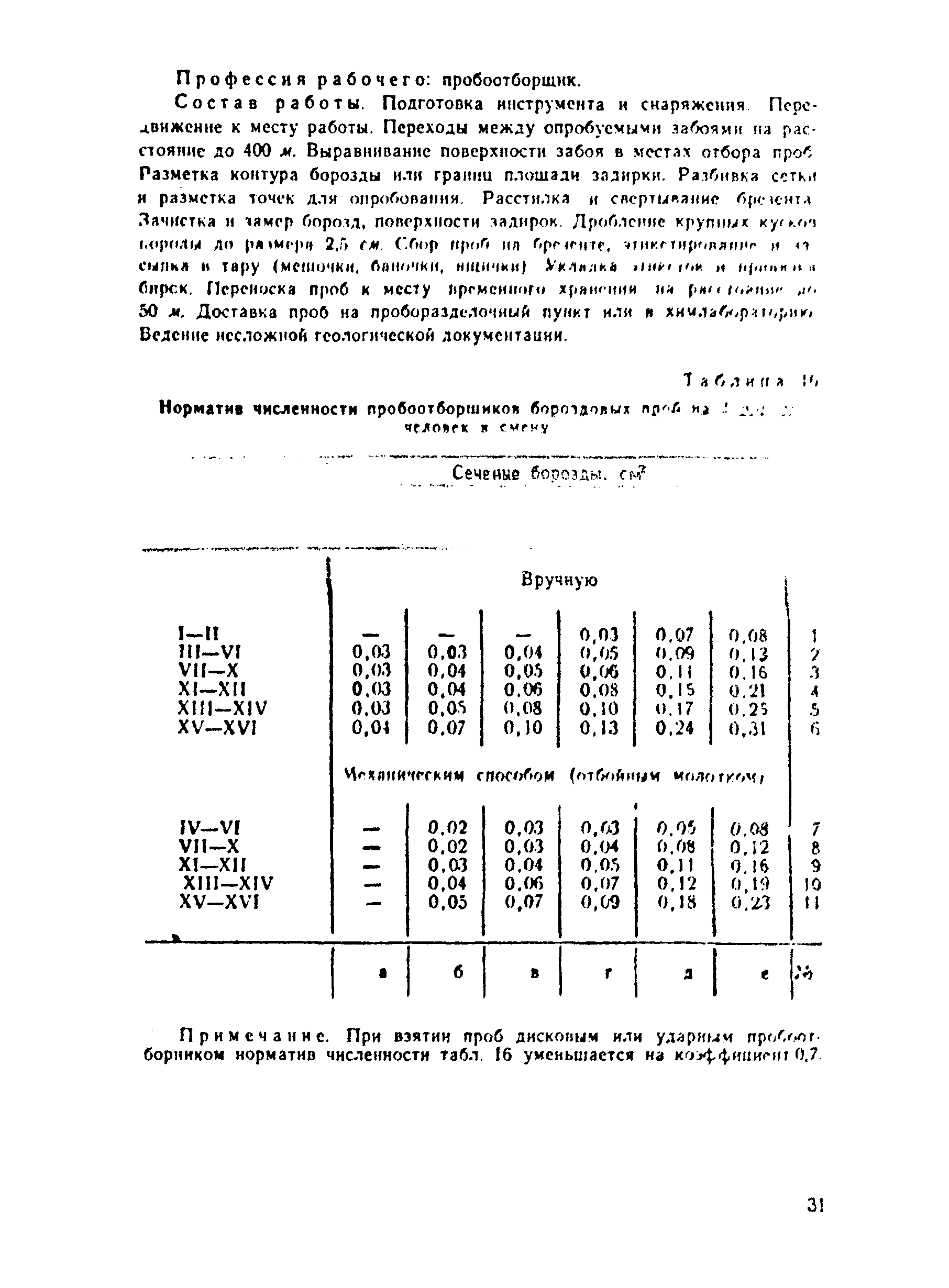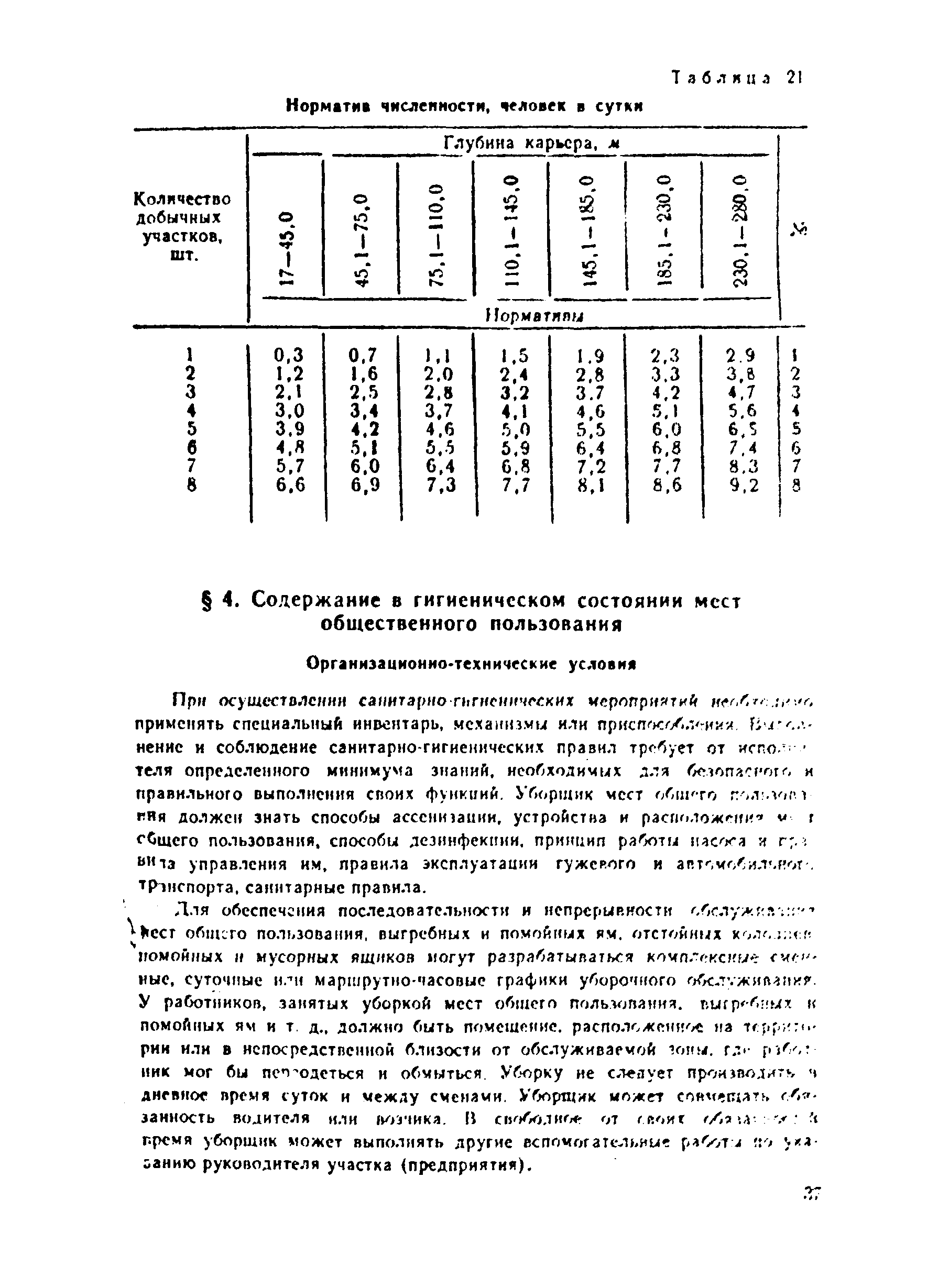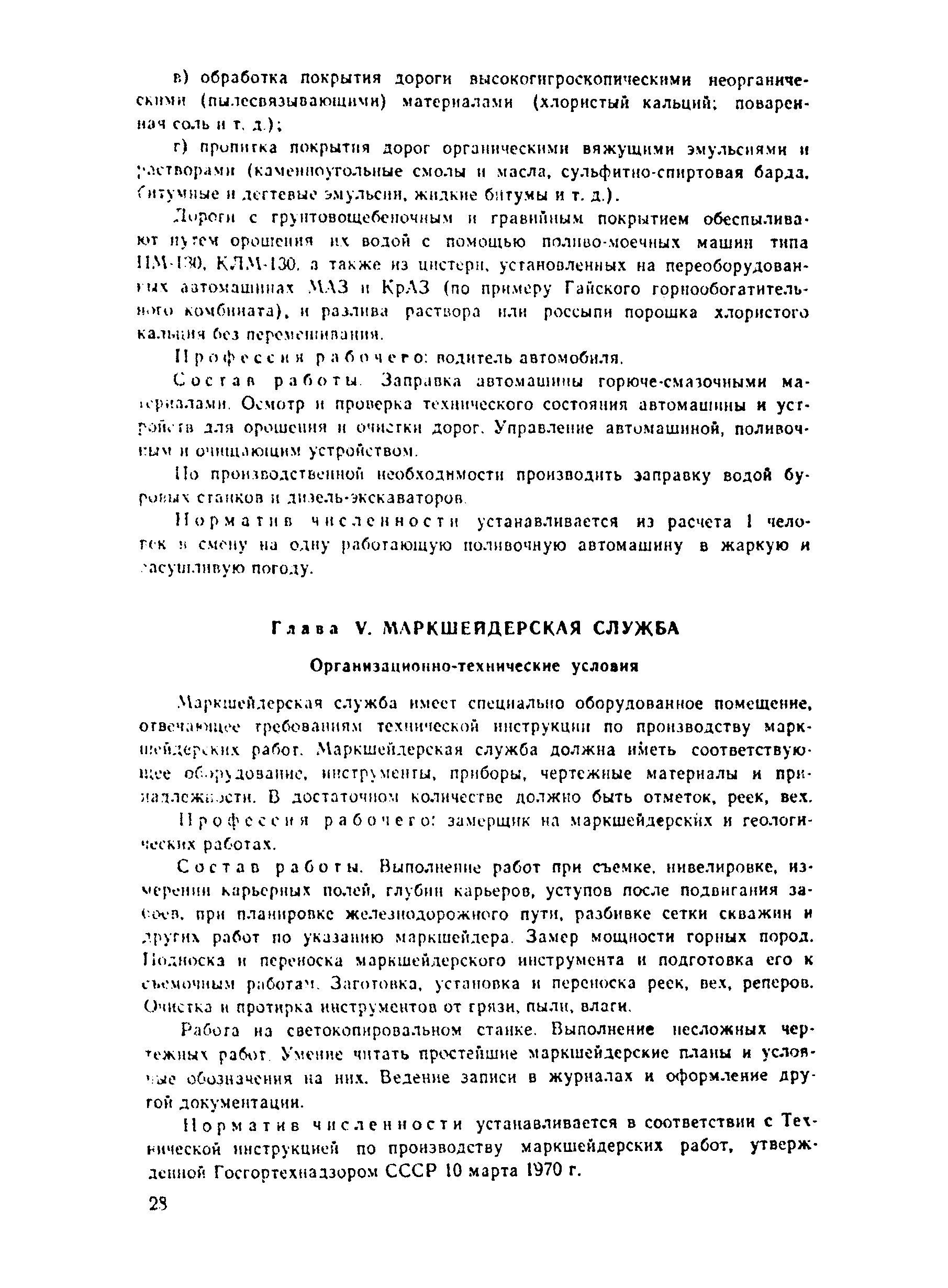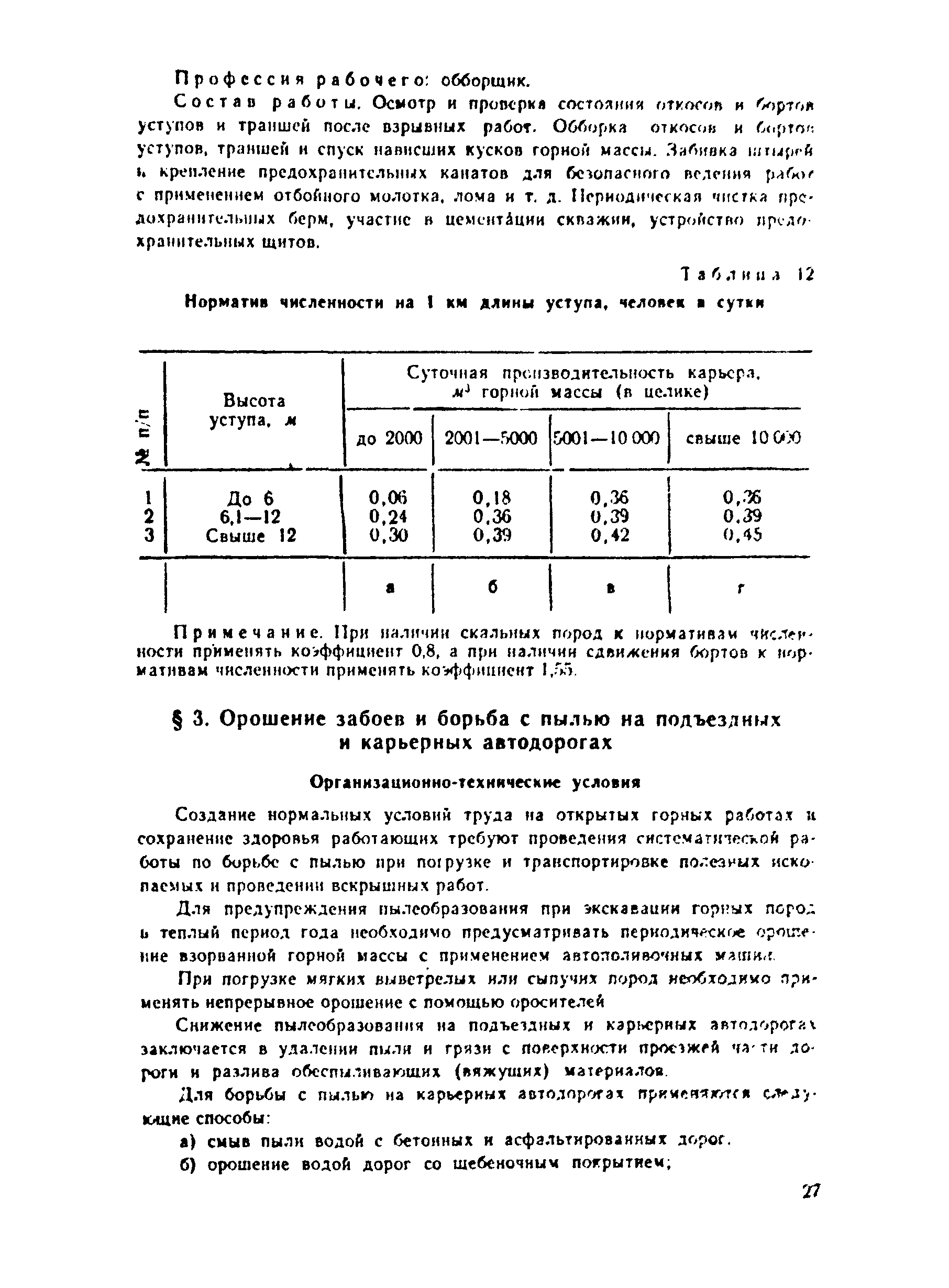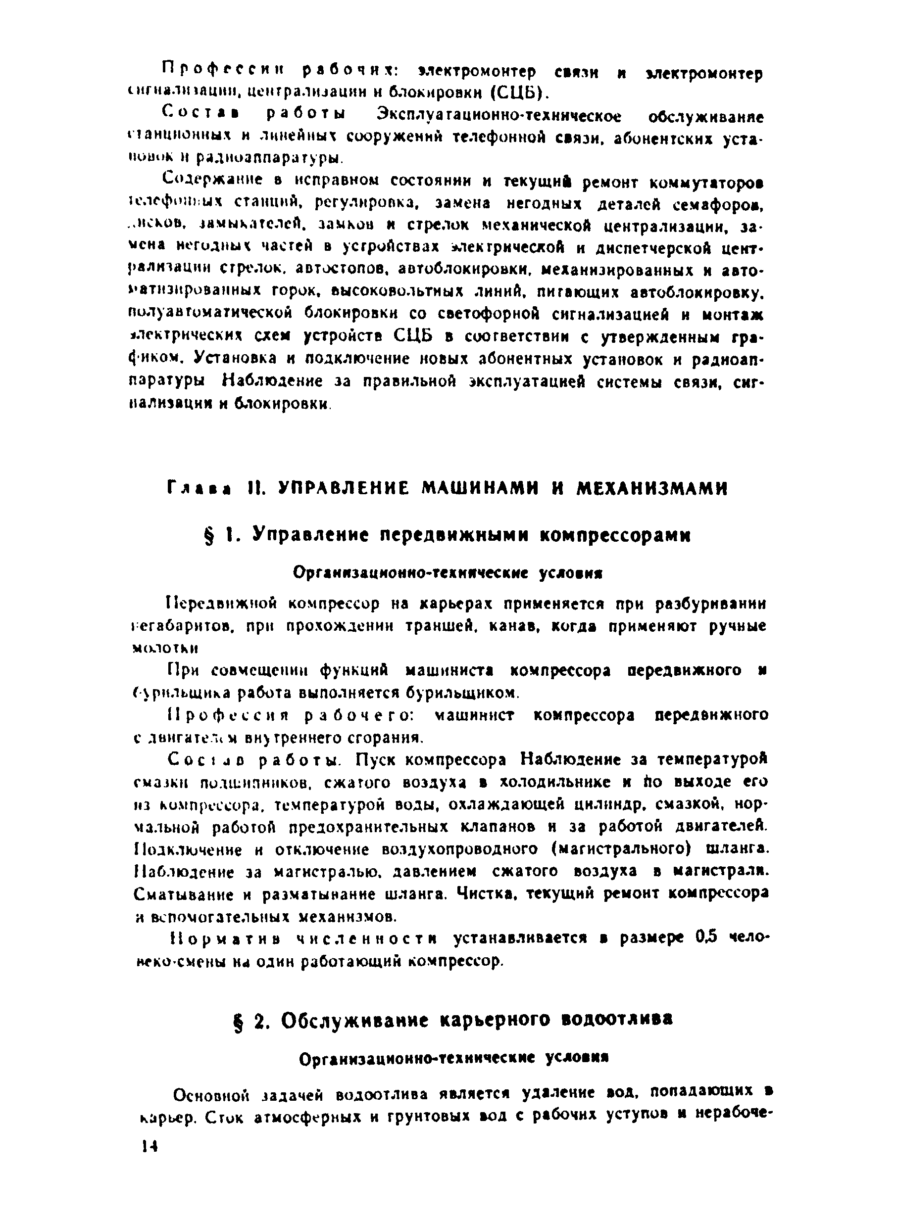 Нормативы численности вспомогательных рабочих на открытых горных работах предприятий горнодобывающей промышленности| Статус: | справочные материалы, мп, тпр | | Название рус.: | Нормативы численности вспомогательных рабочих на открытых горных работах предприятий горнодобывающей промышленности | | Дата добавления в базу: | 01.02.2020 | | Дата актуализации: | 01.01.2021 | | Область применения: | Нормативы численности рекомендованы для применения на открытых горных работах предприятий горнодобывающей промышленности. | | Оглавление: | Общая часть Организация труда Нормативная часть Глава I. Обслуживание электротехнического хозяйства горных участков Глава II. Управление машинами и механизмами Глава III. Работы, связанные с транспортными средствами Глава IV. Содержание подъездов, дорог для автосамосвалов и создание условий безопасной работы в карьере Глава V. Маркшейдерская служба Глава VI. Учет и контроль качества продукции Глава VII. Обслуживание и производство взрывных работ Глава VIII. Работы по хозяйственному обслуживанию карьеров и прочие работы | | Разработан: | ГИГХС ЦБПНП