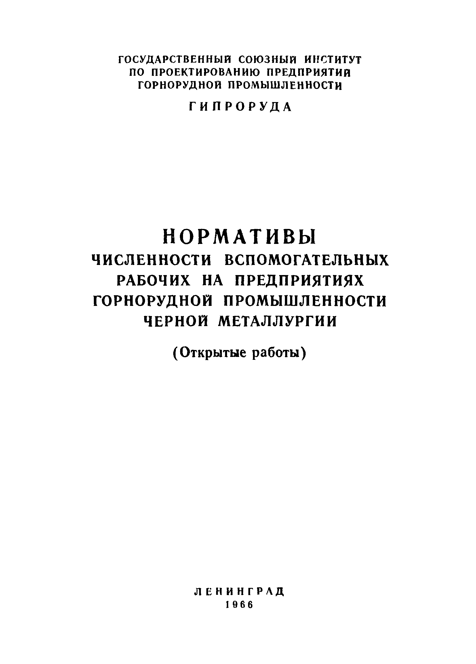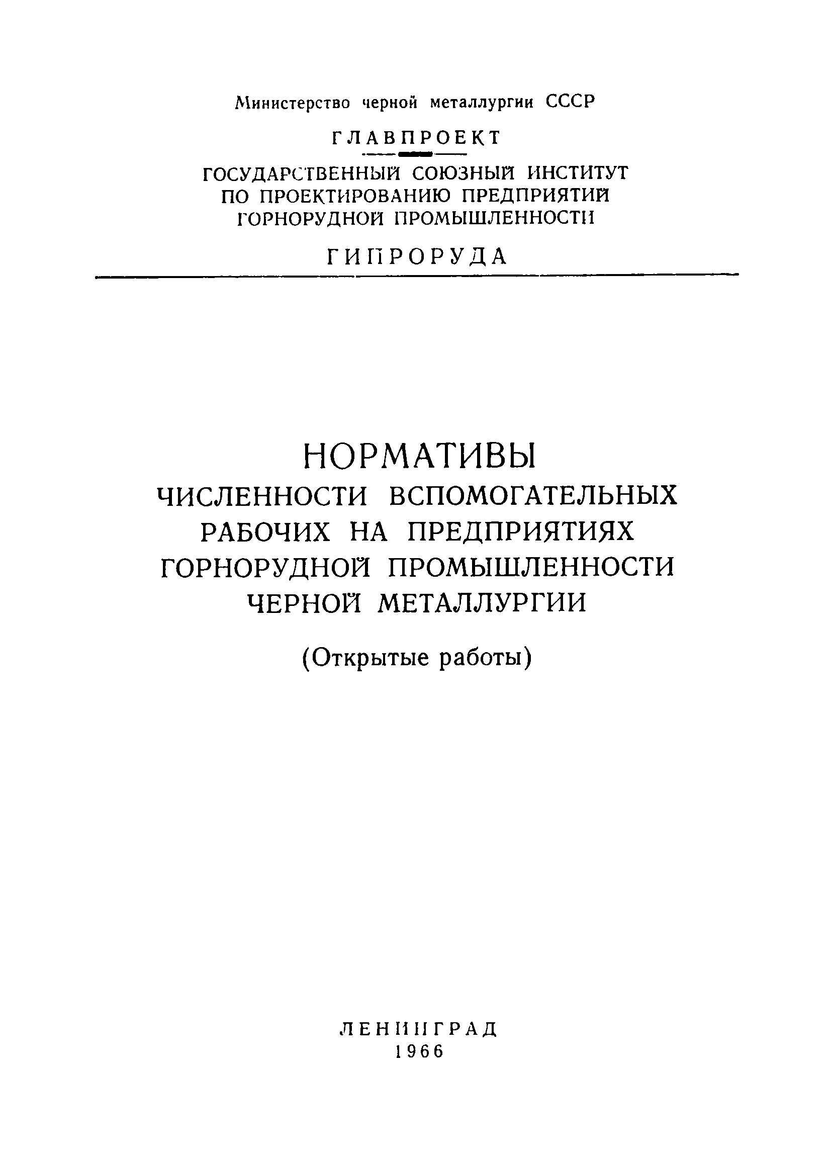 | Название рус.: | Нормативы численности вспомогательных рабочих на предприятиях горнорудной промышленности черной металлургии. (Открытые работы) |