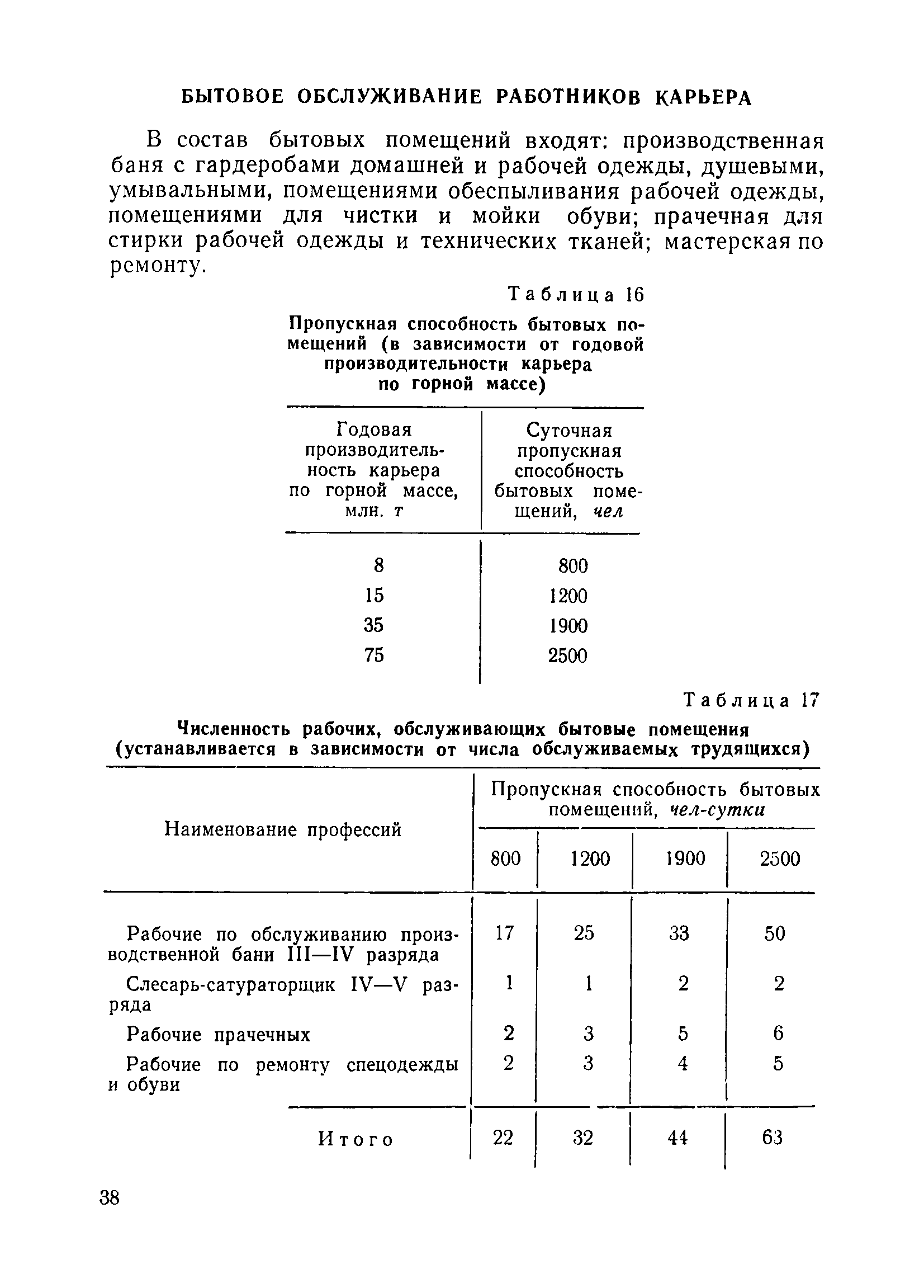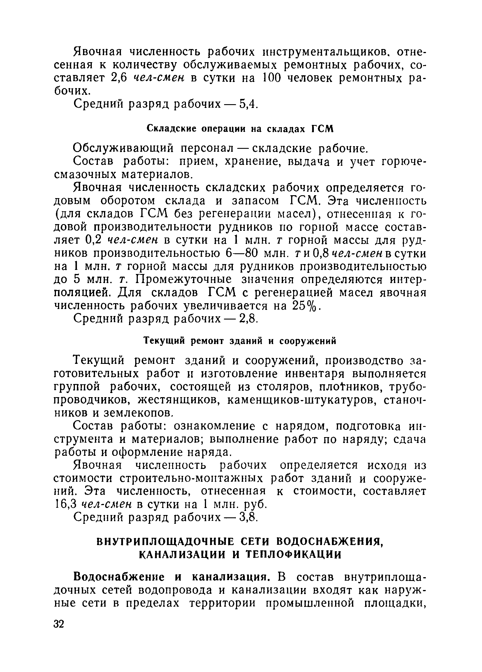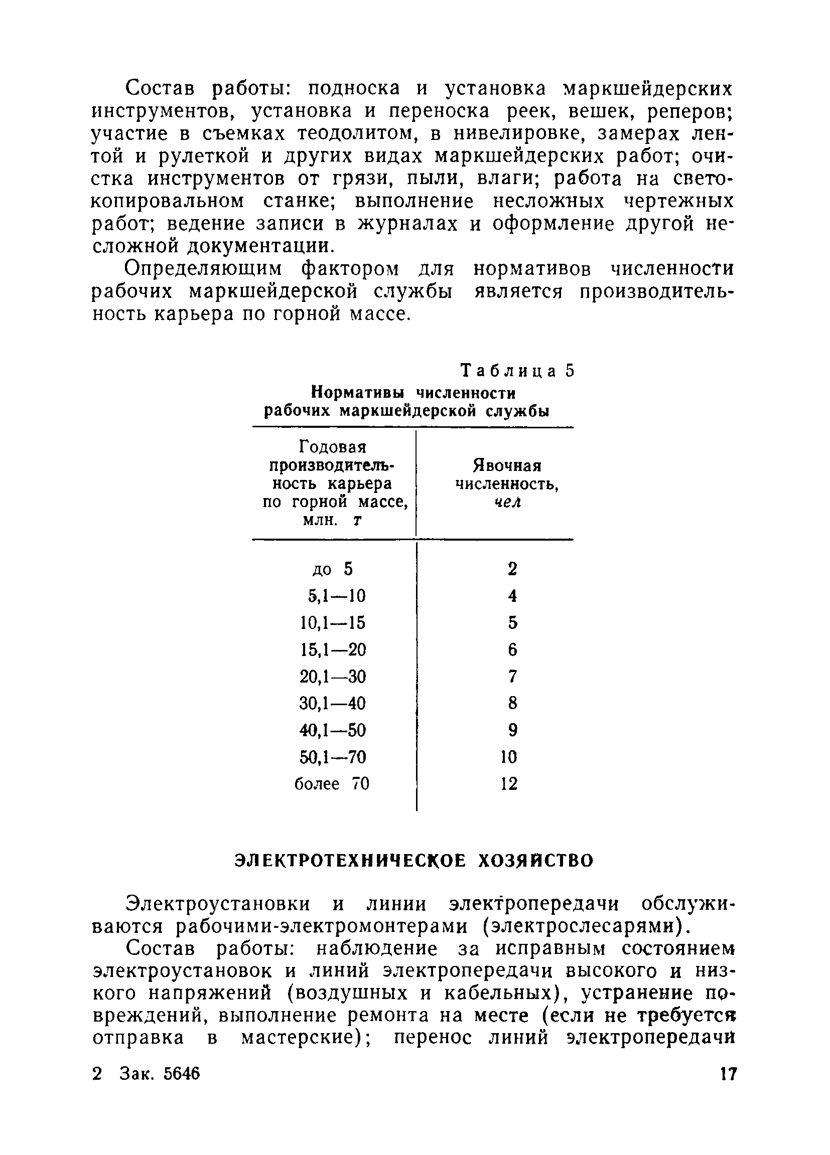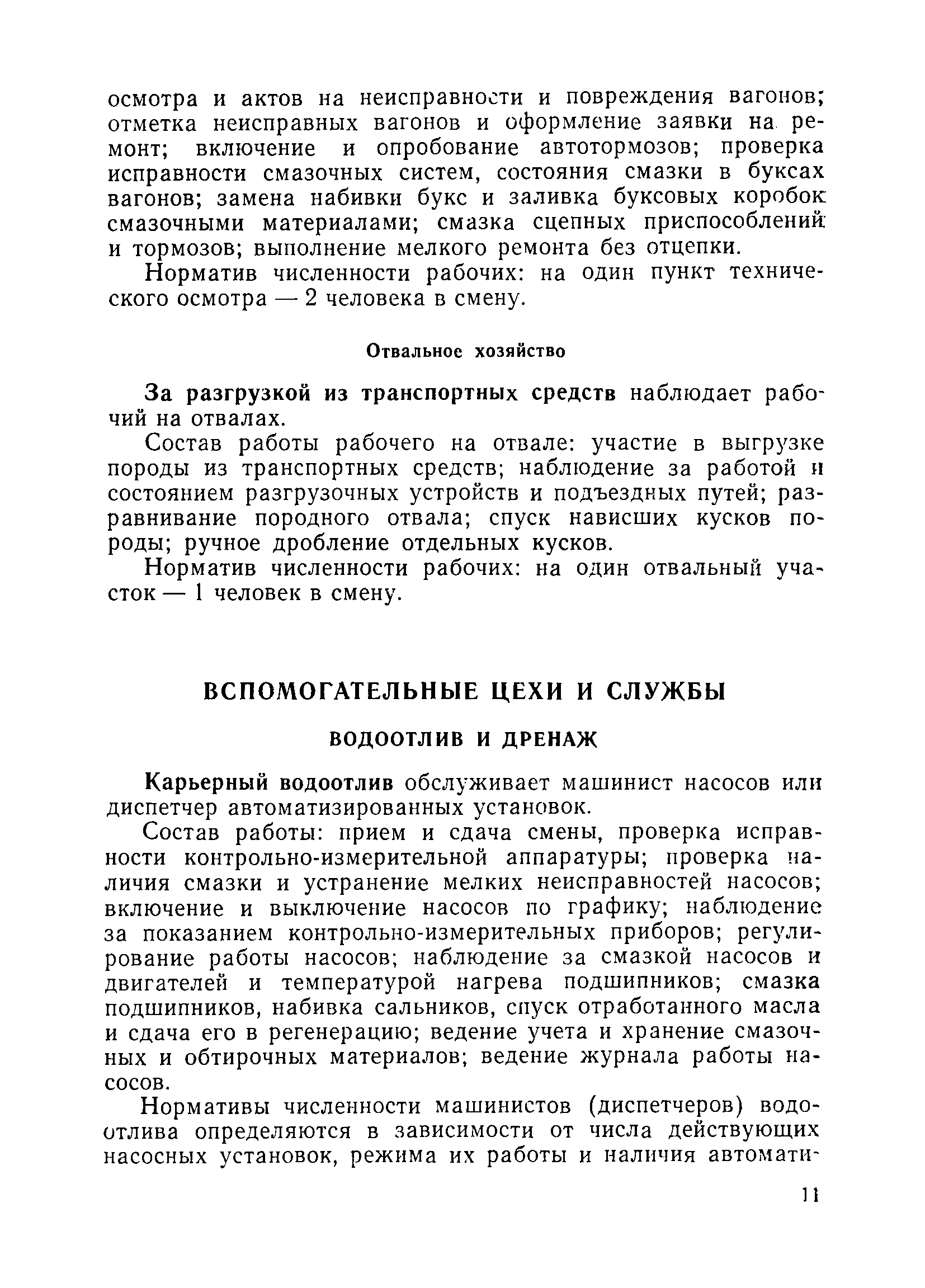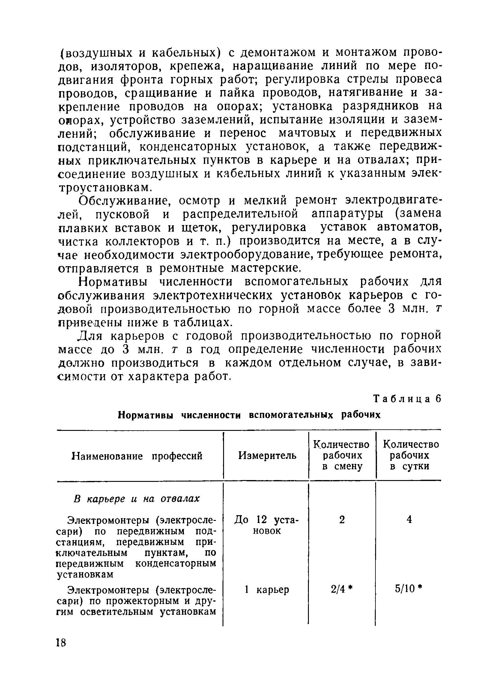 | Оглавление: | Общие положения Вспомогательные работы основного производства Горные работы Внутрирудничный транспорт и отвалообразование Вспомогательные цехи и службы Водоотлив и дренаж Геологическая и маркшейдерская службы Электротехническое хозяйство Связь и автоматика Ремонтное и складское хозяйство Внутриплощадочные сети водоснабжения, канализации и теплофикации Химическая лаборатория Бытовое обслуживание работников карьера Приложение Методические указания по определению переходных коэффициентов от явочной к списочной численности рабочих |