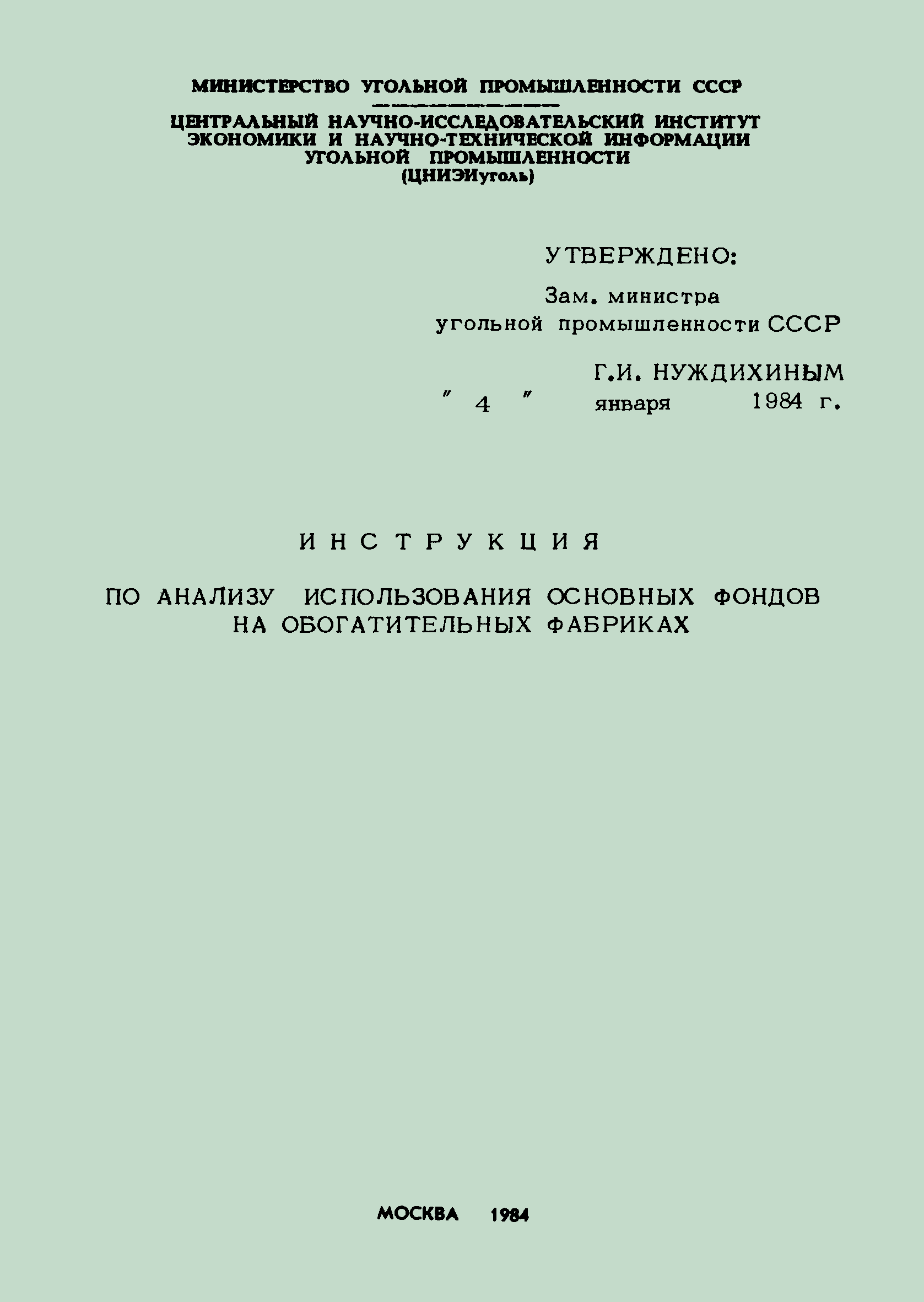 | Утверждён: | 04.01.1984 Министерство угольной промышленности СССР (USSR Ministry of the Coal Industry )