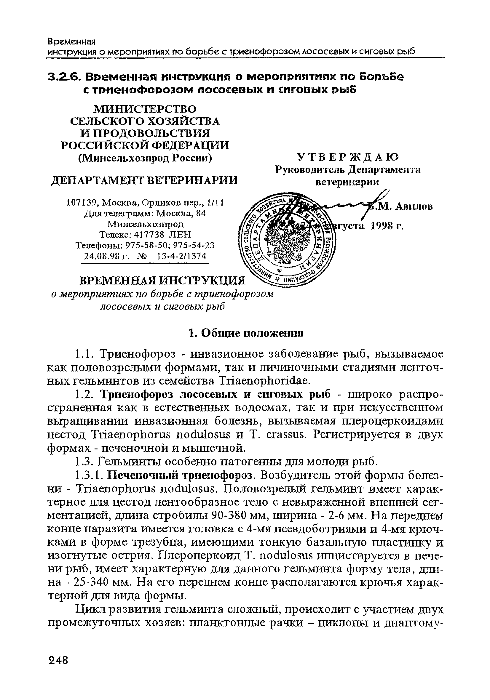 | Название рус.: | Временная инструкция о мероприятиях по борьбе с триенофорозом лососевых и сиговых рыб |