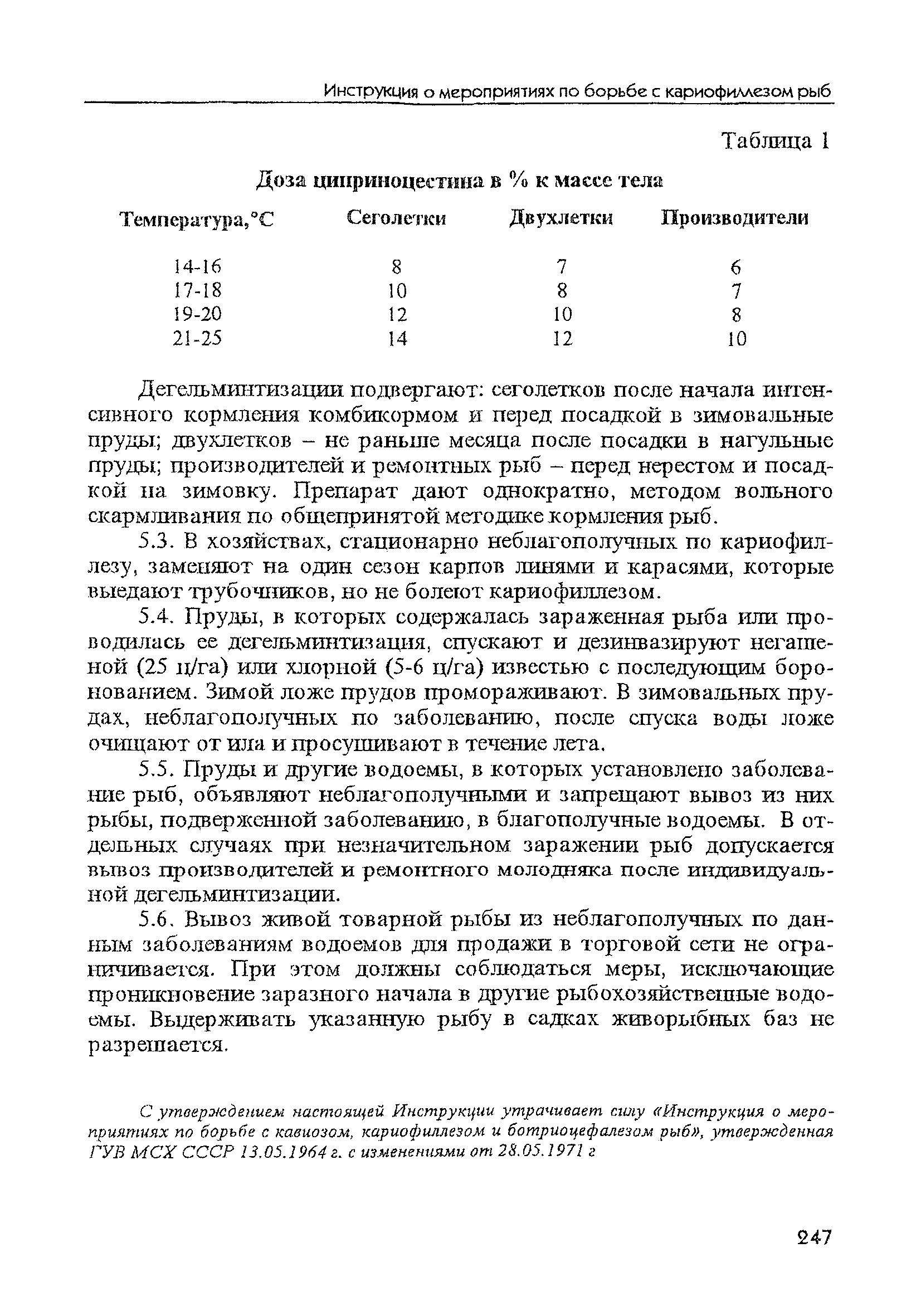 | Название рус.: | Инструкция о мероприятиях по борьбе с кариофиллезом рыб |