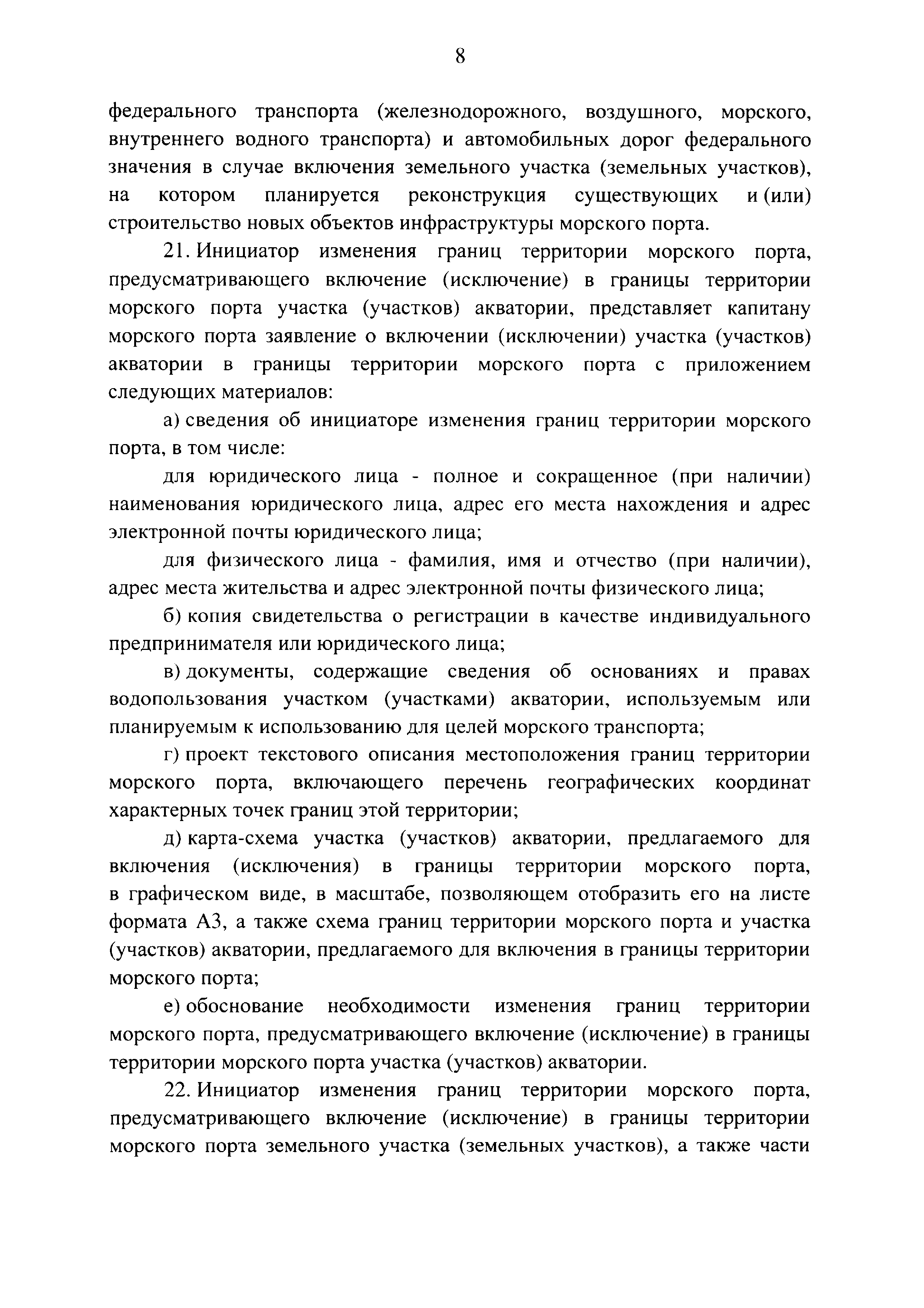 Скачать Правила установления или изменения границ территории морского порта, а также расширения территории морского портаДата актуализации: 01.01.2021