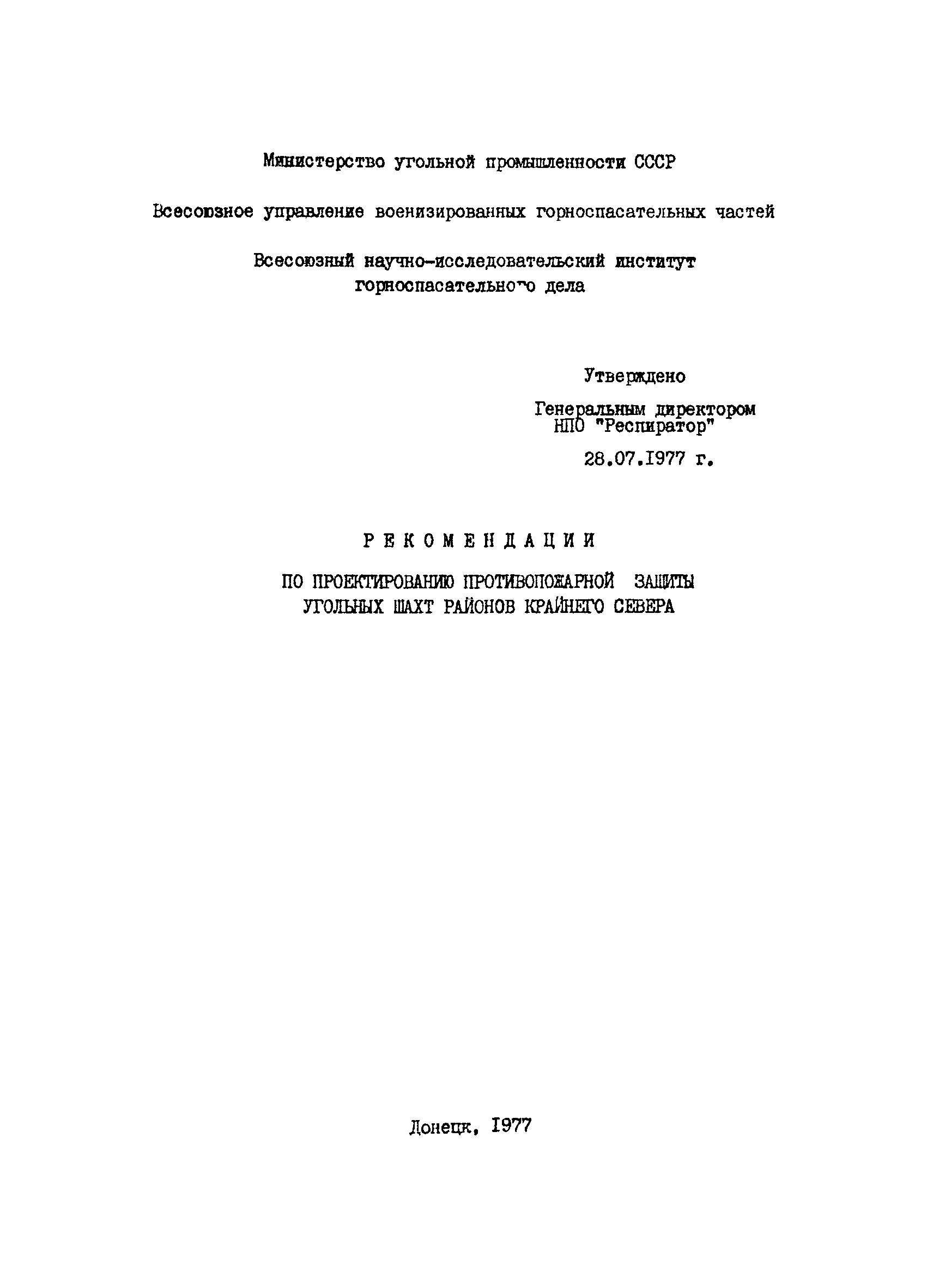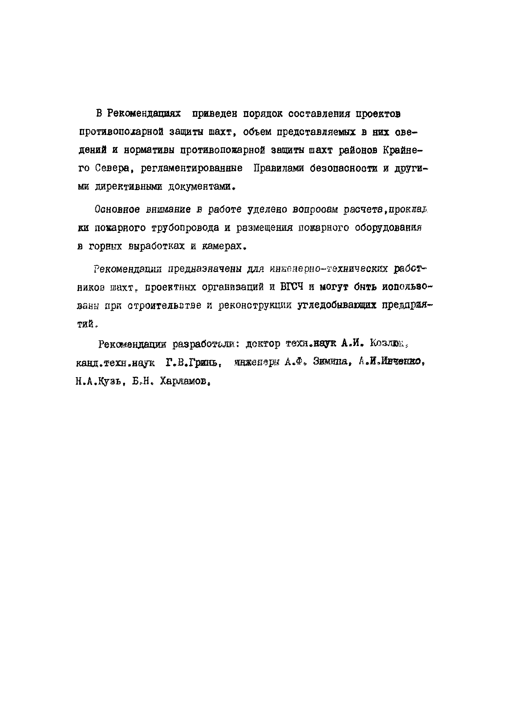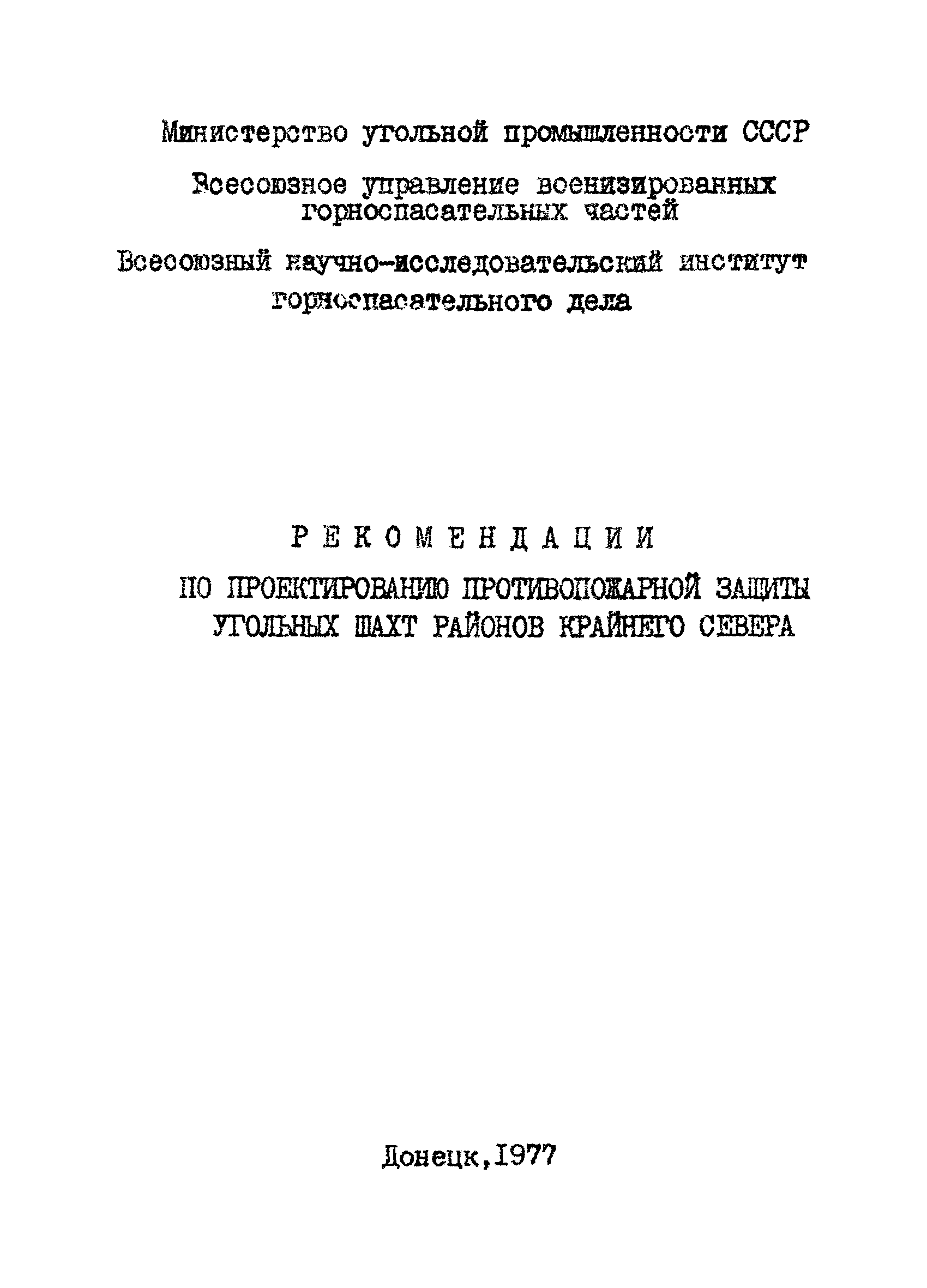 | Название рус.: | Рекомендации по проектированию противопожарной защиты угольных шахт районов Крайнего Севера |