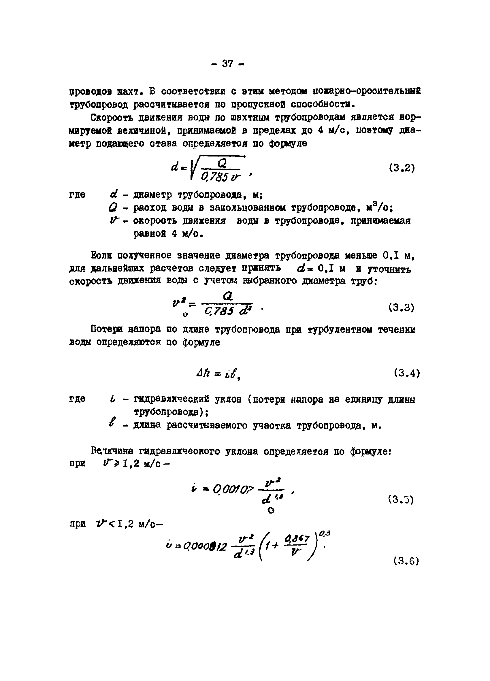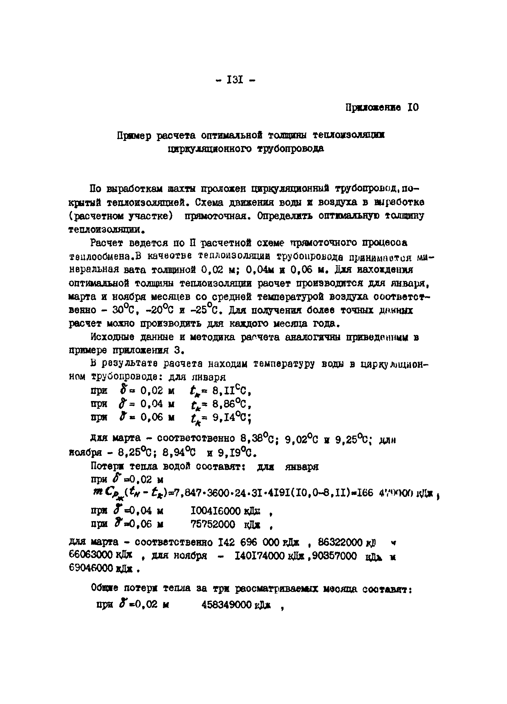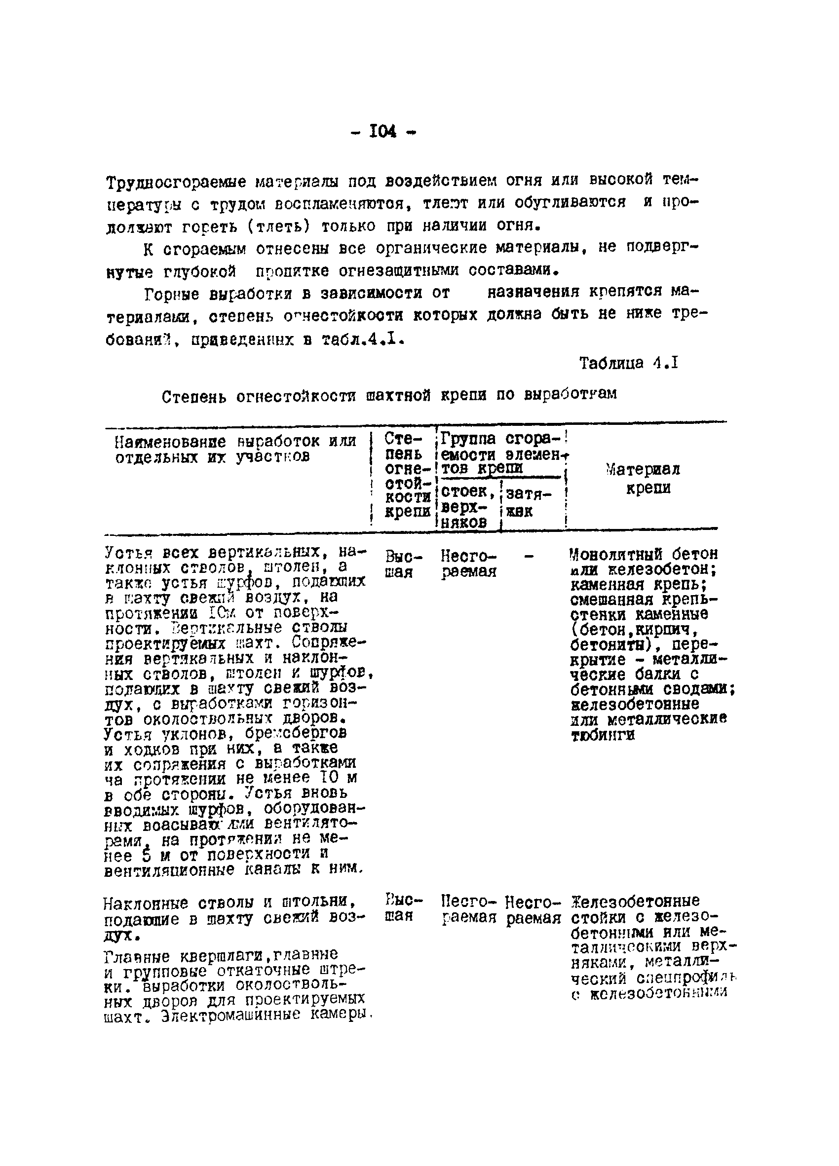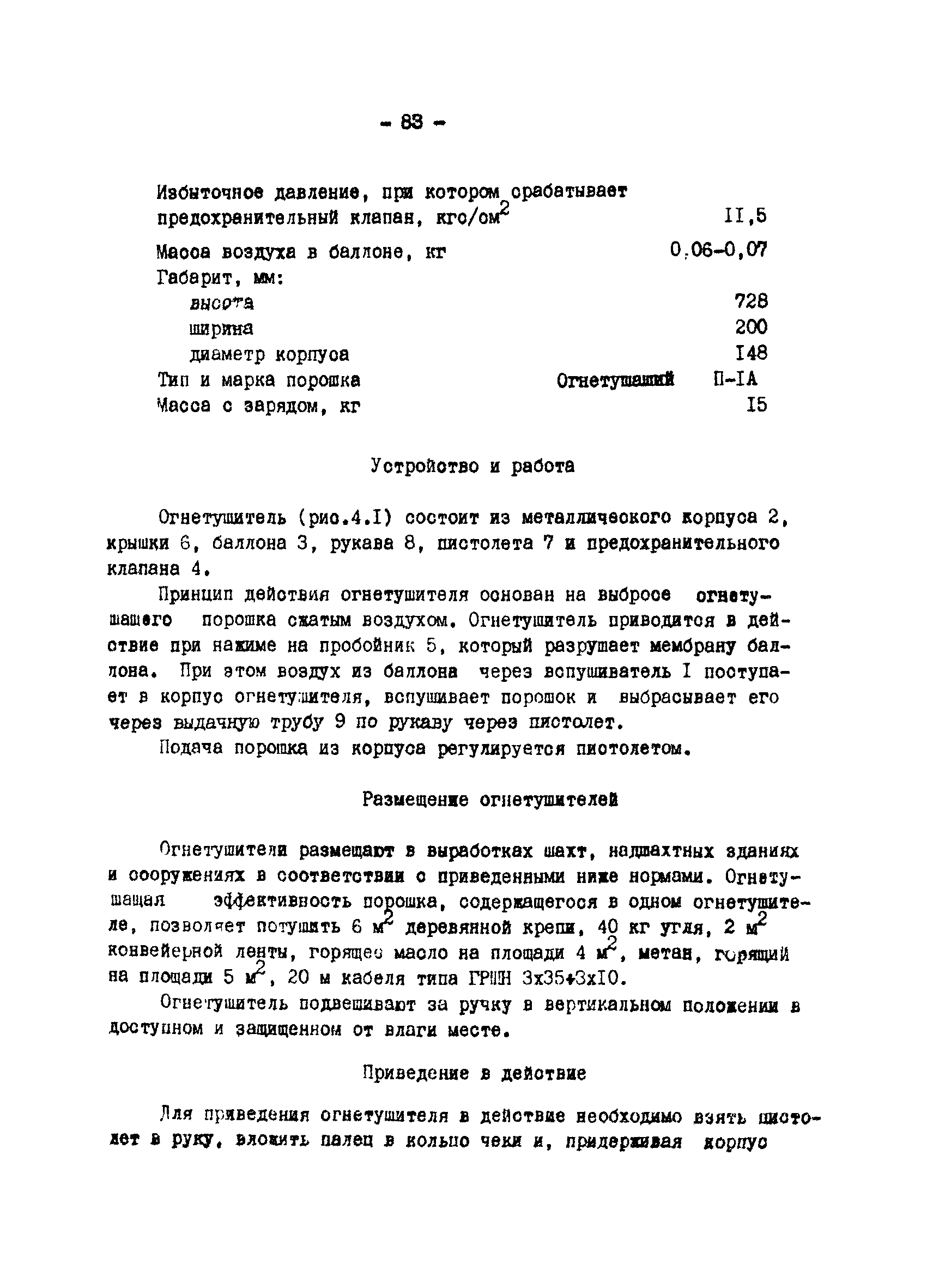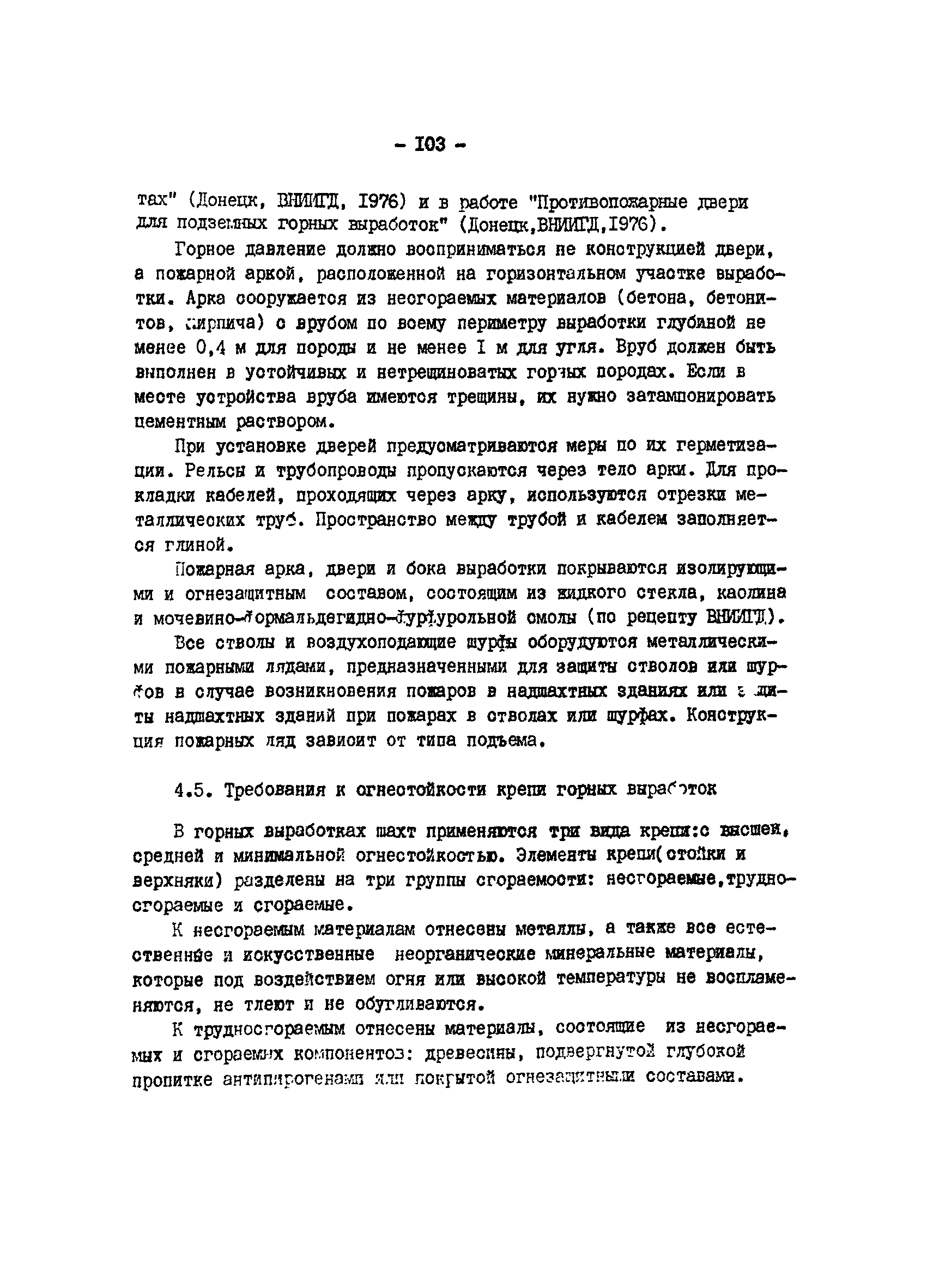 | Оглавление: | 1 Проектирование противопожарной защиты 1.1 Общие положения 1.2 Основные принципы противопожарной защиты шахт 1.3 Содержание проекта противопожарной защиты шахт 1.4 Периодичность и объем проверок состояния противопожарной защиты шахт 2 Противопожарная защита промплощадки шахты и шахтных стволов 2.1 Пожарный водоем и насосная станция 2.2 Пожарный трубопровод на поверхности шахты 3 Подземное пожарное водоснабжение 3.1 Назначение пожарно-оросительного трубопровода 3.2 Требования к прокладке пожарно-оросительного трубопровода 3.3 Схемы прокладки и расчета пожарно-оросительного трубопровода. Общие положения 3.4 Оборудование сети пожарно-оросительного трубопровода 3.4.1 Пожарные краны и задвижка 3.4.2 Повысительные нососные станции, гидроредукторы 3.5 Тепловая изоляция пожарно-оросительного трубопровода 3.6 Электрический обогрев трубопровода 3.7 Методика гидравлического расчета пожарно-оросительного водоснаюжения шахт 3.8 Методика теплотехнических расчетов основных параметров пожарно-оросительного водоснабжения шахт районов Крайнего Севера 3.8.1 Расчет тепловых параметров одиночных шахтных трубопроводов при прямоточном и противоточмом процессах теплообмена 3.8.2 Расчет тепловых параметров шахтных трубопроводов при раздельной их прокладке в горной выработке 3.8.3 Расчет тепловых параметров трубопроводов при совместной их прокладке с общей теплоизоляцией 3.8.4 Расчет тепловых параметров трубопровода при использовании электрокабельного подогрева 3.8.5 Расчет предельно допустимой длины сухотрубных ставов 3.8.6 Расчет допустимого времени отключения трубопровода, заполненного водой 3.8.7 Расчет мощности электрокабельного подогрева сухотрубных ставов 3.8.8 Определение оптимальной толщины теплоизоляции циркуляционного трубопровода 4 Противопожарная защита горных выработок и камер 4.1 Общие положения 4.2 Первичные средства пожаротушения и нормативы их размещения 4.2.1 Огнетушитель ручной порошковый ОП-8у 4.2.2 Огнетушитель порошковый ОП-8Б 4.2.3 Огнетушитель порошковый ОП-2Б 4.2.4 Нормативы размещения первичных средств пожаротушения в горных выработках и камерах 4.3 Автоматические установки порошкового пожаротушения 4.3.1 Автоматическая установка порошкового пожаротушения "Буран" 4.3.2 Установка порошкового пожаротушения "Север" 4.4 Пожарные двери 4.5 Требования к огнестойкости крепи горных выработок 4.6 Склады пожарного оборудования 4.6.1 Установки порошковые УП 4.6.2 Устройство для создания порошковой струи "Вихрь" Приложение 1. Титульный лист проекта противопожарной защиты Приложение 2. Пример гидравлического расчета пожарно-оросительного водоснабжения шахт Приложение 3. Пример расчета тепловых параметров одиночных шахтных трубопроводов Приложение 4. Пример расчета тепловых параметров трубопроводов при раздельной прокладке в горной выработке Приложение 5. Пример расчета тепловых параметров труобпроводов при совместной их прокладке в обшей теплоизоляции Приложение 6. Пример расчета тепловых параметров трубопровода при прокладке в нем греющего кабеля Приложение 7. Пример расчета тепловых параметров трубопровода при наложении греющего кабеля на его поверхности (в общей теплоизоляции) Приложение 8. Пример расчета допустимой длины сухотрубных ставов Приложение 9. Пример расчета времени остывания воды в трубопроводе при отсутстви