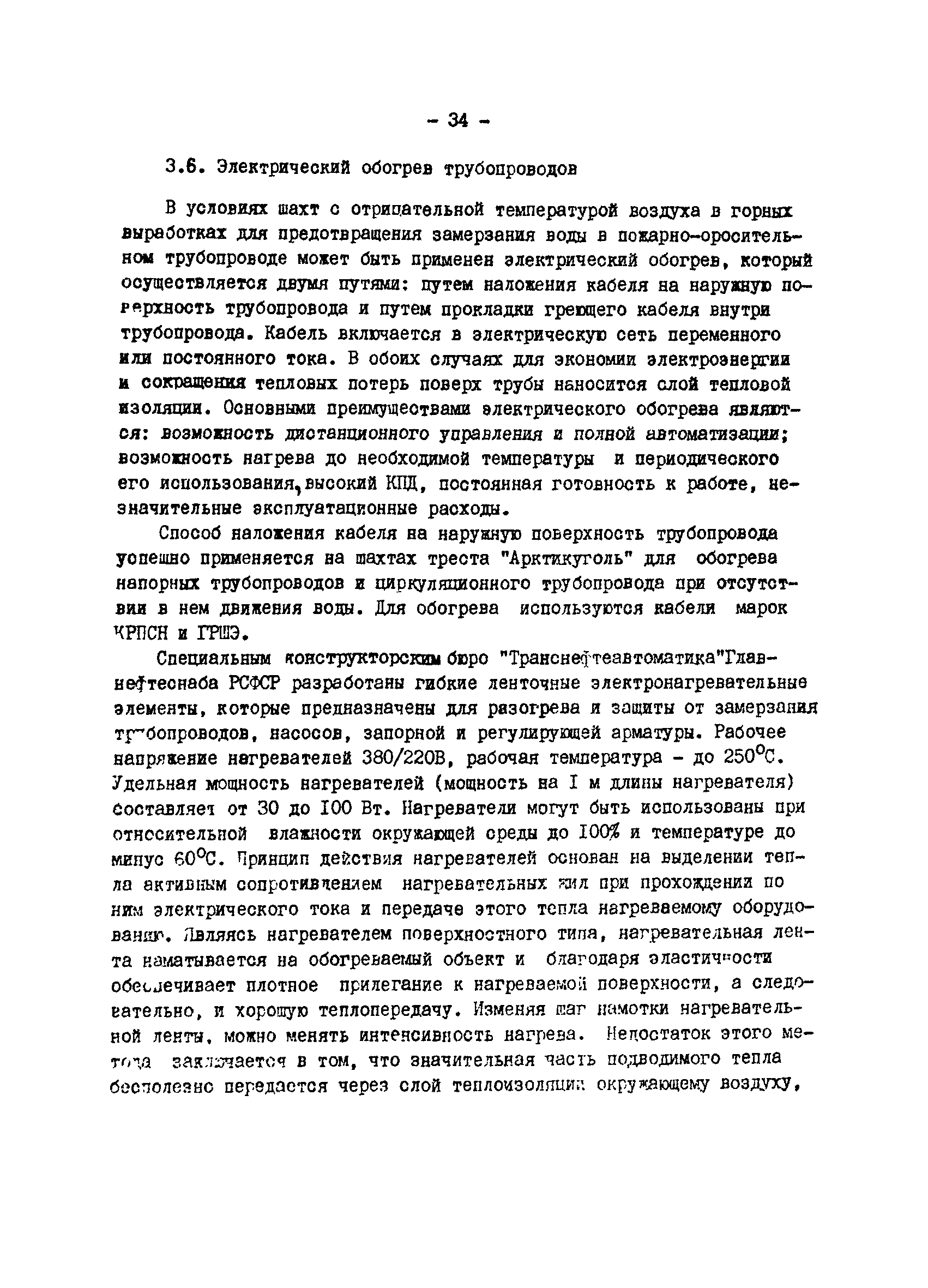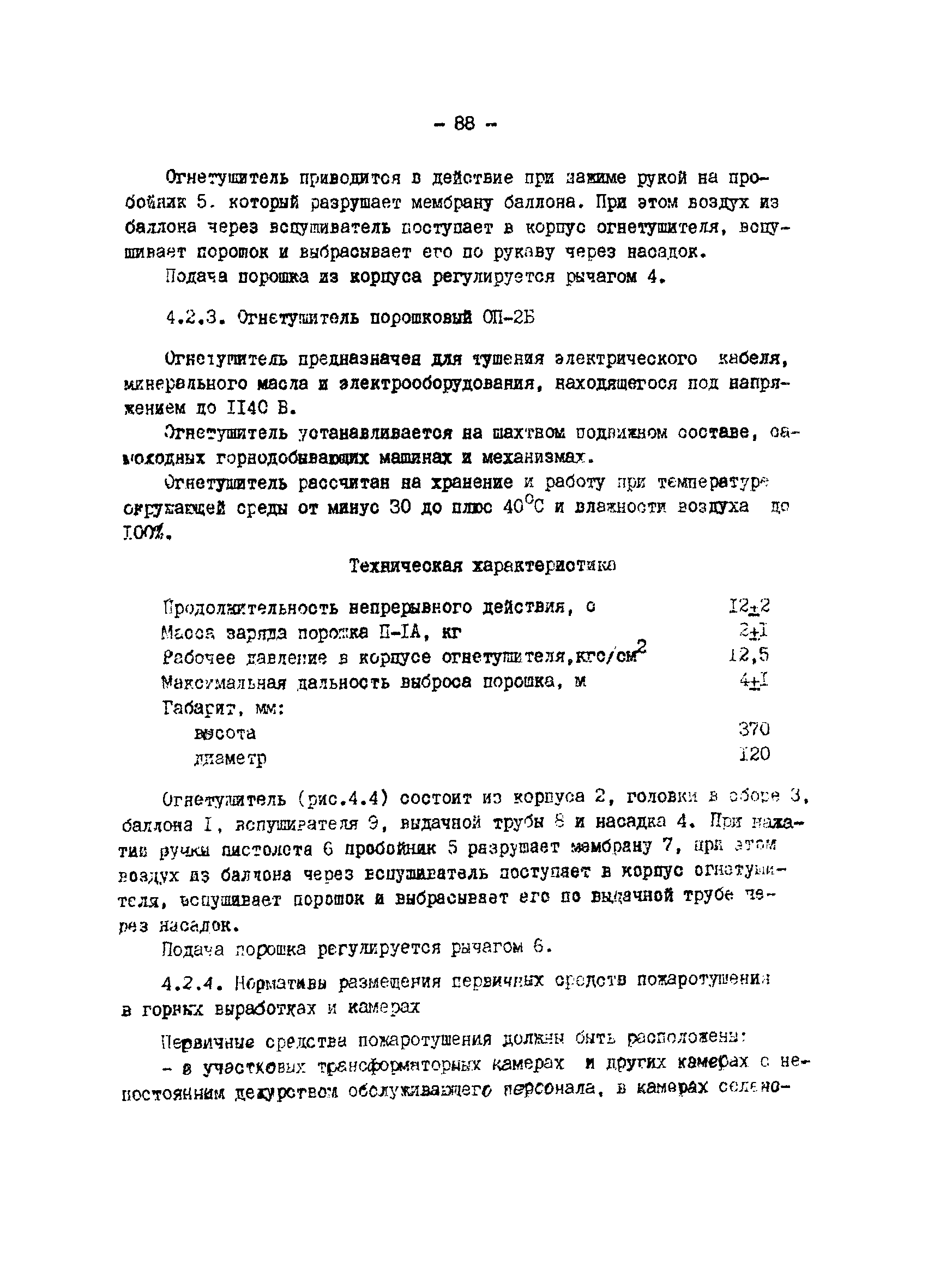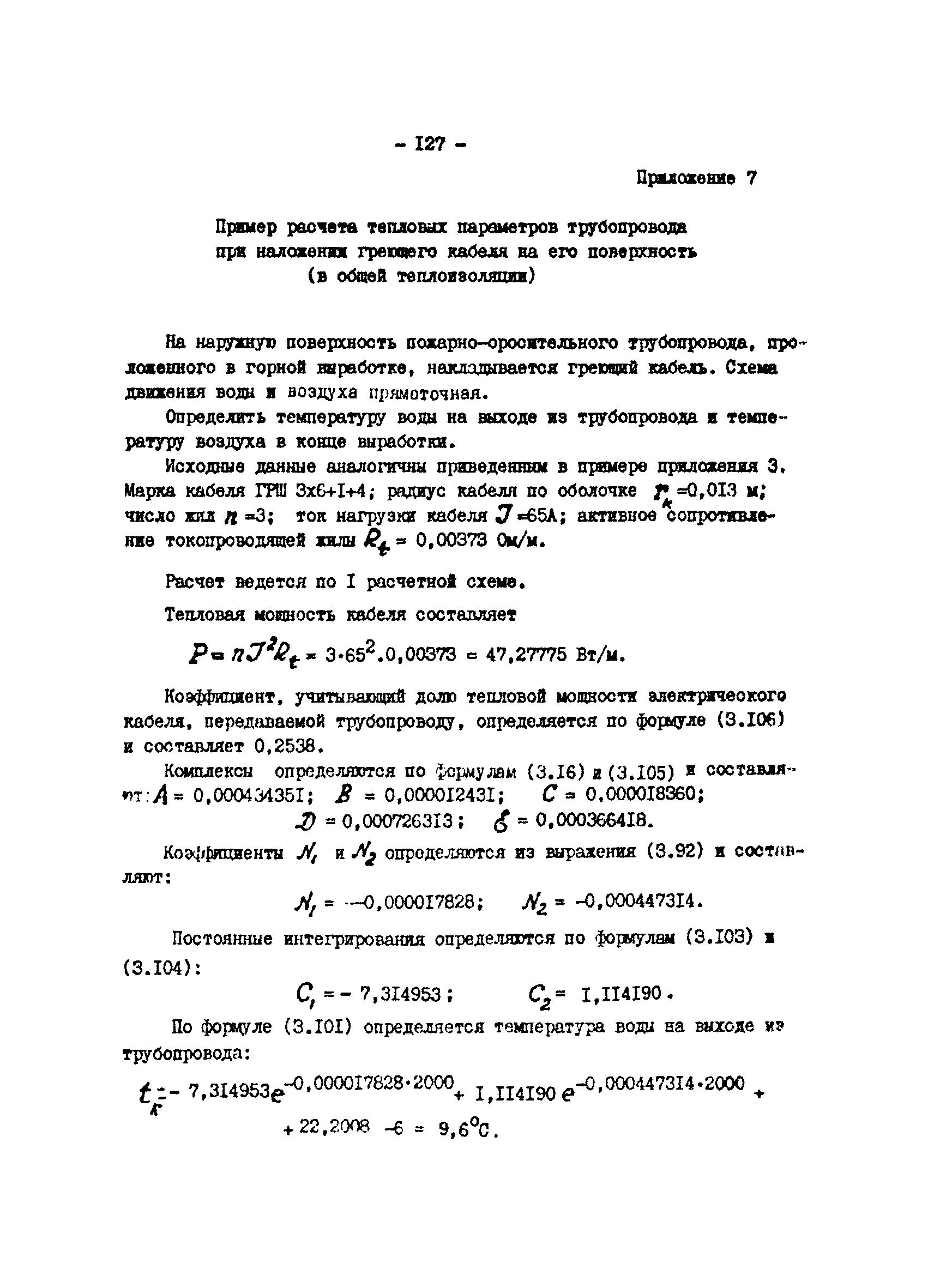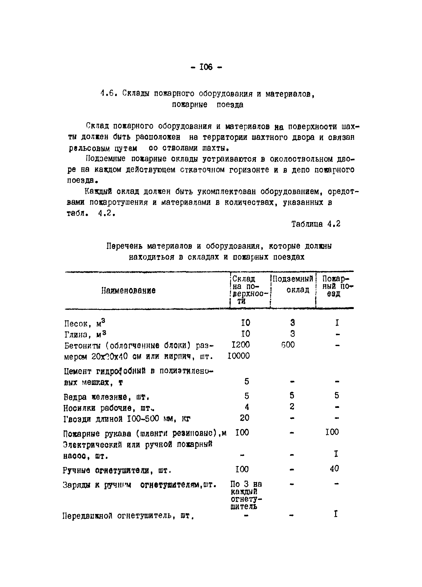 | Оглавление: | 1 Проектирование противопожарной защиты 1.1 Общие положения 1.2 Основные принципы противопожарной защиты шахт 1.3 Содержание проекта противопожарной защиты шахт 1.4 Периодичность и объем проверок состояния противопожарной защиты шахт 2 Противопожарная защита промплощадки шахты и шахтных стволов 2.1 Пожарный водоем и насосная станция 2.2 Пожарный трубопровод на поверхности шахты 3 Подземное пожарное водоснабжение 3.1 Назначение пожарно-оросительного трубопровода 3.2 Требования к прокладке пожарно-оросительного трубопровода 3.3 Схемы прокладки и расчета пожарно-оросительного трубопровода. Общие положения 3.4 Оборудование сети пожарно-оросительного трубопровода 3.4.1 Пожарные краны и задвижка 3.4.2 Повысительные нососные станции, гидроредукторы 3.5 Тепловая изоляция пожарно-оросительного трубопровода 3.6 Электрический обогрев трубопровода 3.7 Методика гидравлического расчета пожарно-оросительного водоснаюжения шахт 3.8 Методика теплотехнических расчетов основных параметров пожарно-оросительного водоснабжения шахт районов Крайнего Севера 3.8.1 Расчет тепловых параметров одиночных шахтных трубопроводов при прямоточном и противоточмом процессах теплообмена 3.8.2 Расчет тепловых параметров шахтных трубопроводов при раздельной их прокладке в горной выработке 3.8.3 Расчет тепловых параметров трубопроводов при совместной их прокладке с общей теплоизоляцией 3.8.4 Расчет тепловых параметров трубопровода при использовании электрокабельного подогрева 3.8.5 Расчет предельно допустимой длины сухотрубных ставов 3.8.6 Расчет допустимого времени отключения трубопровода, заполненного водой 3.8.7 Расчет мощности электрокабельного подогрева сухотрубных ставов 3.8.8 Определение оптимальной толщины теплоизоляции циркуляционного трубопровода 4 Противопожарная защита горных выработок и камер 4.1 Общие положения 4.2 Первичные средства пожаротушения и нормативы их размещения 4.2.1 Огнетушитель ручной порошковый ОП-8у 4.2.2 Огнетушитель порошковый ОП-8Б 4.2.3 Огнетушитель порошковый ОП-2Б 4.2.4 Нормативы размещения первичных средств пожаротушения в горных выработках и камерах 4.3 Автоматические установки порошкового пожаротушения 4.3.1 Автоматическая установка порошкового пожаротушения "Буран" 4.3.2 Установка порошкового пожаротушения "Север" 4.4 Пожарные двери 4.5 Требования к огнестойкости крепи горных выработок 4.6 Склады пожарного оборудования 4.6.1 Установки порошковые УП 4.6.2 Устройство для создания порошковой струи "Вихрь" Приложение 1. Титульный лист проекта противопожарной защиты Приложение 2. Пример гидравлического расчета пожарно-оросительного водоснабжения шахт Приложение 3. Пример расчета тепловых параметров одиночных шахтных трубопроводов Приложение 4. Пример расчета тепловых параметров трубопроводов при раздельной прокладке в горной выработке Приложение 5. Пример расчета тепловых параметров труобпроводов при совместной их прокладке в обшей теплоизоляции Приложение 6. Пример расчета тепловых параметров трубопровода при прокладке в нем греющего кабеля Приложение 7. Пример расчета тепловых параметров трубопровода при наложении греющего кабеля на его поверхности (в общей теплоизоляции) Приложение 8. Пример расчета допустимой длины сухотрубных ставов Приложение 9. Пример расчета времени остывания воды в трубопроводе при отсутстви