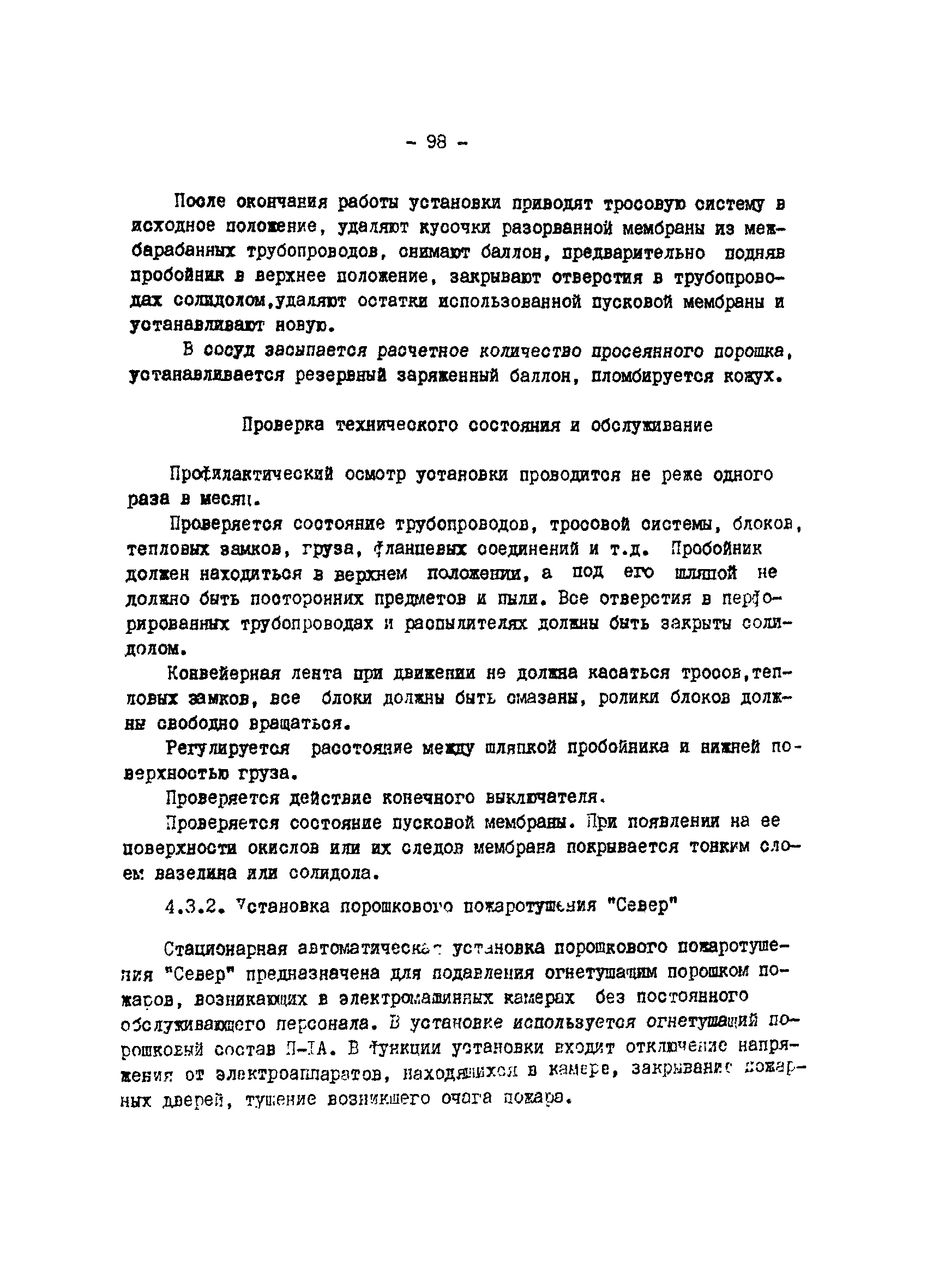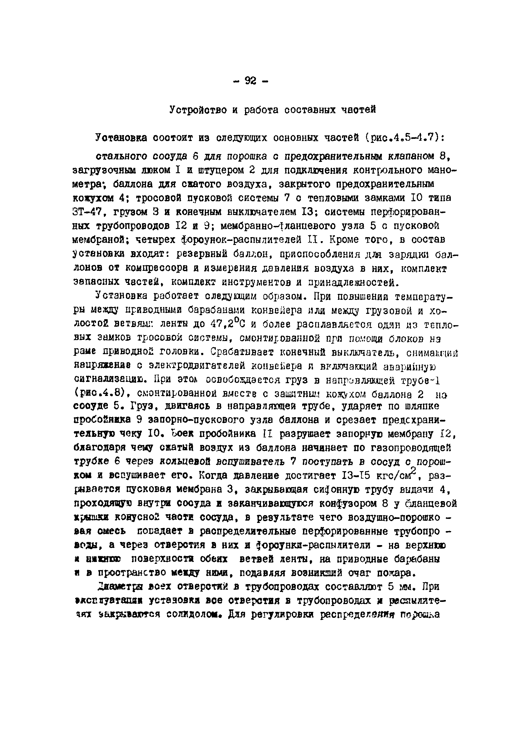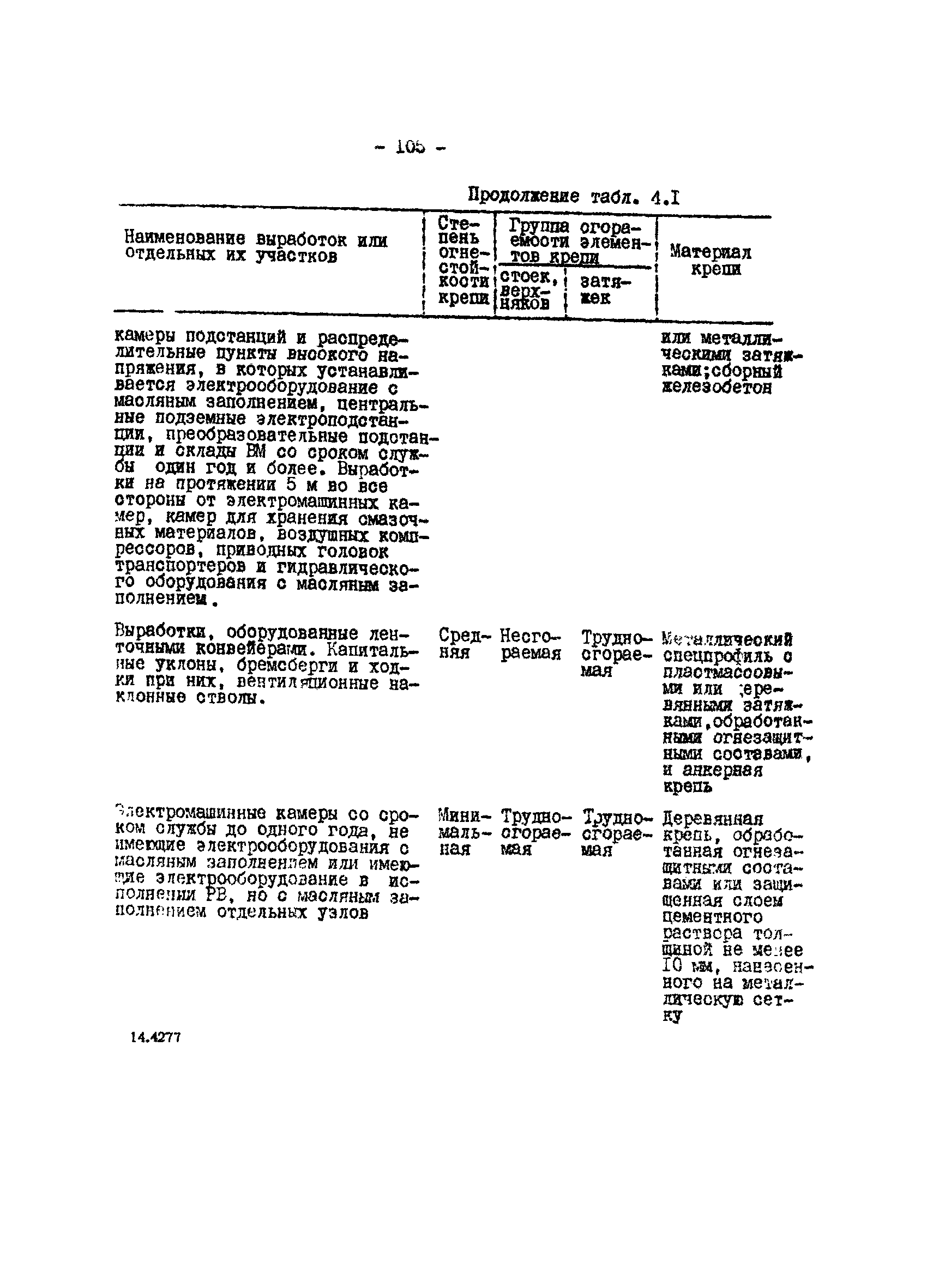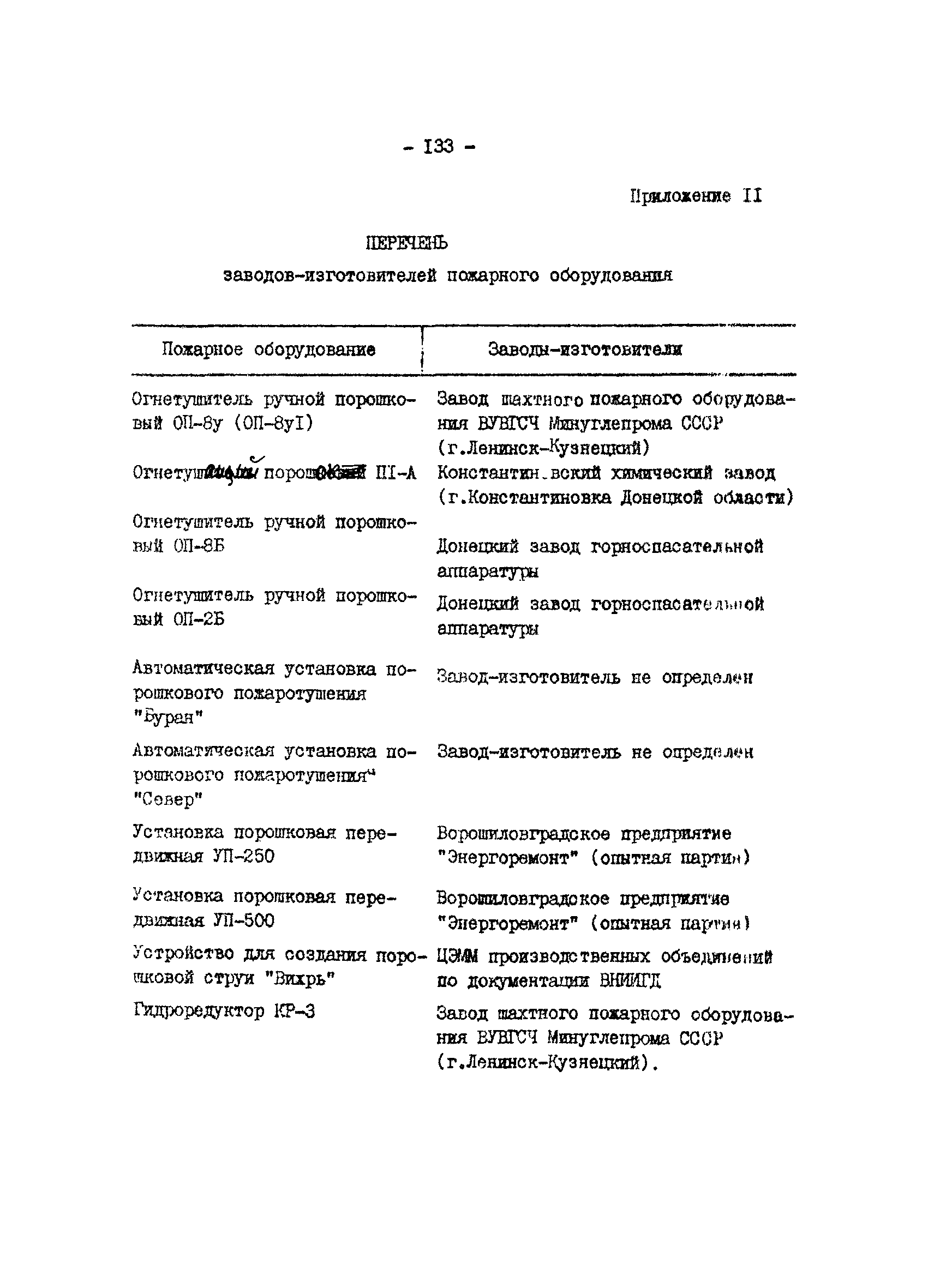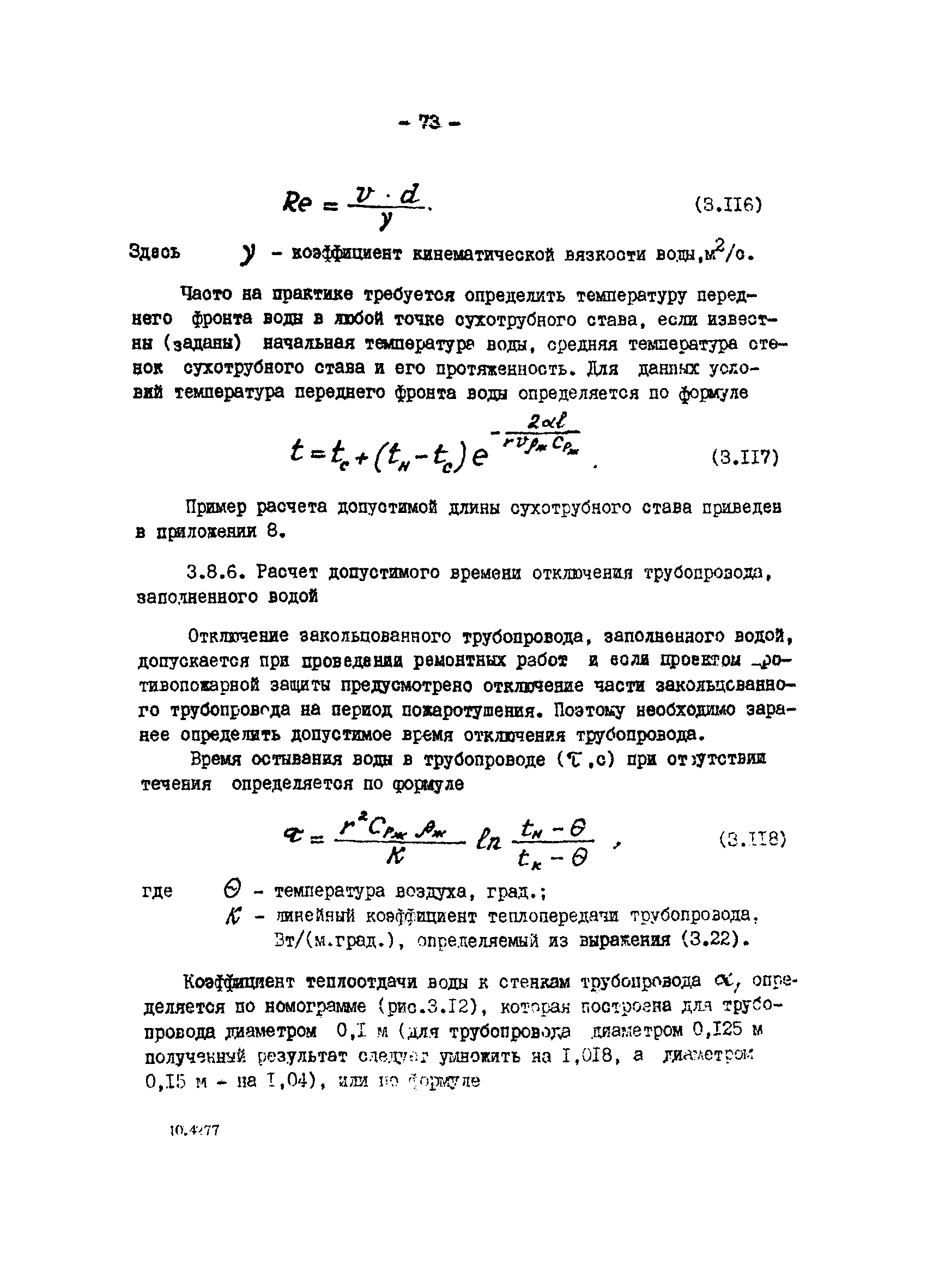 | Оглавление: | 1 Проектирование противопожарной защиты 1.1 Общие положения 1.2 Основные принципы противопожарной защиты шахт 1.3 Содержание проекта противопожарной защиты шахт 1.4 Периодичность и объем проверок состояния противопожарной защиты шахт 2 Противопожарная защита промплощадки шахты и шахтных стволов 2.1 Пожарный водоем и насосная станция 2.2 Пожарный трубопровод на поверхности шахты 3 Подземное пожарное водоснабжение 3.1 Назначение пожарно-оросительного трубопровода 3.2 Требования к прокладке пожарно-оросительного трубопровода 3.3 Схемы прокладки и расчета пожарно-оросительного трубопровода. Общие положения 3.4 Оборудование сети пожарно-оросительного трубопровода 3.4.1 Пожарные краны и задвижка 3.4.2 Повысительные нососные станции, гидроредукторы 3.5 Тепловая изоляция пожарно-оросительного трубопровода 3.6 Электрический обогрев трубопровода 3.7 Методика гидравлического расчета пожарно-оросительного водоснаюжения шахт 3.8 Методика теплотехнических расчетов основных параметров пожарно-оросительного водоснабжения шахт районов Крайнего Севера 3.8.1 Расчет тепловых параметров одиночных шахтных трубопроводов при прямоточном и противоточмом процессах теплообмена 3.8.2 Расчет тепловых параметров шахтных трубопроводов при раздельной их прокладке в горной выработке 3.8.3 Расчет тепловых параметров трубопроводов при совместной их прокладке с общей теплоизоляцией 3.8.4 Расчет тепловых параметров трубопровода при использовании электрокабельного подогрева 3.8.5 Расчет предельно допустимой длины сухотрубных ставов 3.8.6 Расчет допустимого времени отключения трубопровода, заполненного водой 3.8.7 Расчет мощности электрокабельного подогрева сухотрубных ставов 3.8.8 Определение оптимальной толщины теплоизоляции циркуляционного трубопровода 4 Противопожарная защита горных выработок и камер 4.1 Общие положения 4.2 Первичные средства пожаротушения и нормативы их размещения 4.2.1 Огнетушитель ручной порошковый ОП-8у 4.2.2 Огнетушитель порошковый ОП-8Б 4.2.3 Огнетушитель порошковый ОП-2Б 4.2.4 Нормативы размещения первичных средств пожаротушения в горных выработках и камерах 4.3 Автоматические установки порошкового пожаротушения 4.3.1 Автоматическая установка порошкового пожаротушения "Буран" 4.3.2 Установка порошкового пожаротушения "Север" 4.4 Пожарные двери 4.5 Требования к огнестойкости крепи горных выработок 4.6 Склады пожарного оборудования 4.6.1 Установки порошковые УП 4.6.2 Устройство для создания порошковой струи "Вихрь" Приложение 1. Титульный лист проекта противопожарной защиты Приложение 2. Пример гидравлического расчета пожарно-оросительного водоснабжения шахт Приложение 3. Пример расчета тепловых параметров одиночных шахтных трубопроводов Приложение 4. Пример расчета тепловых параметров трубопроводов при раздельной прокладке в горной выработке Приложение 5. Пример расчета тепловых параметров труобпроводов при совместной их прокладке в обшей теплоизоляции Приложение 6. Пример расчета тепловых параметров трубопровода при прокладке в нем греющего кабеля Приложение 7. Пример расчета тепловых параметров трубопровода при наложении греющего кабеля на его поверхности (в общей теплоизоляции) Приложение 8. Пример расчета допустимой длины сухотрубных ставов Приложение 9. Пример расчета времени остывания воды в трубопроводе при отсутстви