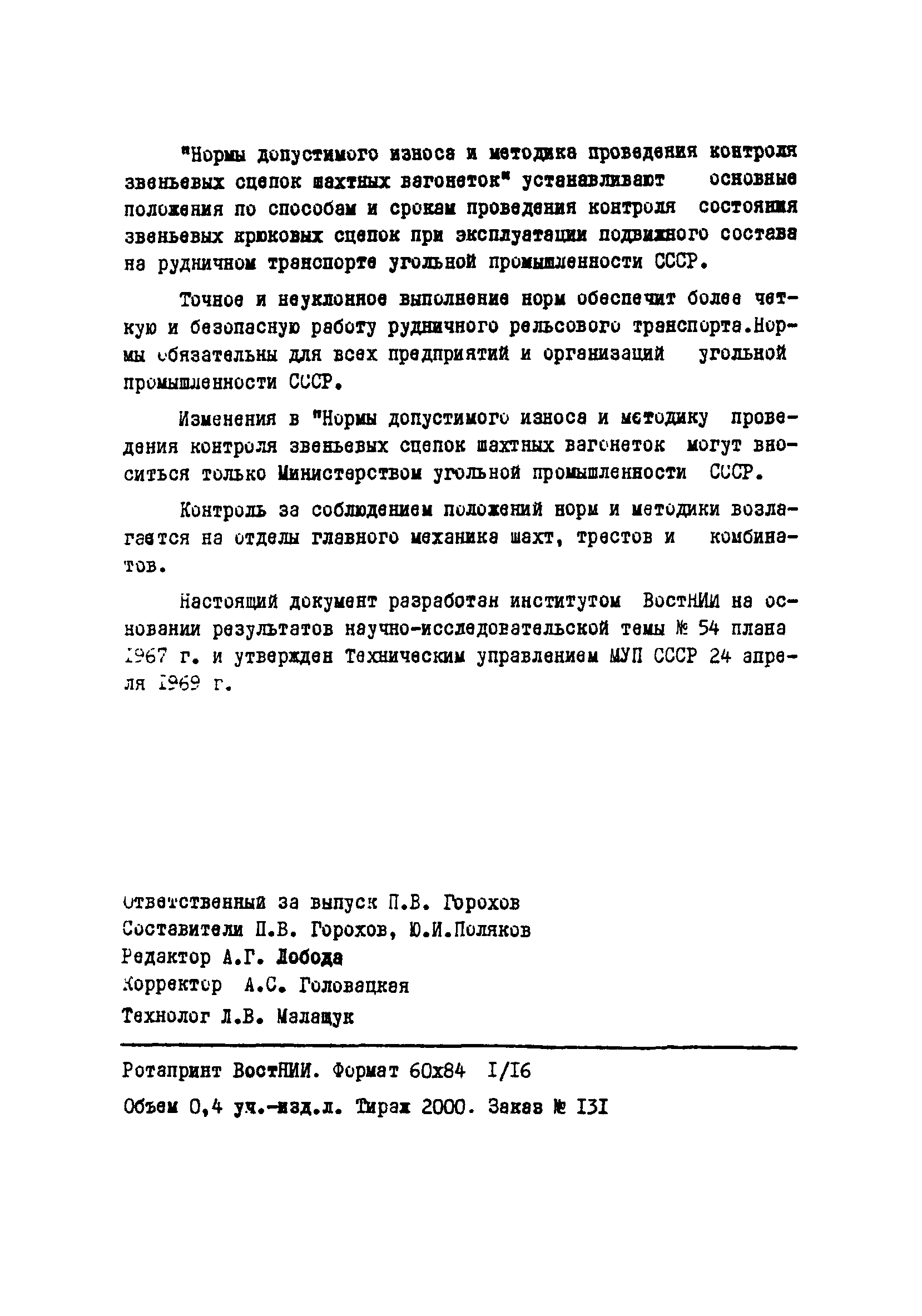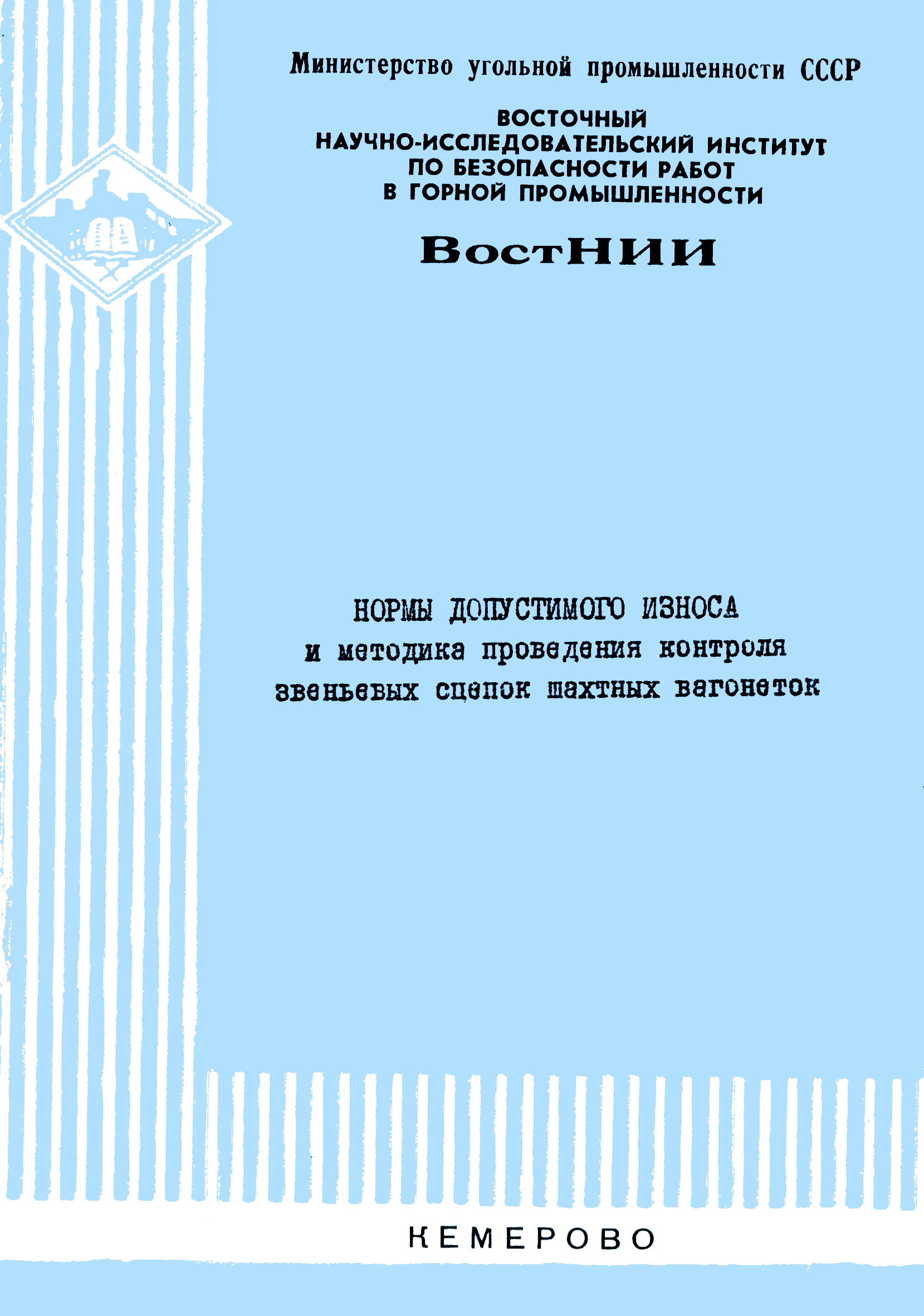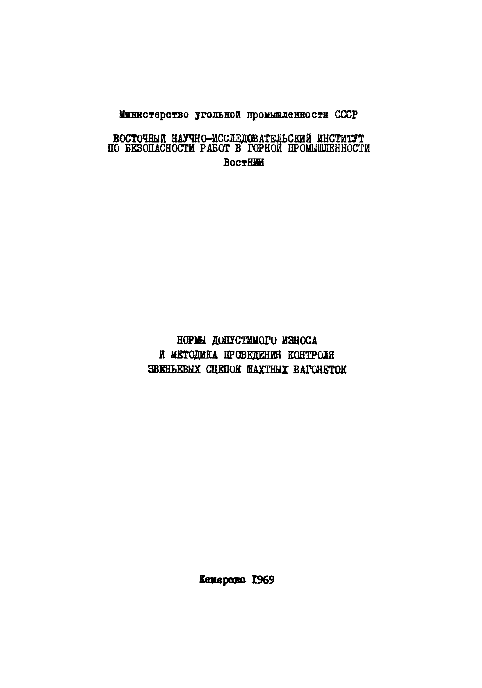 | Название рус.: | Нормы допустимого износа и методика проведения контроля звеньевых сцепок шахтных вагонеток |