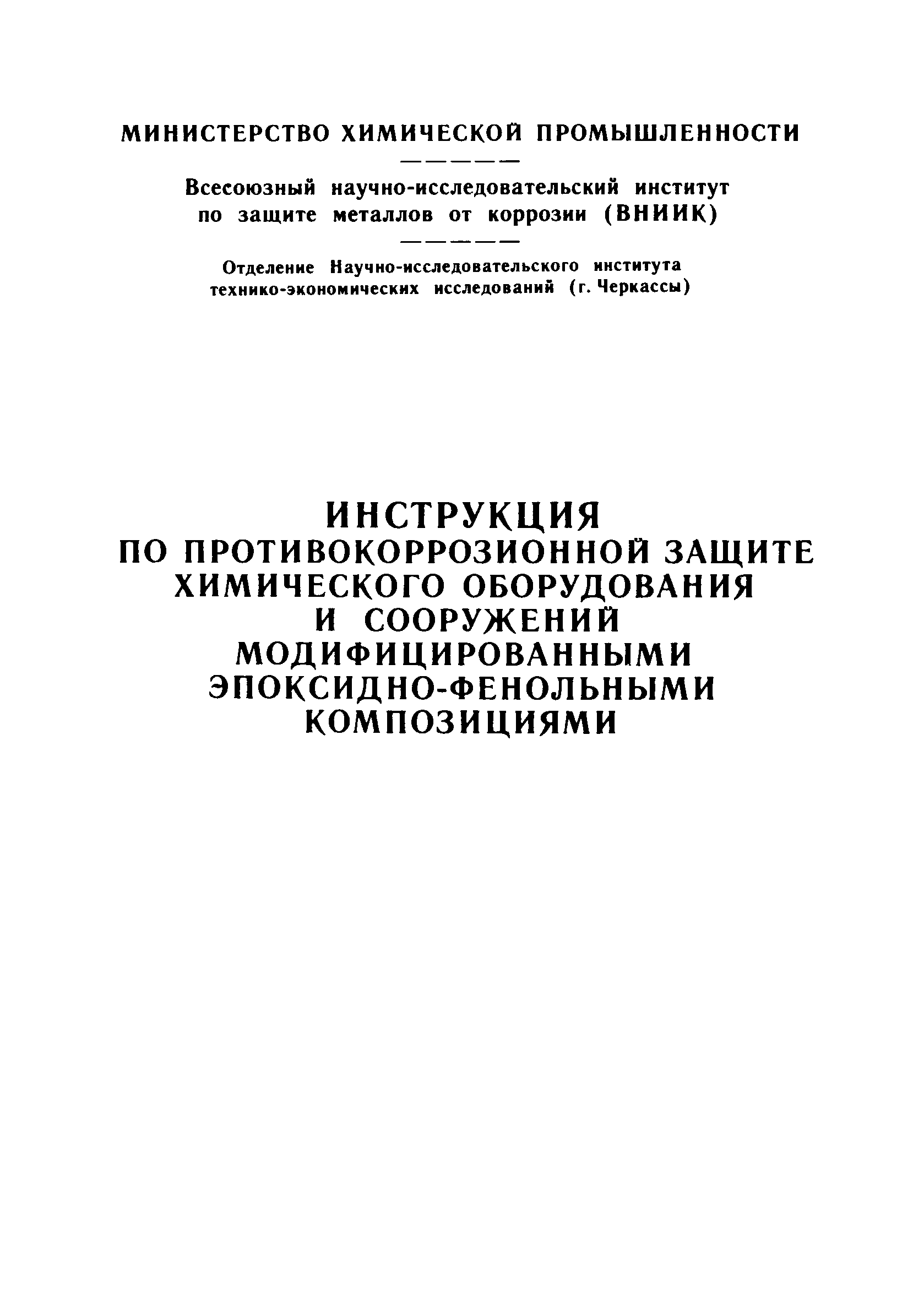 Скачать Инструкция по противокоррозионной защите химического оборудования и сооружений модифицированными эпоксидно-фенольными композициямиДата актуализации: 01.01.2021