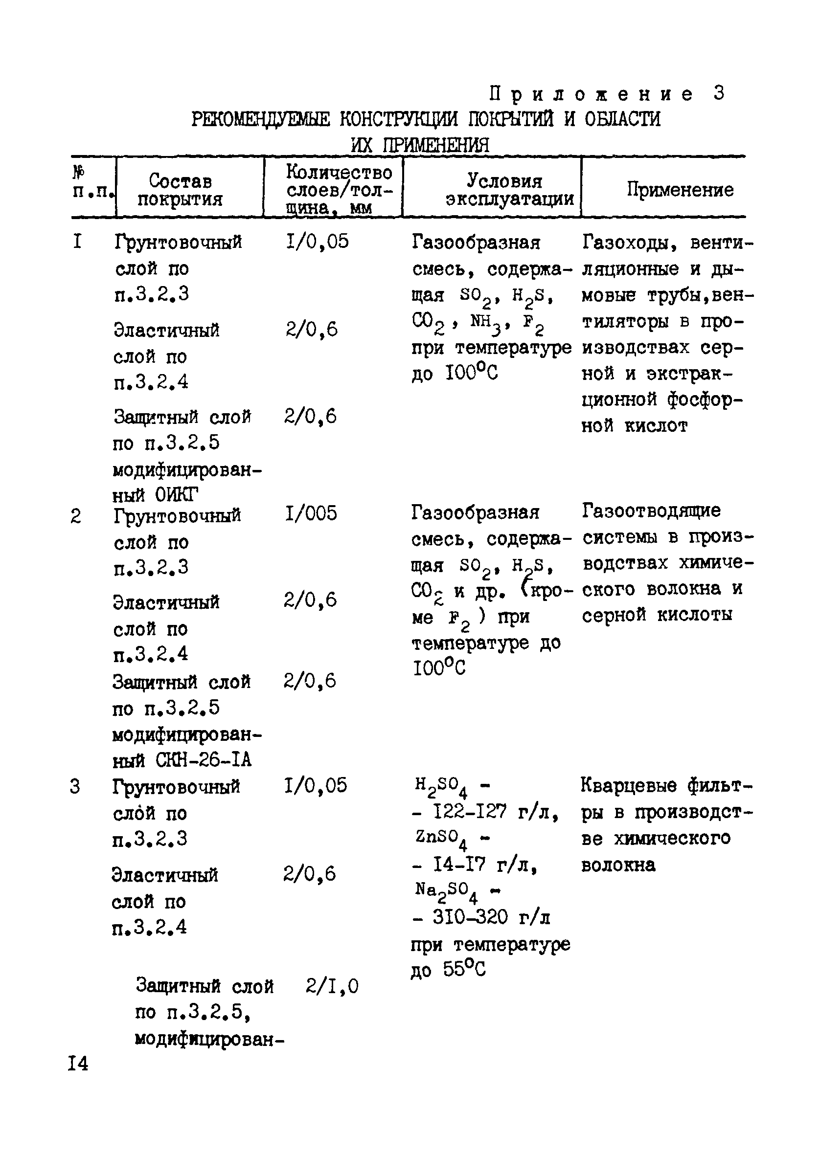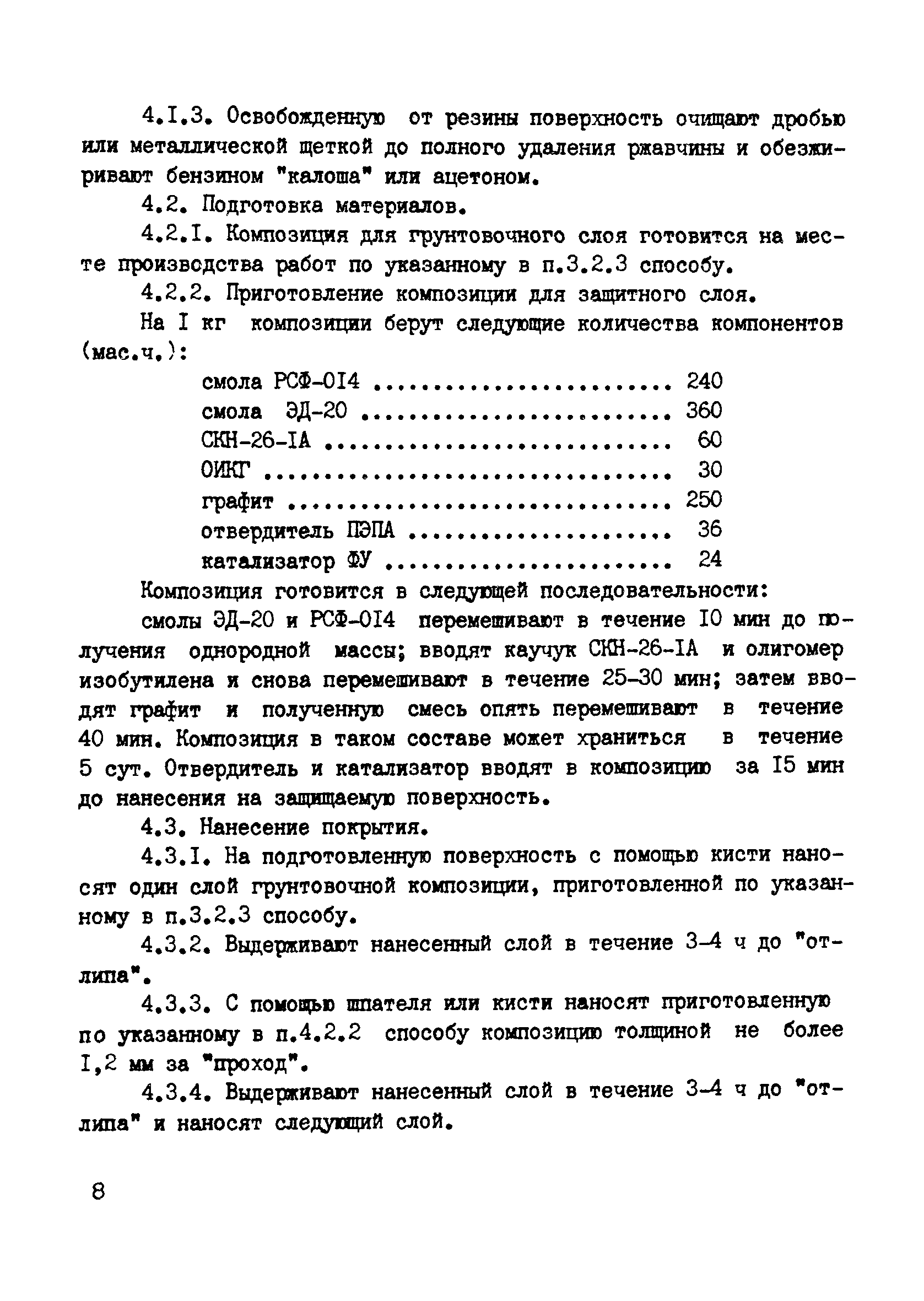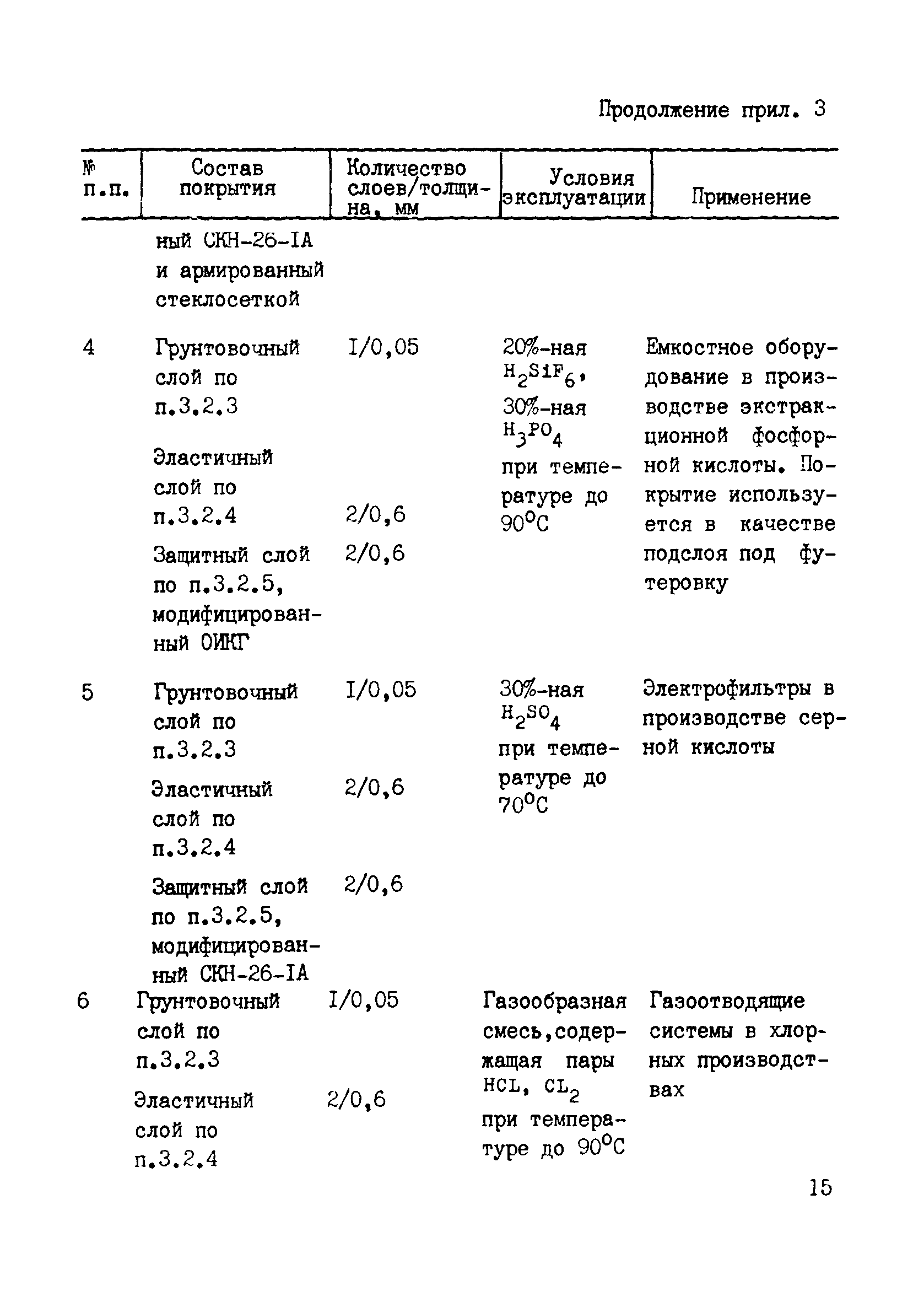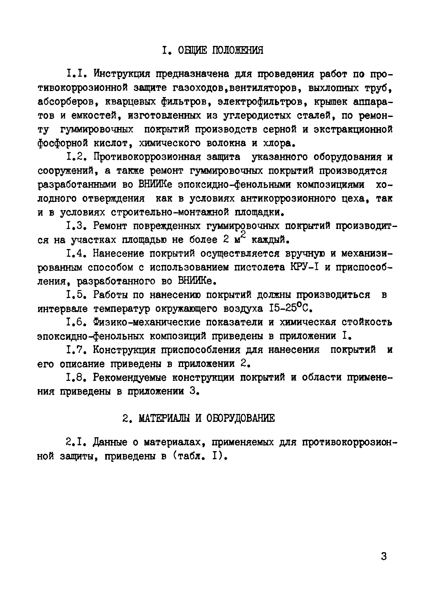Инструкция по противокоррозионной защите химического оборудования и сооружений модифицированными эпоксидно-фенольными композициями| Статус: | справочные материалы, мп, тпр | | Название рус.: | Инструкция по противокоррозионной защите химического оборудования и сооружений модифицированными эпоксидно-фенольными композициями | | Дата добавления в базу: | 01.02.2020 | | Дата актуализации: | 01.01.2021 | | Область применения: | Инструкция предназначена для проведения работ по противокоррозионной защите газоходов, вентиляторов, выхлопных труб, абсорберов, кварцевых фильтров, электрофильтров, крышек аппаратов и емкостей, изготовленных из углеродистых сталей, по ремонту гуммировочных покрытий производств серной и экстракционной фосфорной кислот, химического волокна и хлора. Инструкция предназначена для противокоррозионных служб химических предприятий, специализированных монтажных и ремонтно-строительных организаций, выполняющих работы по защите от коррозии оборудования и сооружений в условиях строительно-монтажной площадки и антикоррозионных цехов. | | Оглавление: | 1 Общие положения 2 Материалы и оборудование 3 Производство работ по противокоррозионной защите оборудования и сооружений 4 Производство работ по ремонту гуммировочных покрытий 5 Расход материалов 6 Контроль качества противокоррозионных работ 7 Техника безопасности Приложение 1. Основные свойства модифицированных эпоксидно-фенольных композиций Приложение 2. Описание приспособления для нанесения композиции Приложение 3. Рекомендуемые конструкции покрытий и области их применения Приложение 4. Технические характеристики передвижных растворосмесителей | | Разработан: | ВНИИК Институт Проектхимзащита