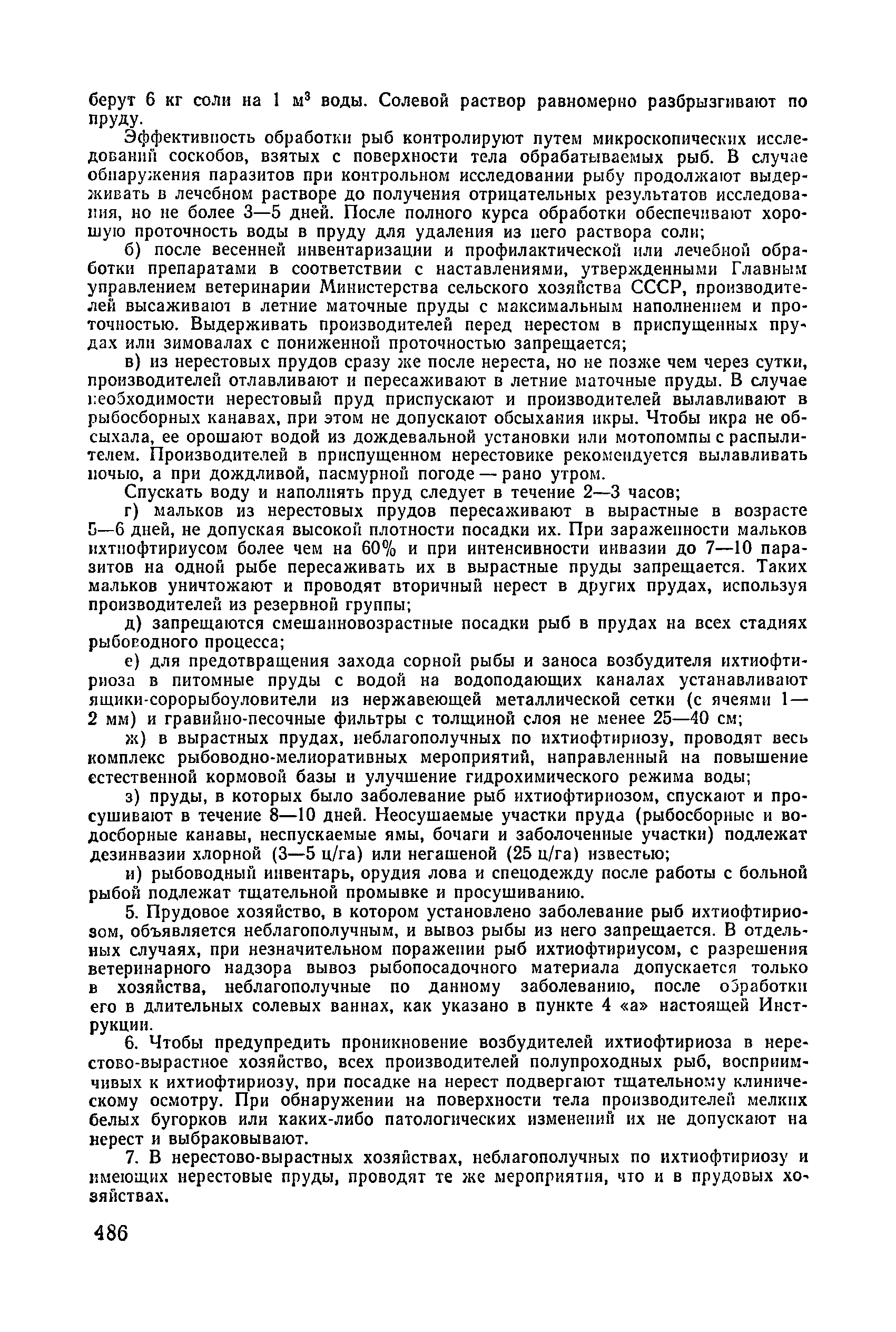 Инструкция о мероприятиях против заболевания рыб ихтиофтириозом в прудовых, нерестово-вырастных хозяйствах и на рыбоводных заводах| Статус: | отменен в рф | | Название рус.: | Инструкция о мероприятиях против заболевания рыб ихтиофтириозом в прудовых, нерестово-вырастных хозяйствах и на рыбоводных заводах | | Дата добавления в базу: | 01.01.2021 | | Дата актуализации: | 01.01.2021 | | Дата введения: | 30.04.2020 | | Оглавление: | Меры борьбы с ихтиофтириозом в прудовых и нерестово-вырастных хозяйствах Меры борьбы с ихтиофтириозом на рыбоводных заводах | | Утверждён: | 01.06.1964 ГУВ МСХ СССР