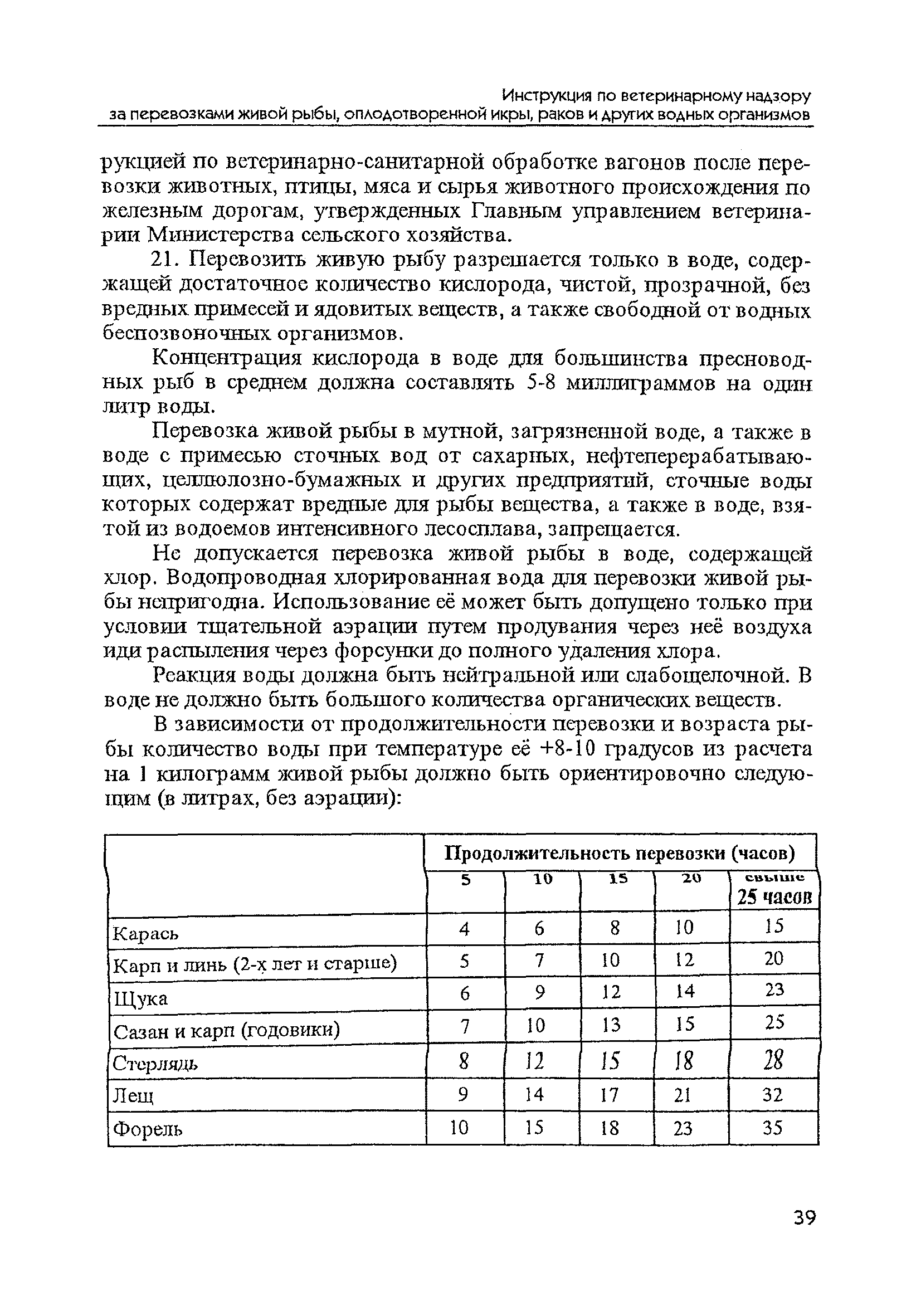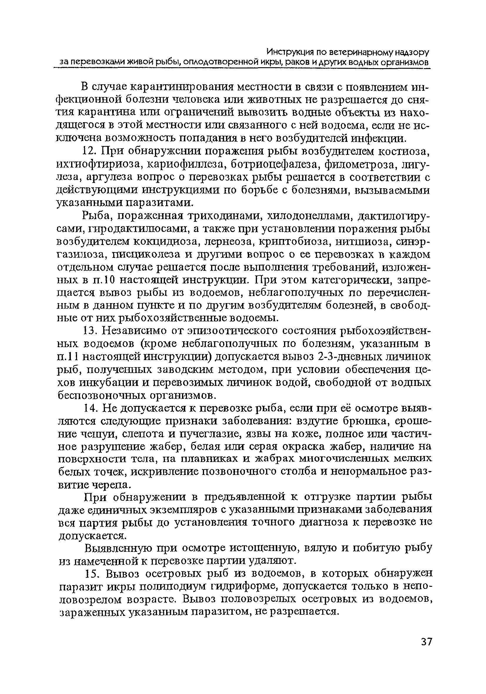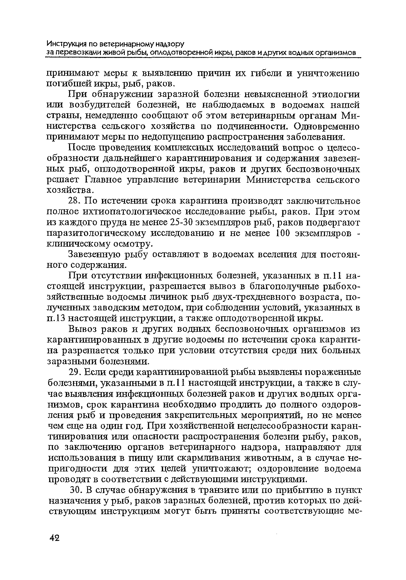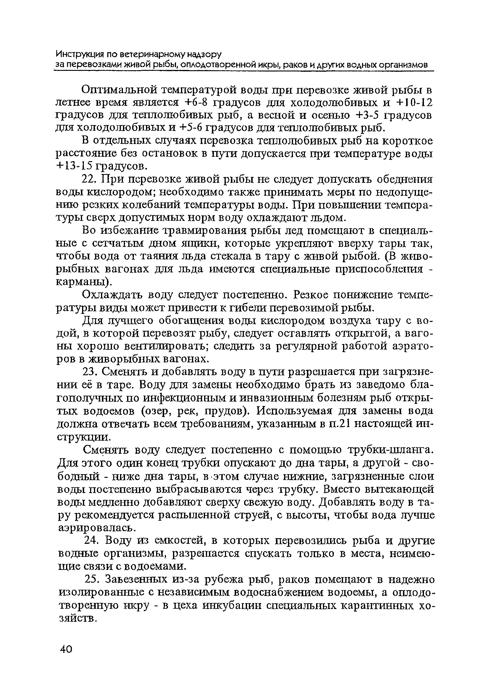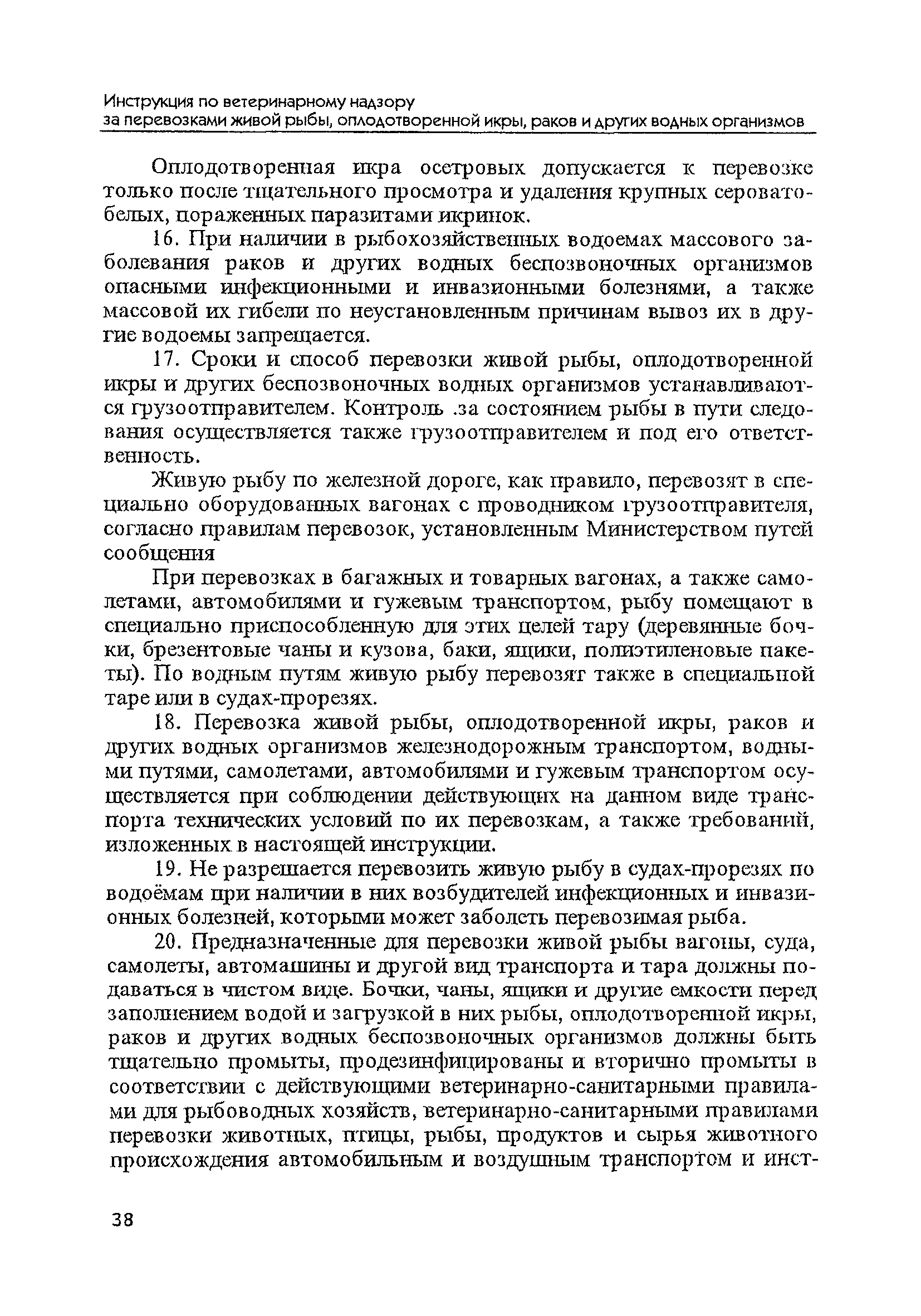 Скачать Инструкция по ветеринарному надзору за перевозками живой рыбы, оплодотворенной икры, раков и других водных организмовДата актуализации: 01.01.2021