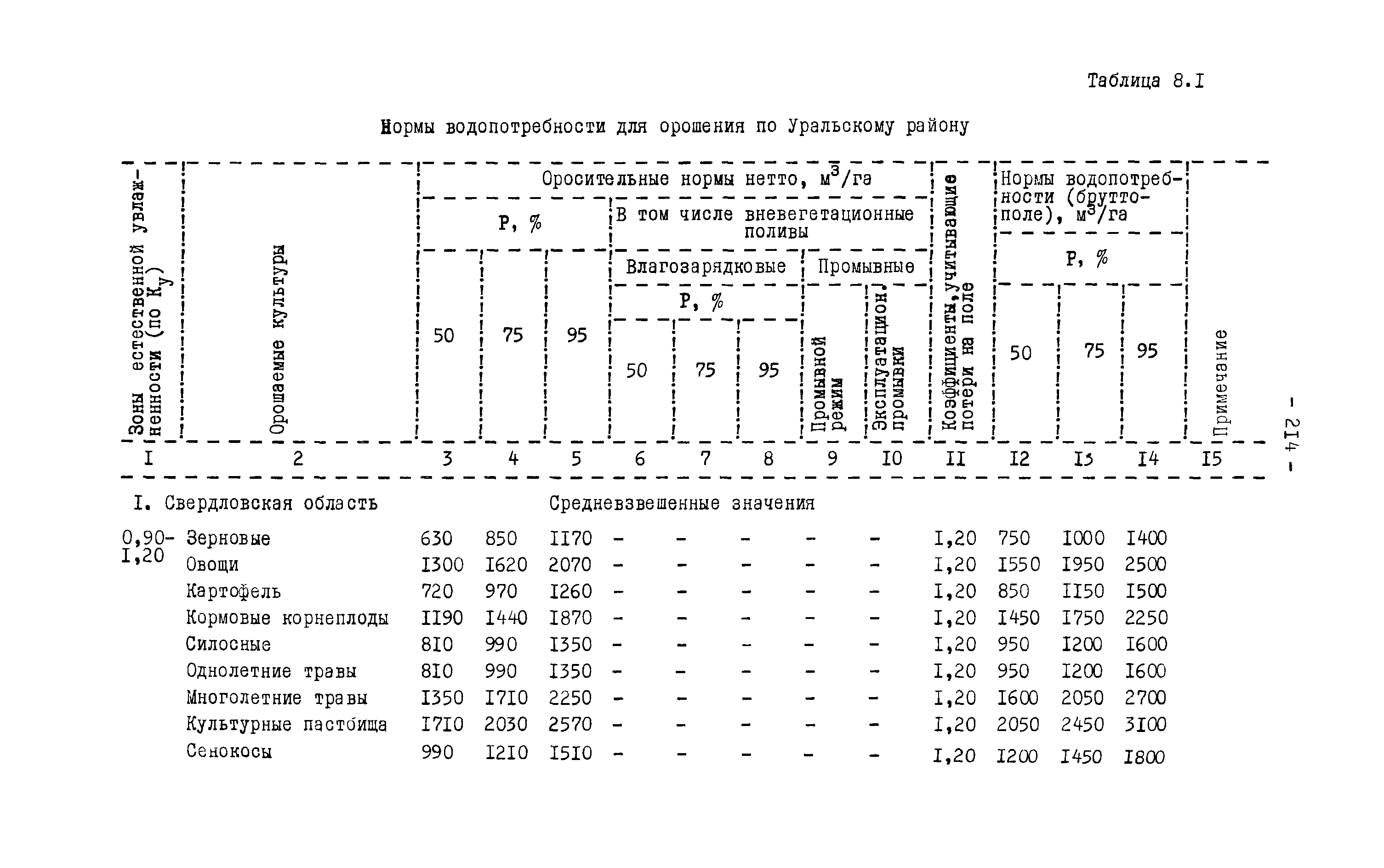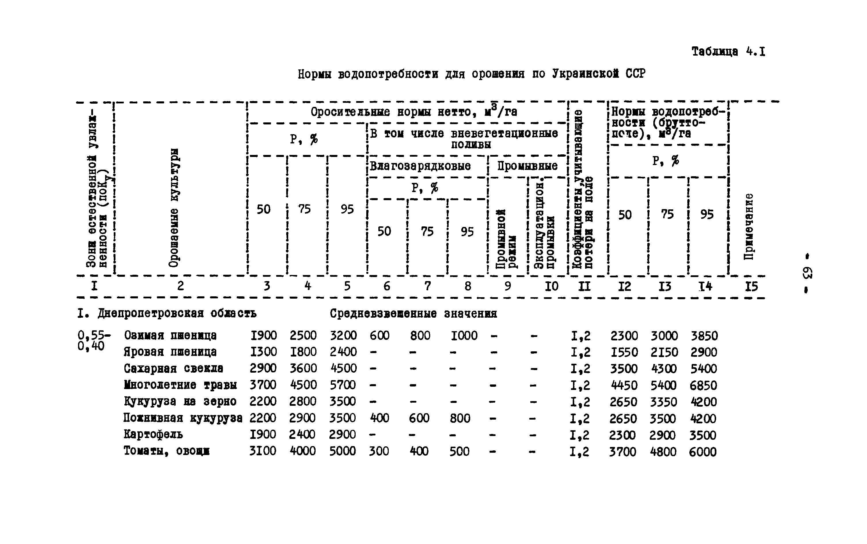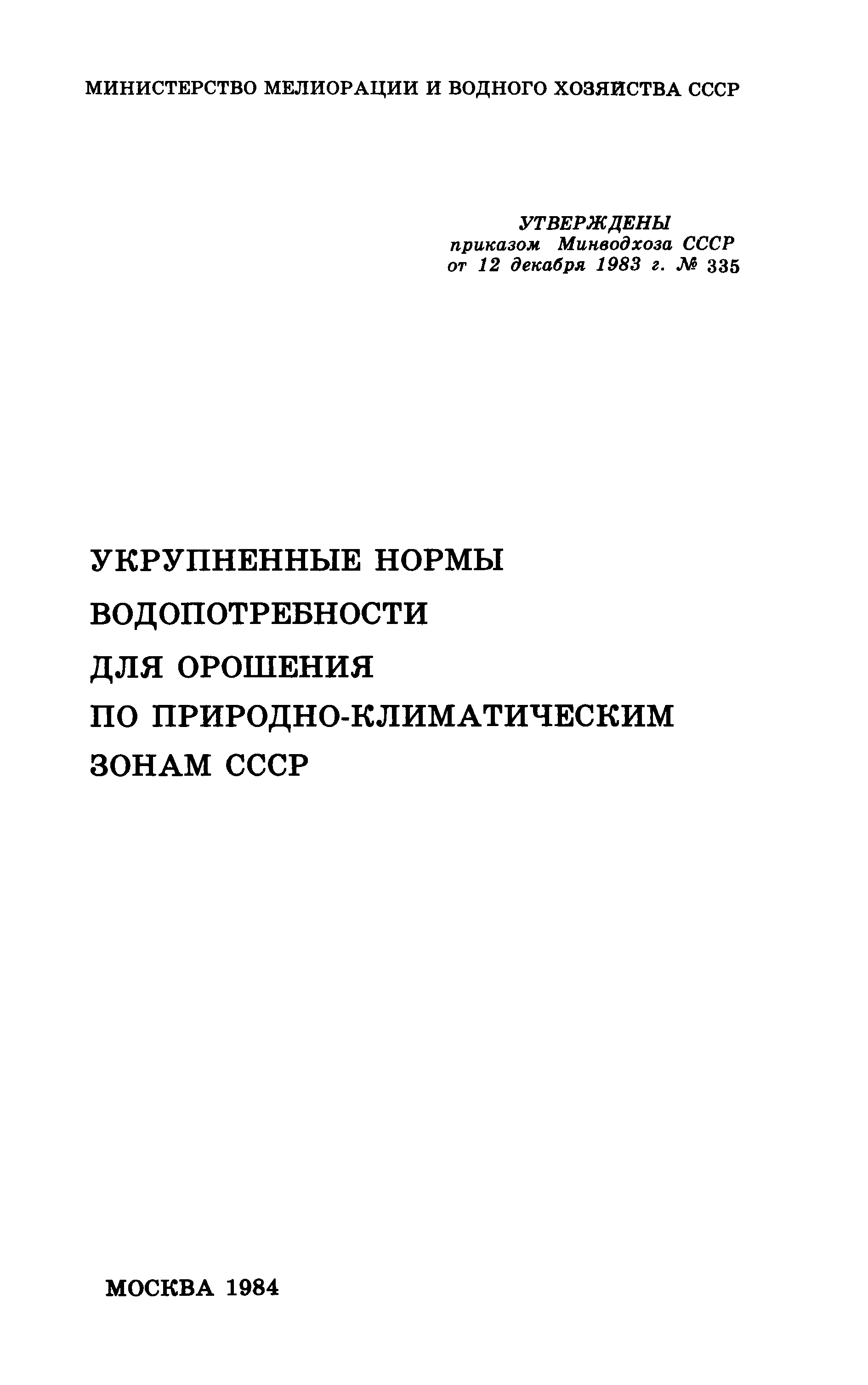 | Название рус.: | Укрупненные нормы водопотребности для орошения по природно-климатическим зонам СССР |