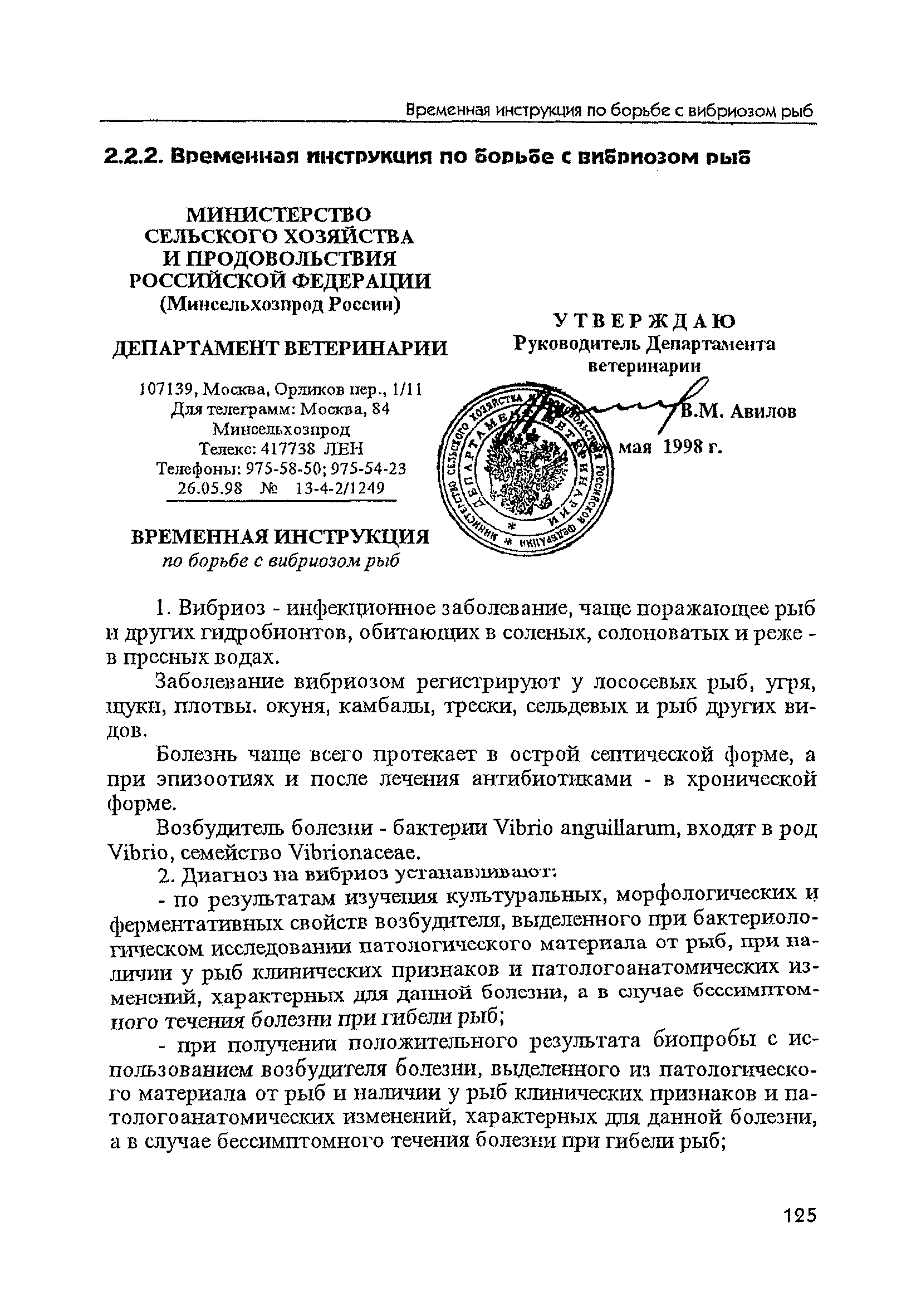 | Название рус.: | Временная инструкция по борьбе с вибриозом рыб |