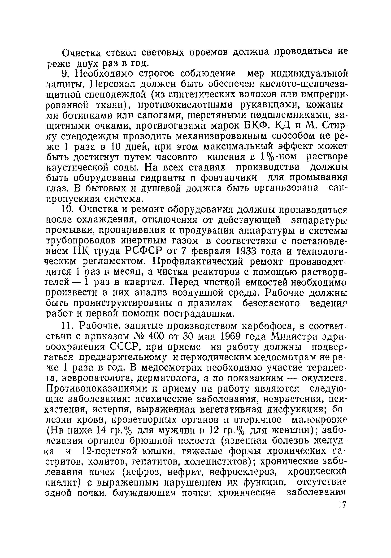 | Область применения: | В методических рекомендациях представлены: гигиеническая характеристика производства карбофоса, влияние условий труда на состояние здоровья рабочих, клинико-диагностические тесты, оздоровительные мероприятия и их эффективность. Методические рекомендации разработаны в помощь цеховым и промышленно-санитарным врачам, осуществляющим надзор на химических предприятиях. Изложенные в них материалы могут быть использованы службами техники безопасности химзаводов и проектными организациями при реконструкции существующих и проектировании новых аналогичных производств |