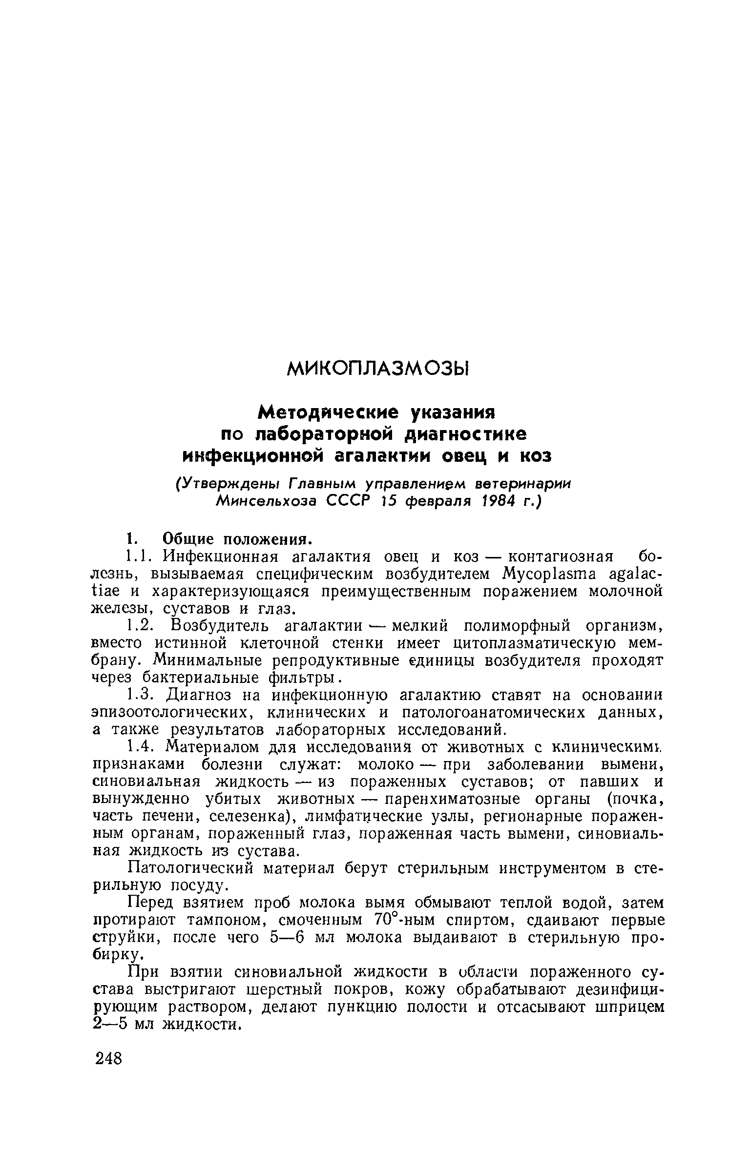 Скачать Методические указания по лабораторной диагностике инфекционной агалактии овец и козДата актуализации: 01.01.2021