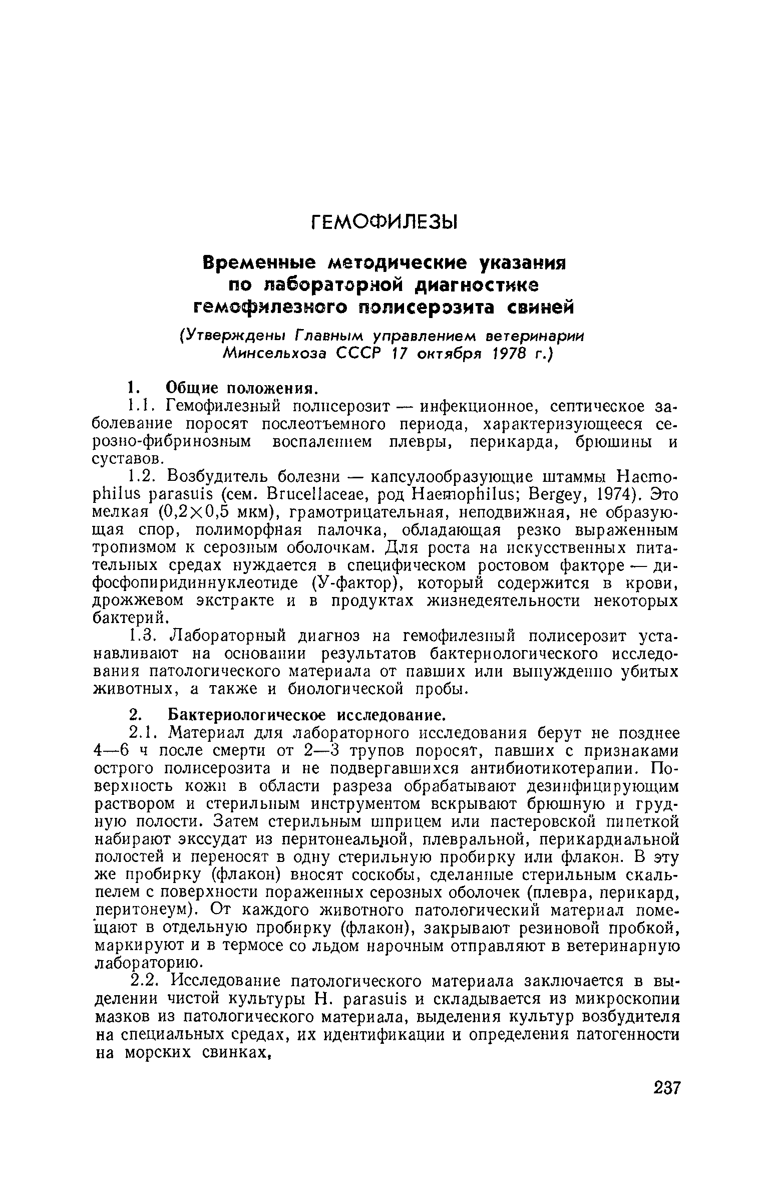 Временные методические указания по лабораторной диагностике гемофилезного полисерозита свиней| Статус: | справочные материалы, мп, тпр | | Название рус.: | Временные методические указания по лабораторной диагностике гемофилезного полисерозита свиней | | Дата добавления в базу: | 01.02.2020 | | Дата актуализации: | 01.01.2021 | | Оглавление: | Предисловие 1. Общие положения 2. Бактериологическое исследование Приложение Предметный указатель | | Утверждён: | 17.10.1978 Главное управление ветеринарии Минсельхоза СССР