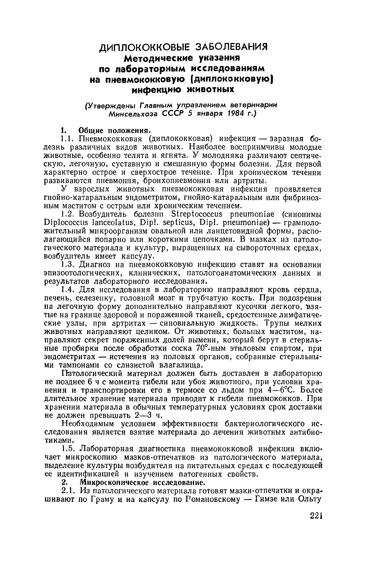 Скачать Методические указания по лабораторным исследованиям на пневмококковую (диплококковую) инфекцию животныхДата актуализации: 01.01.2021