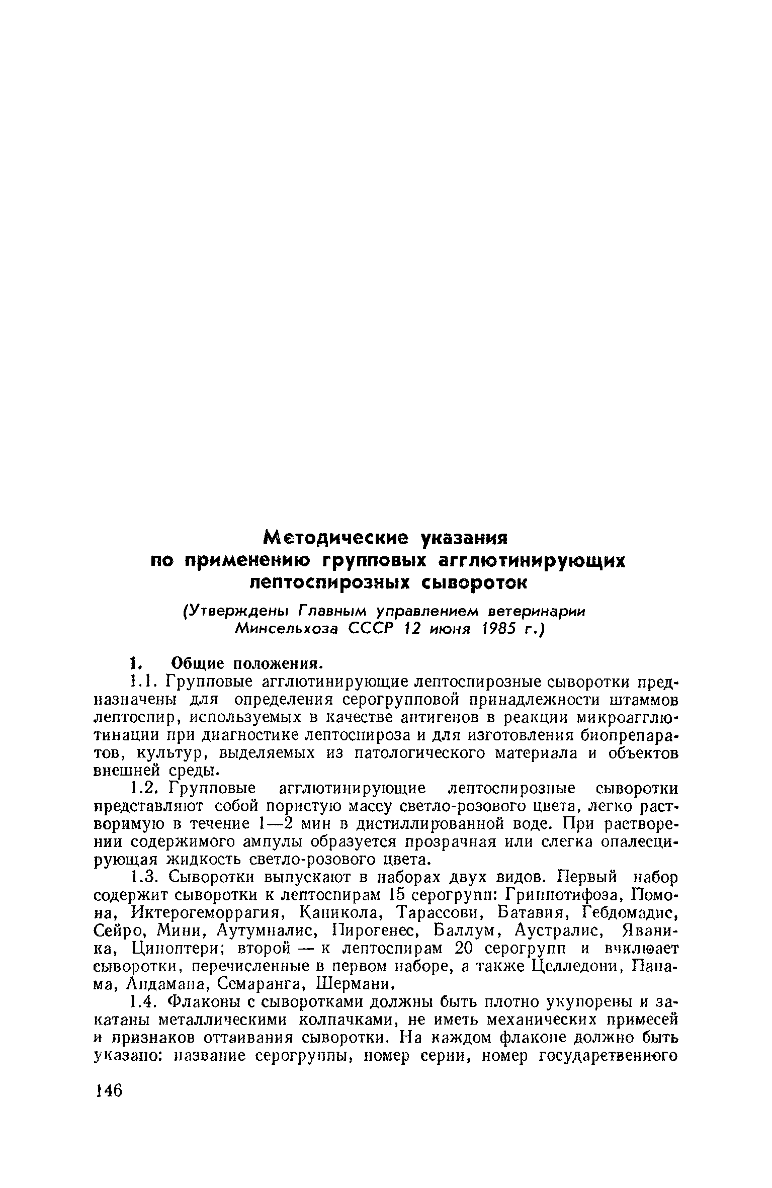 Методические указания по применению групповых агглютинирующих лептоспирозных сывороток| Статус: | справочные материалы, мп, тпр | | Название рус.: | Методические указания по применению групповых агглютинирующих лептоспирозных сывороток | | Дата добавления в базу: | 01.02.2020 | | Дата актуализации: | 01.01.2021 | | Оглавление: | Предисловие 1. Общие положения 2. Порядок применения сывороток 3. Учет результатов Предметный указатель | | Утверждён: | 12.06.1985 Главное управление ветеринарии Минсельхоза СССР