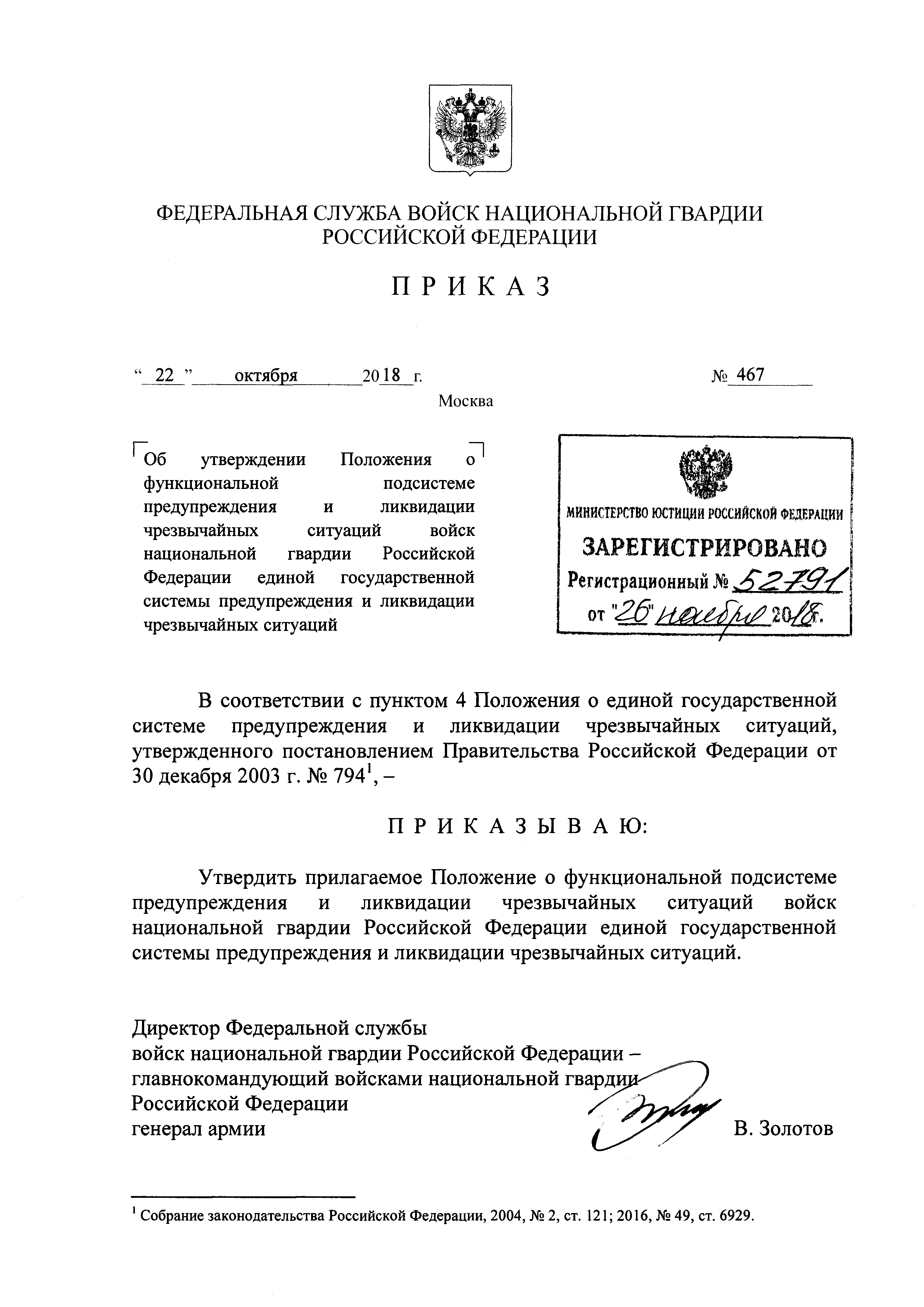 | Утверждён: | 22.10.2018 Федеральная служба войск национальной гвардии Российской Федерации (467) |