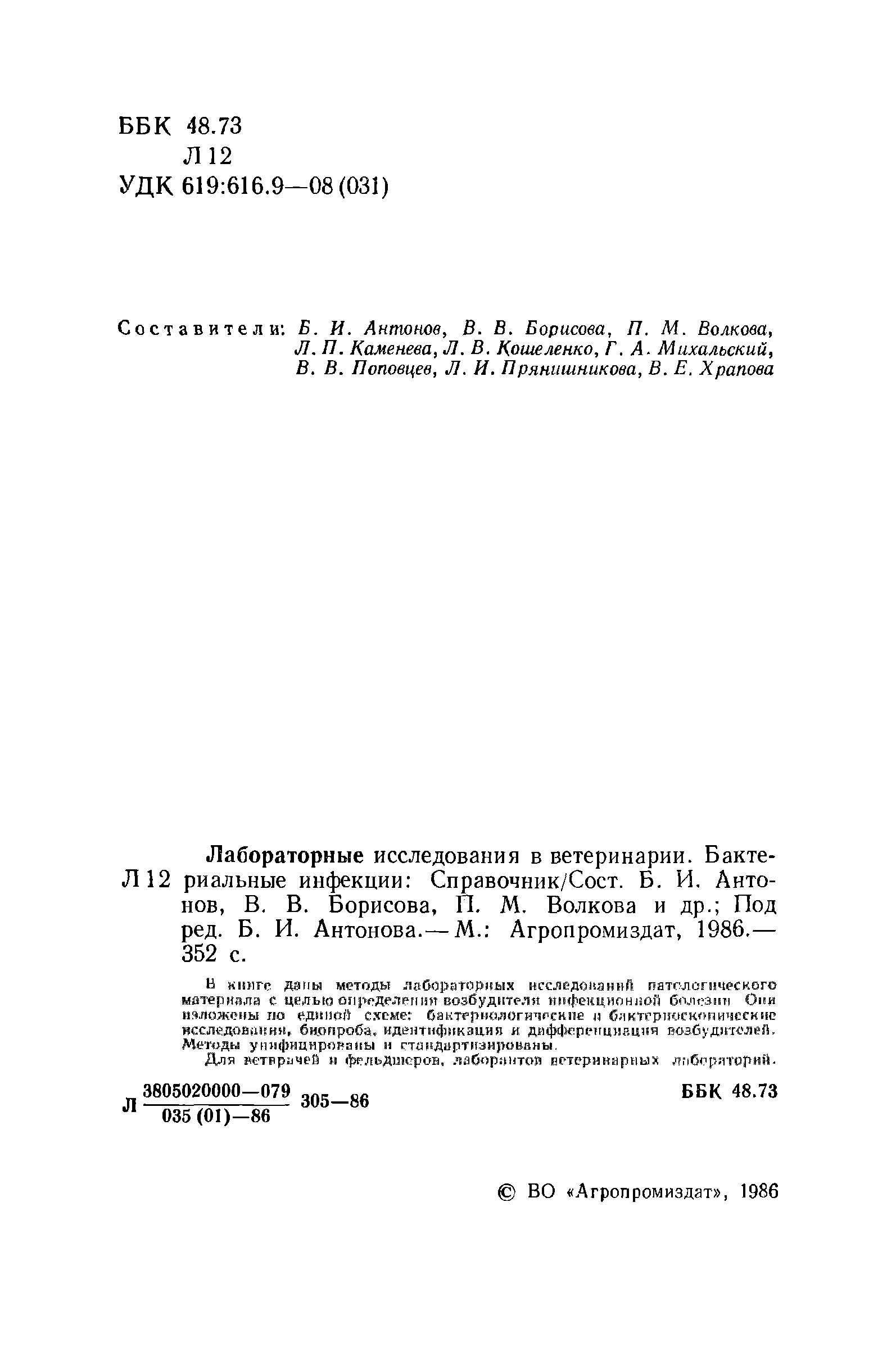 | Утверждён: | 10.10.1982 Главное управление ветеринарии Минсельхоза СССР